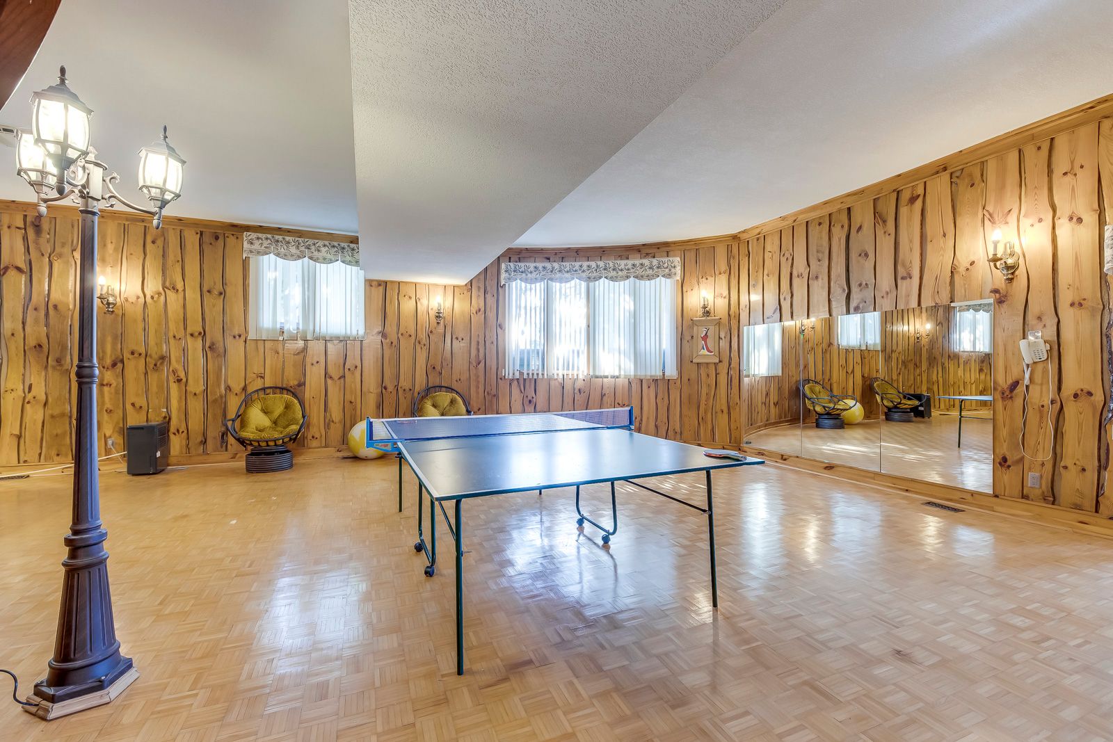 • Finished lower basement with fitness studio, lounge, sauna, and wet bar.
