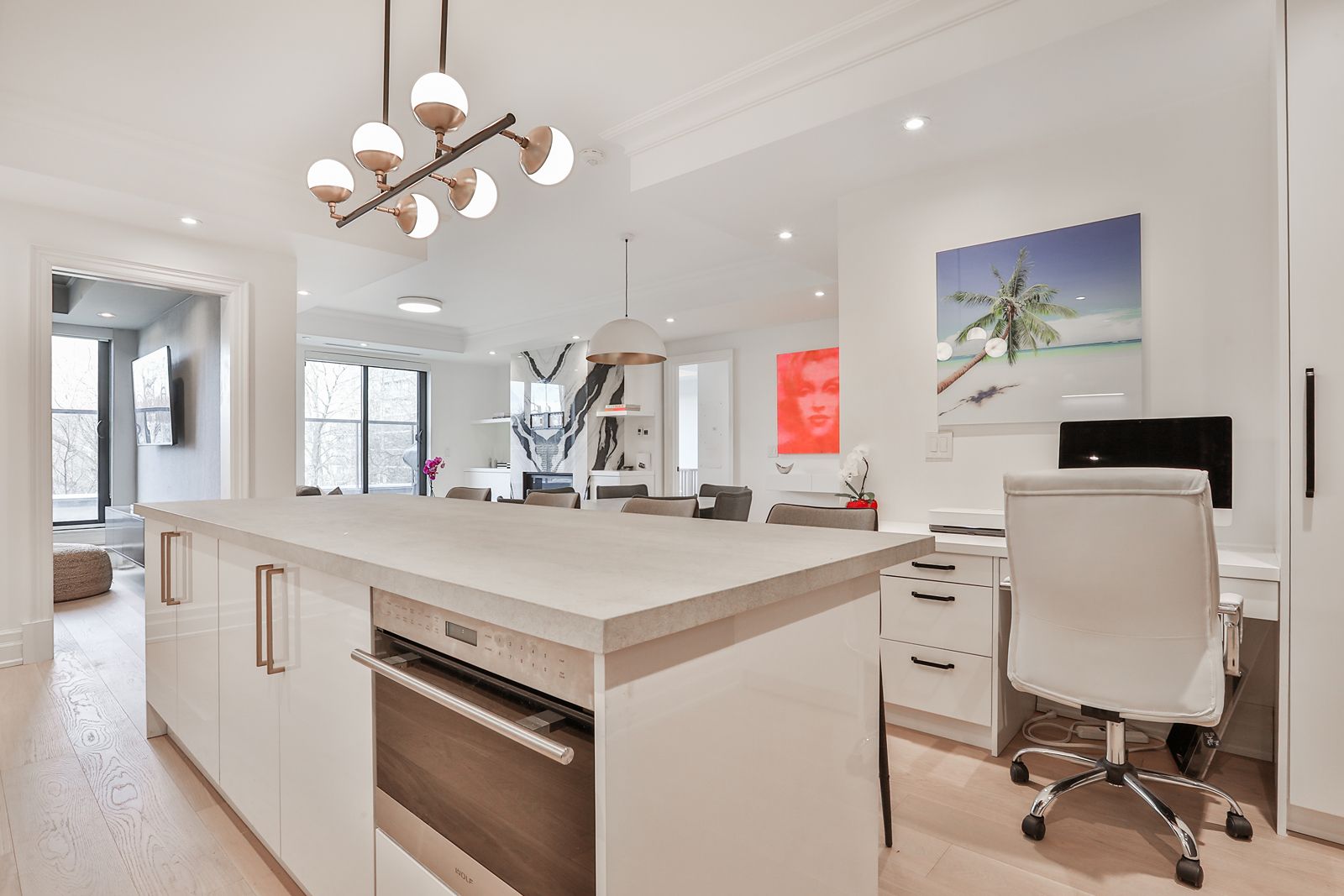 Welcome to forest hill's prestigious boutique residence. This elegant 2+1 bedroom suite offers beautifully designed open-concept living with expansive principal rooms and abundant natural light. The chef's kitchen features top-of-the-line wolf appliances and an impressive 10-foot porcelain centre island, perfect for both everyday living and entertaining. New oak hardwood floors and custom built-in cabinets throughout, complemented by a large laundry room, spacious pantry and linen closet. The living and dining areas open to a balcony with gas line for bbq, with a walk-out from the den. The primary suite offers a walk-in closet and a spa-inspired ensuite with double vanity, soaker tub, and glass shower. The second bedroom features its own 3-piece ensuite, walk in closet. Two parking spaces and a locker included . Building designed by richard wengle, interiors by brian gluckstein. Steps to shops, cafes, transit & top private schools. Building amenities include, a 24-hour concierge, valet and porter service, guest parking, gym, lounge with catering kitchen, and party room. A rare opportunity in one of toronto's most prestigious neighbourhoods. A must see!