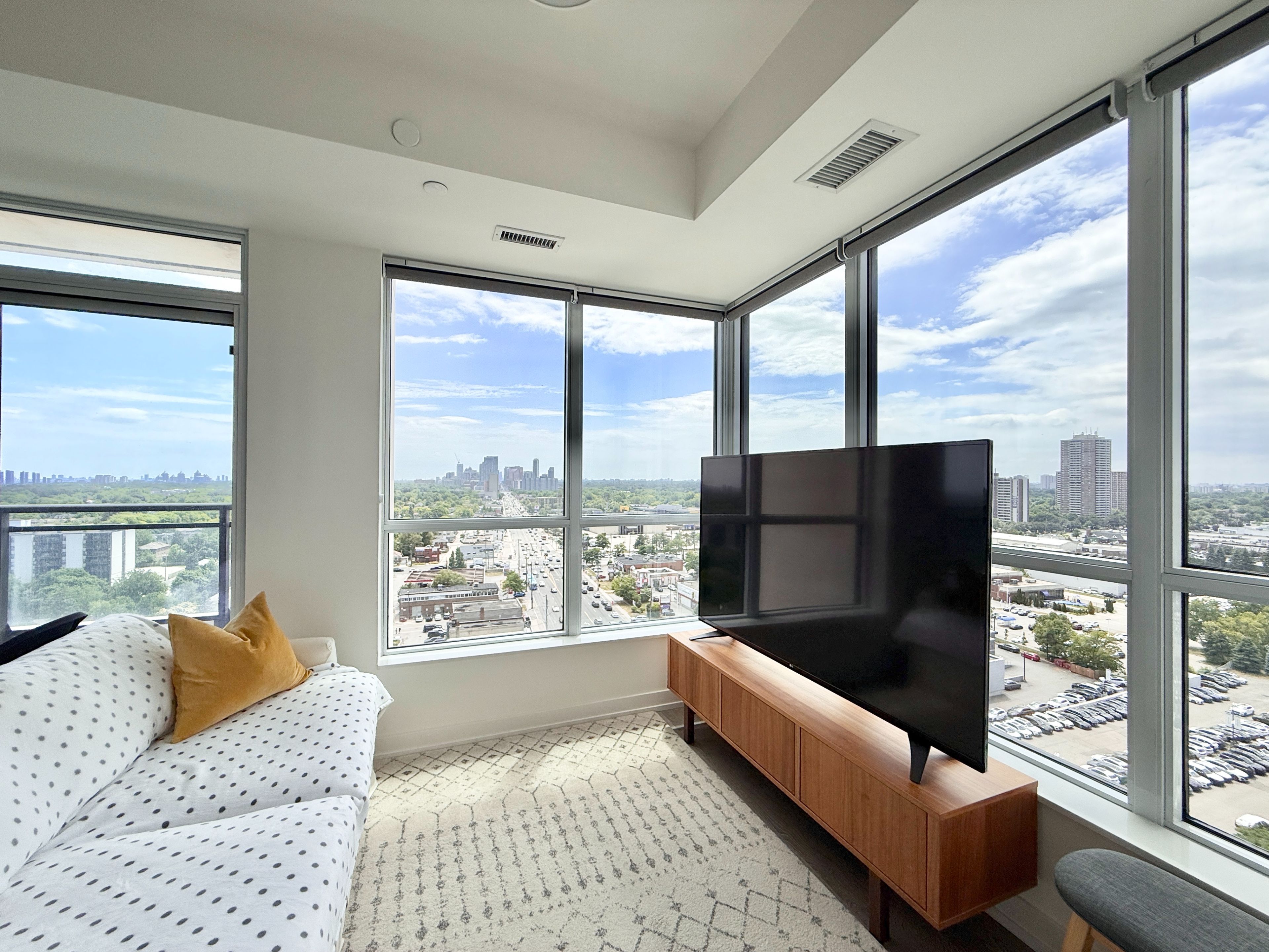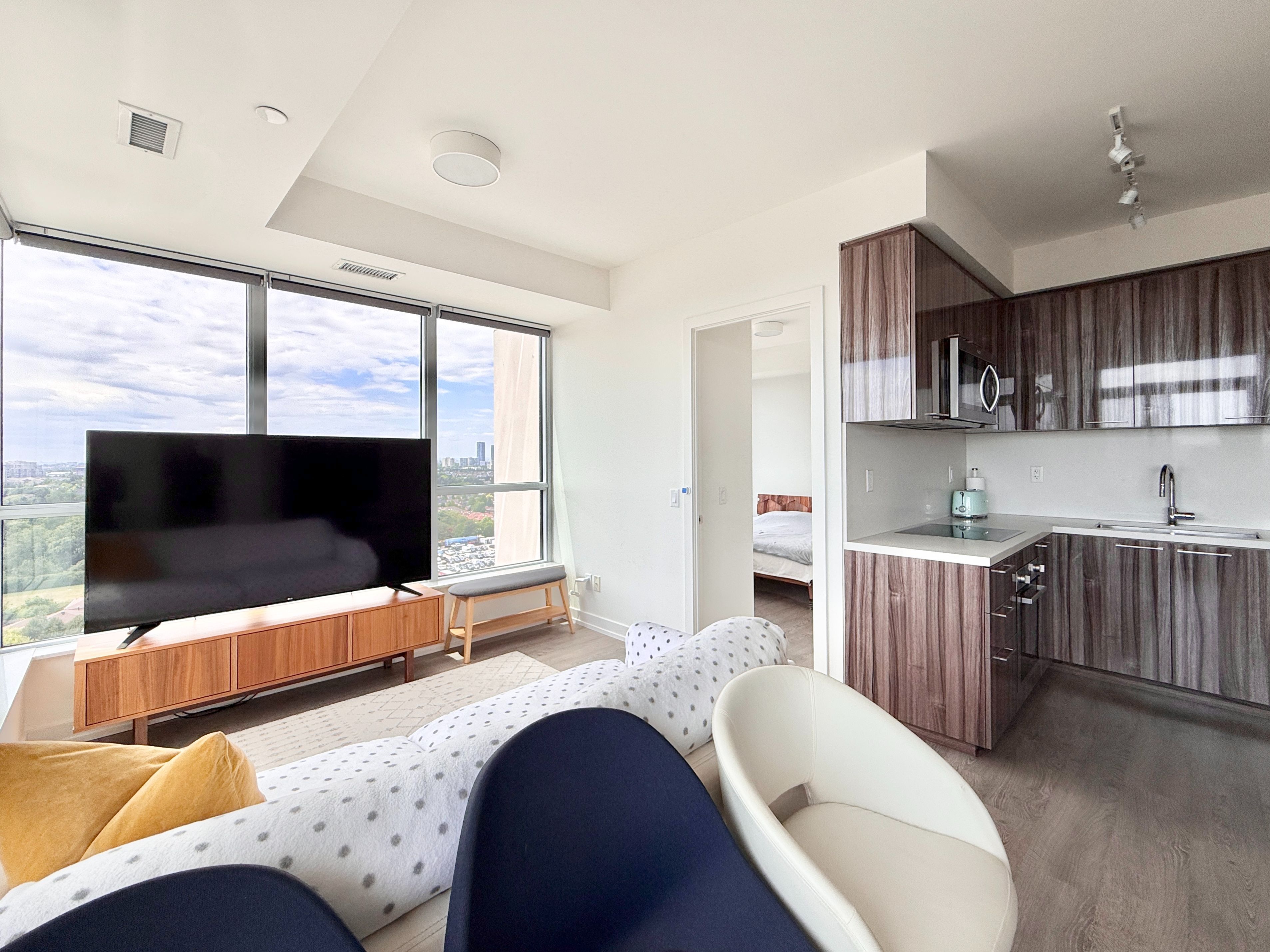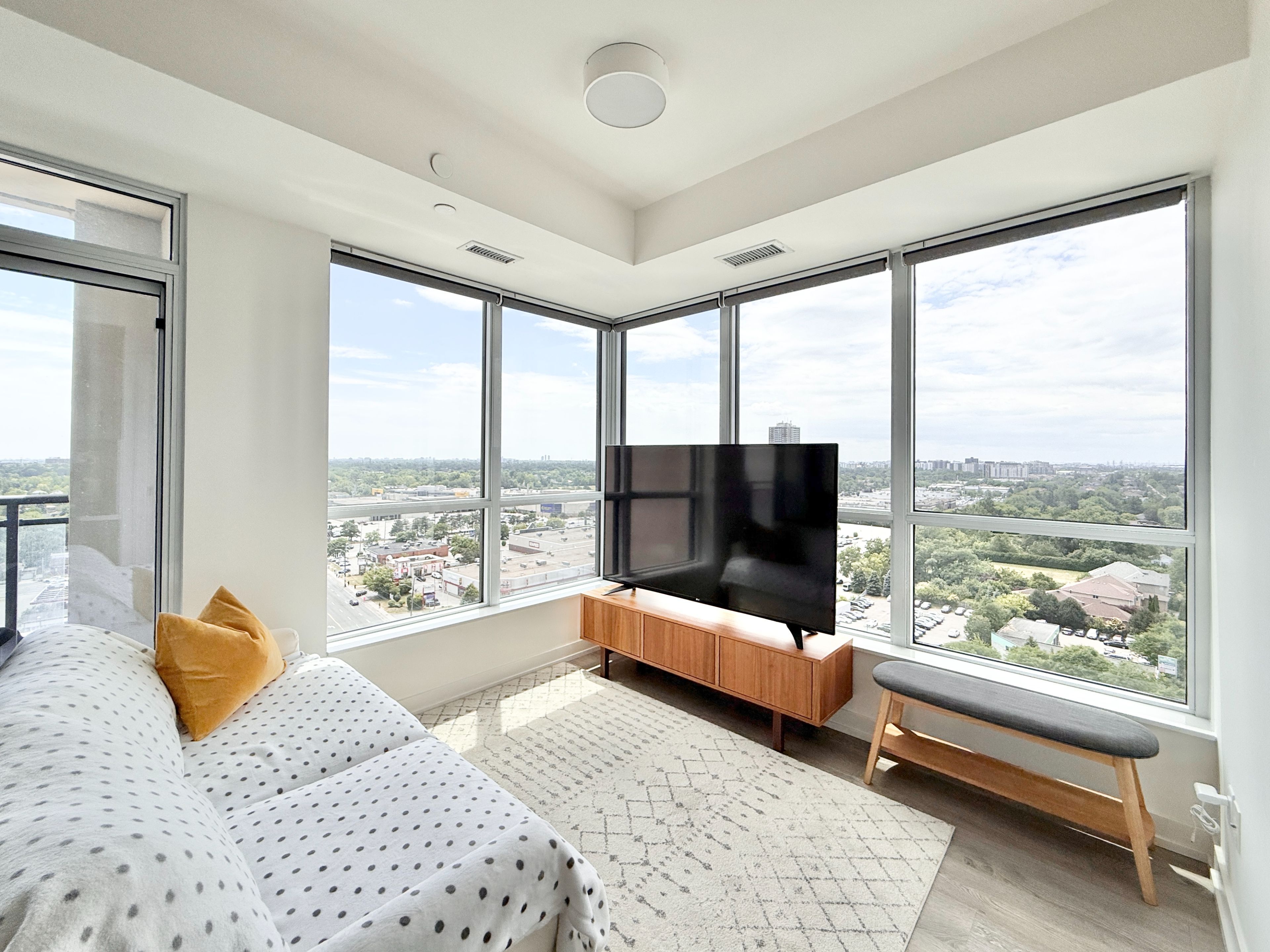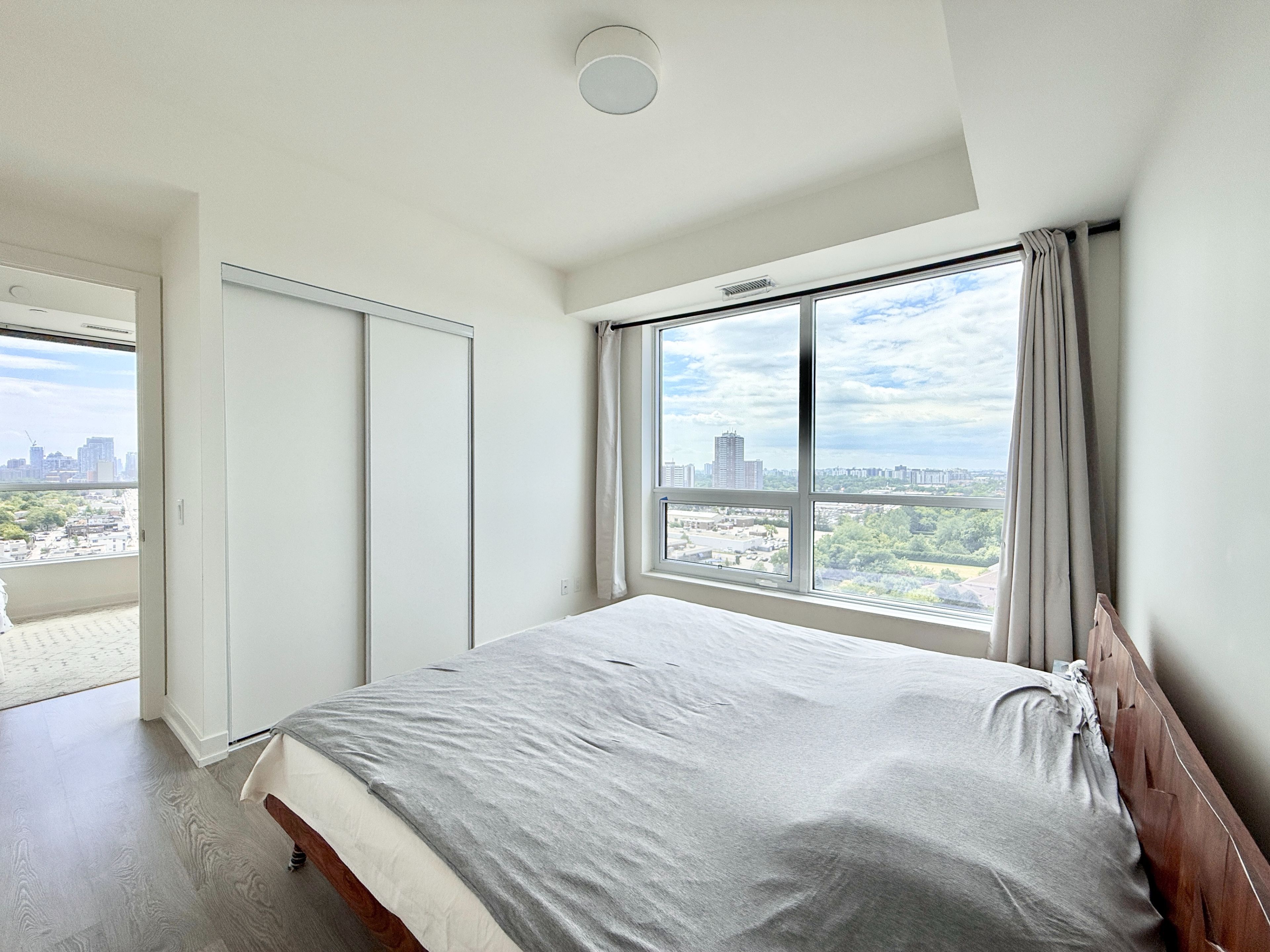 For lease at the vanguard! Experience luxury and comfort in this spacious condo offering over 1,000 sq. Ft. Of modern living space. This 2-bedroom, 2-bathroom suite includes a large denideal for a home office or third bedroom. Enjoy breathtaking, unobstructed south and west-facing views from both bedrooms, with floor-to-ceiling windows that fill the home with natural light. The primary bedroom features a private ensuite with double side-by-side sinks for added convenience. The upgraded kitchen offers an oversized fridge and an abundance of storage space for all your culinary needs. Step out onto your private 58 sq. Ft. Balcony and take in the city skyline. Located just steps from yonge & steeles, transit, and restaurants. Includes 1 parking spot and access to top-tier amenities: fitness & yoga rooms, theatre, saunas, guest suites, childrens playroom, library, and lounge/party room.