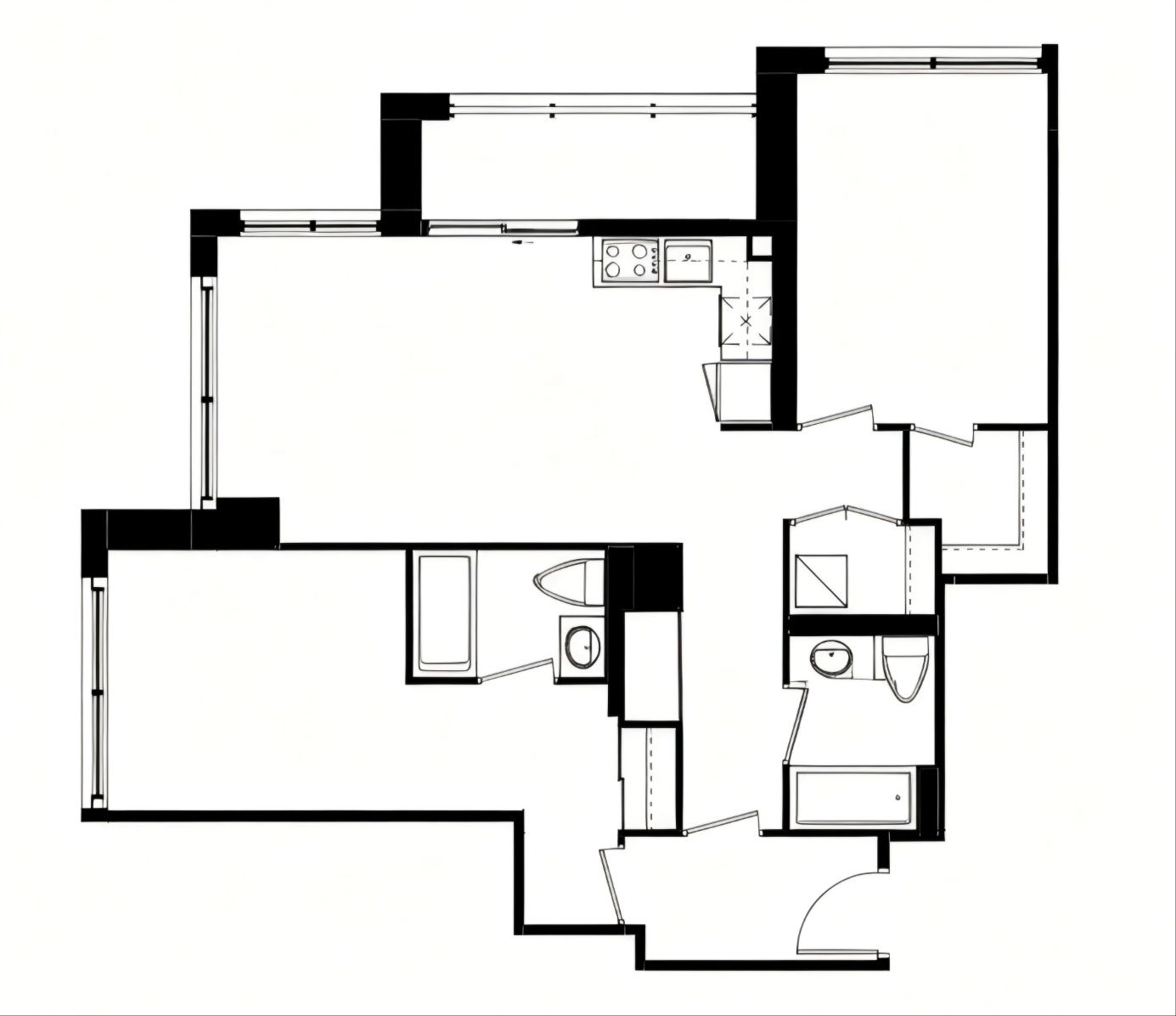 • Southwest-facing 2-bedroom unit with 969 square feet of space.