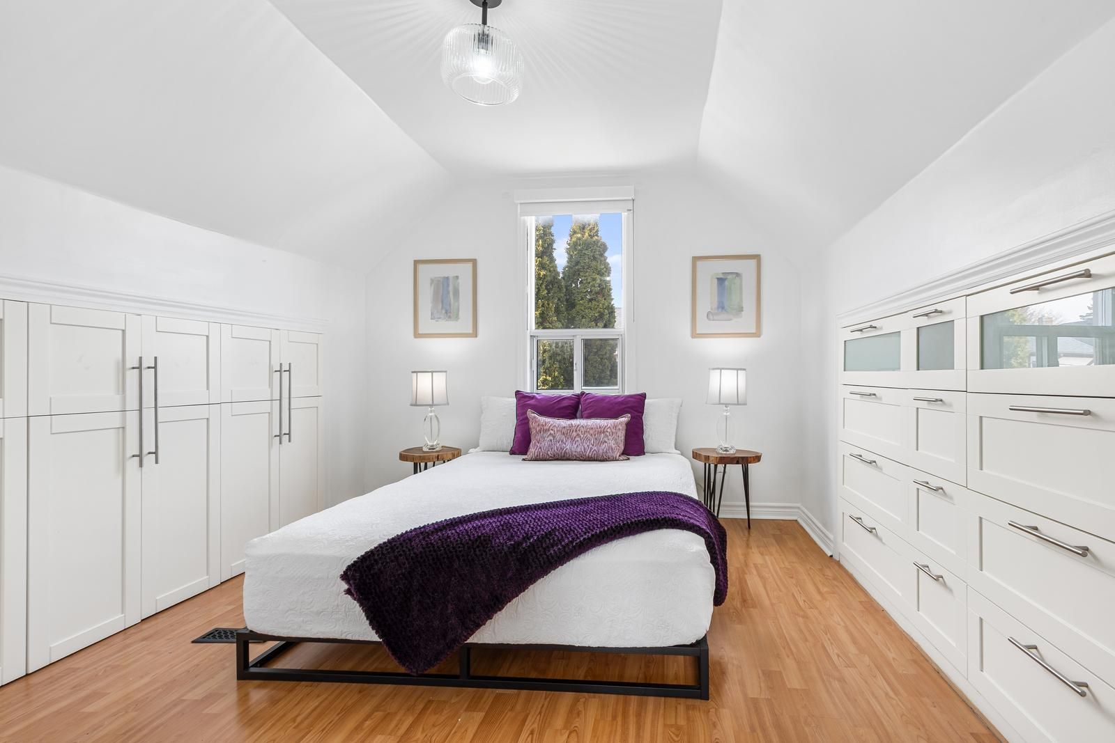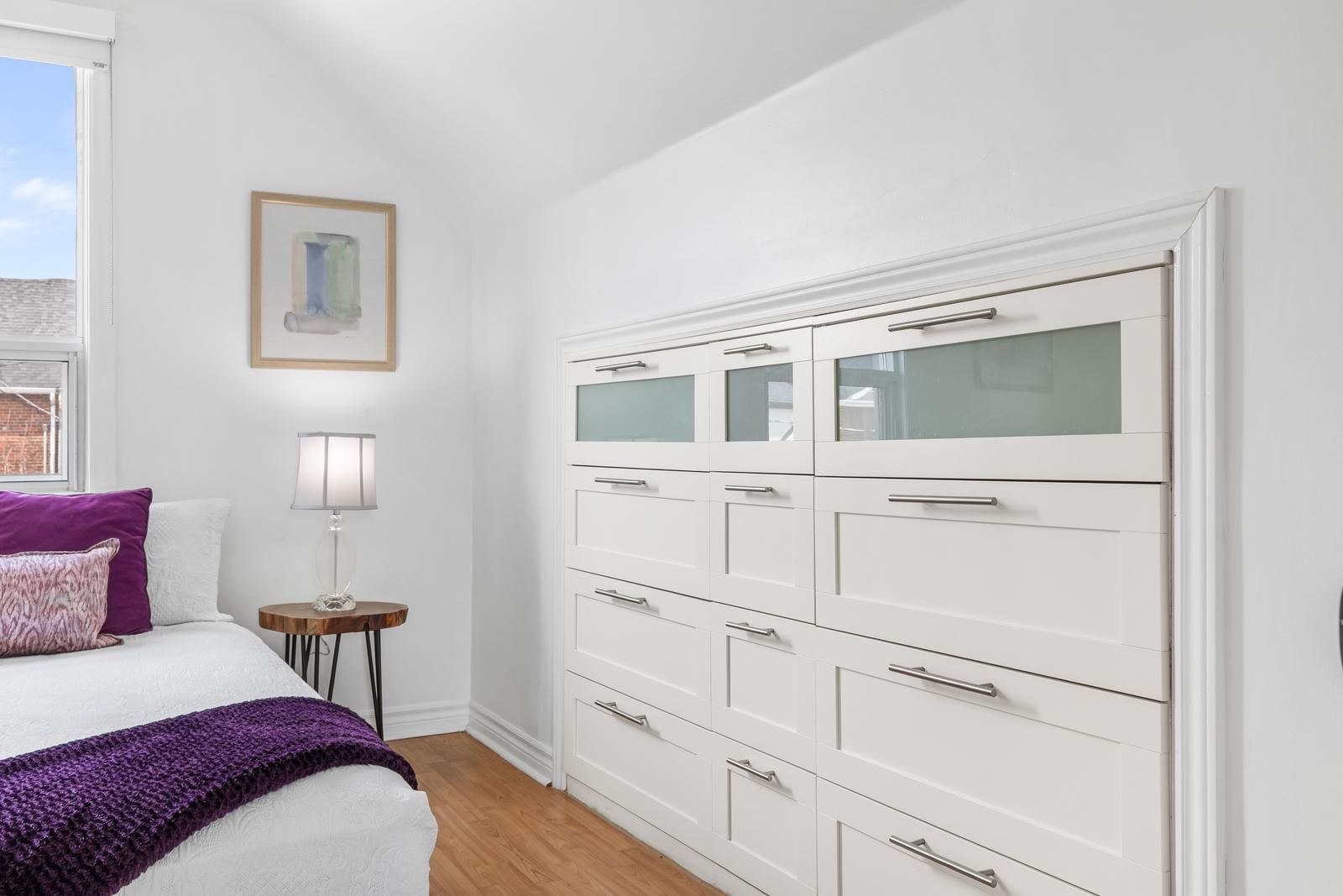 Welcome to 1 gray avenue, a charming 3-bedroom, 2-bathroom detached home with parking that blends classic character with thoughtful modern upgrades. Step inside to find beautiful hardwood floors, upgraded lighting, and elegant traditional archways that add warmth and timeless appeal throughout the home. Decorative wainscotting enhances the main living spaces, creating a refined yet inviting atmosphere. The bright kitchen is designed for both everyday living and entertaining, featuring stone countertops, stainless steel appliances, a gas stove, and a butcher block island that offers the perfect gathering spot. The front foyer/mudroom features in-floor heating, providing comfort during colder months while adding practical everyday functionality. Upstairs, the bedrooms feature cape cod style ceilings. The primary bedroom offers extensive custom built-in storage, maximizing space and organization. The home also includes a finished basement with plenty of storage, providing flexible space for a recreation room, home office, gym, or additional living area. Step outside to a private backyard ready to become an entertainer's dream, complete with a gas hookup ideal for a bbq or outdoor kitchen setup. The home is also equipped with solar panels on the roof, adding an energy-efficient feature with long-term benefits. Located in a convenient and growing west toronto neighbourhood, you're within walking distance to grocery stores, parks, and everyday amenities, as well as excellent transit options including the nearby mount dennis station, making commuting across the city simple. A fantastic opportunity to own a move-in ready detached home with parking, character, and modern upgrades in toronto.