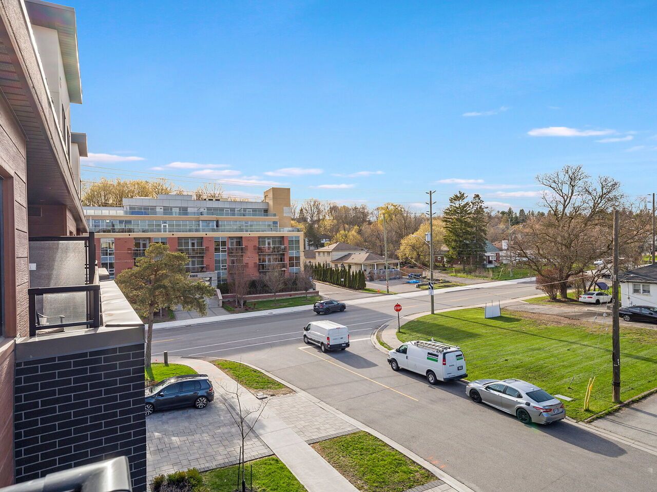 Welcome to this beautifully designed 3-bedroom, 3-bathroom freehold townhome in the heart of woodbridge, offering a modern open-concept layout with hardwood flooring, pot lights, and large windows that fill the home with natural light. The stylish kitchen features a spacious island, upgraded stainless steel appliances, and a 36" gas stove, flowing seamlessly into the inviting living area with a gas fireplace and walk-out to a private balcony. A standout feature is the built-in elevator providing convenient access to all levels. The upper level includes a generous primary retreat with a 5-piece ensuite, walk-in closet, and additional closet, along with two well-sized bedrooms, a full bathroom, and a second balcony off the third bedroom. Additional highlights include a tandem 2-car garage with interior access, driveway parking, and multiple outdoor spaces. Ideally located near islington & hwy 7, with quick access to major highways, schools, shopping, parks, and transit, this home offers the perfect blend of comfort, style, and everyday convenience.