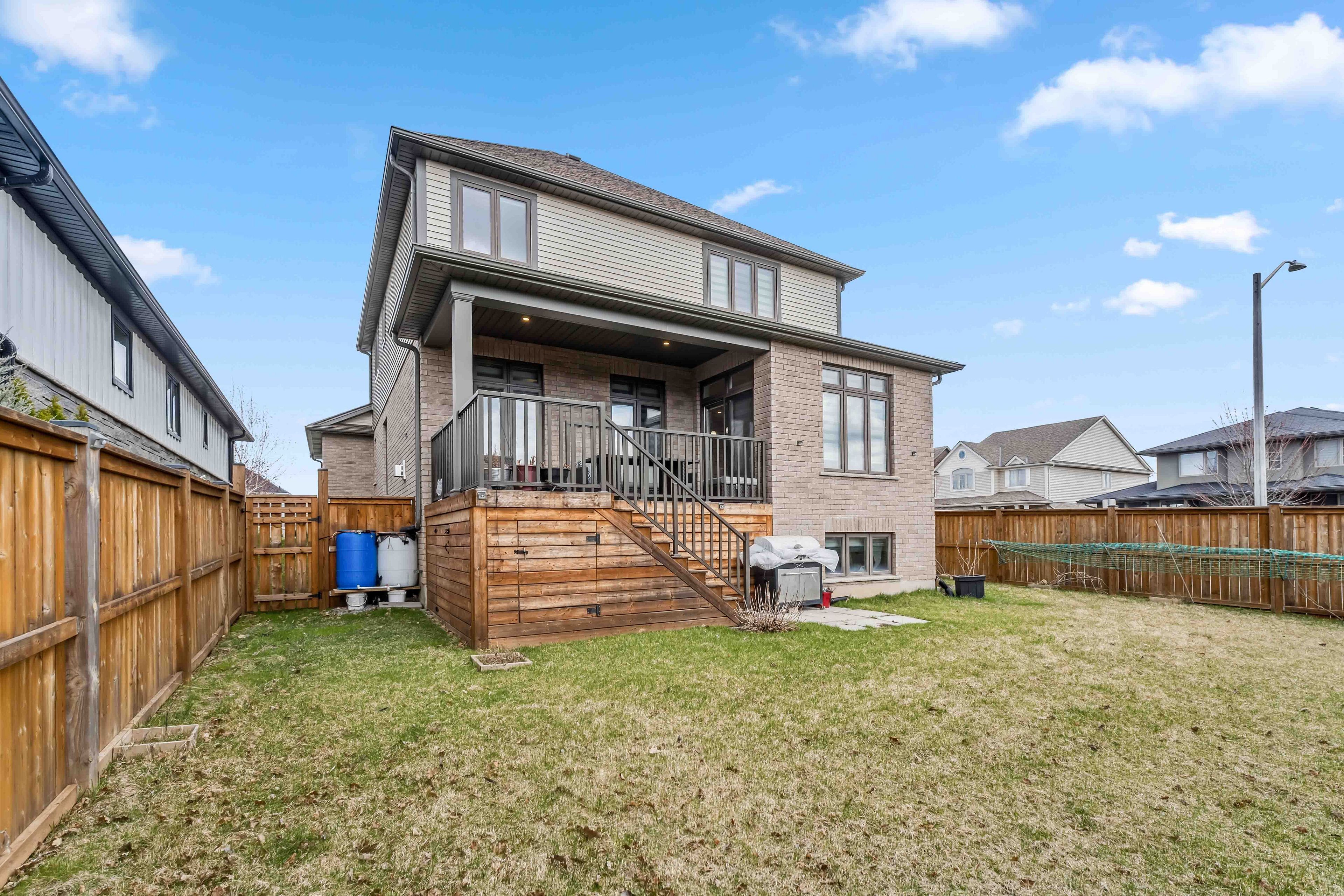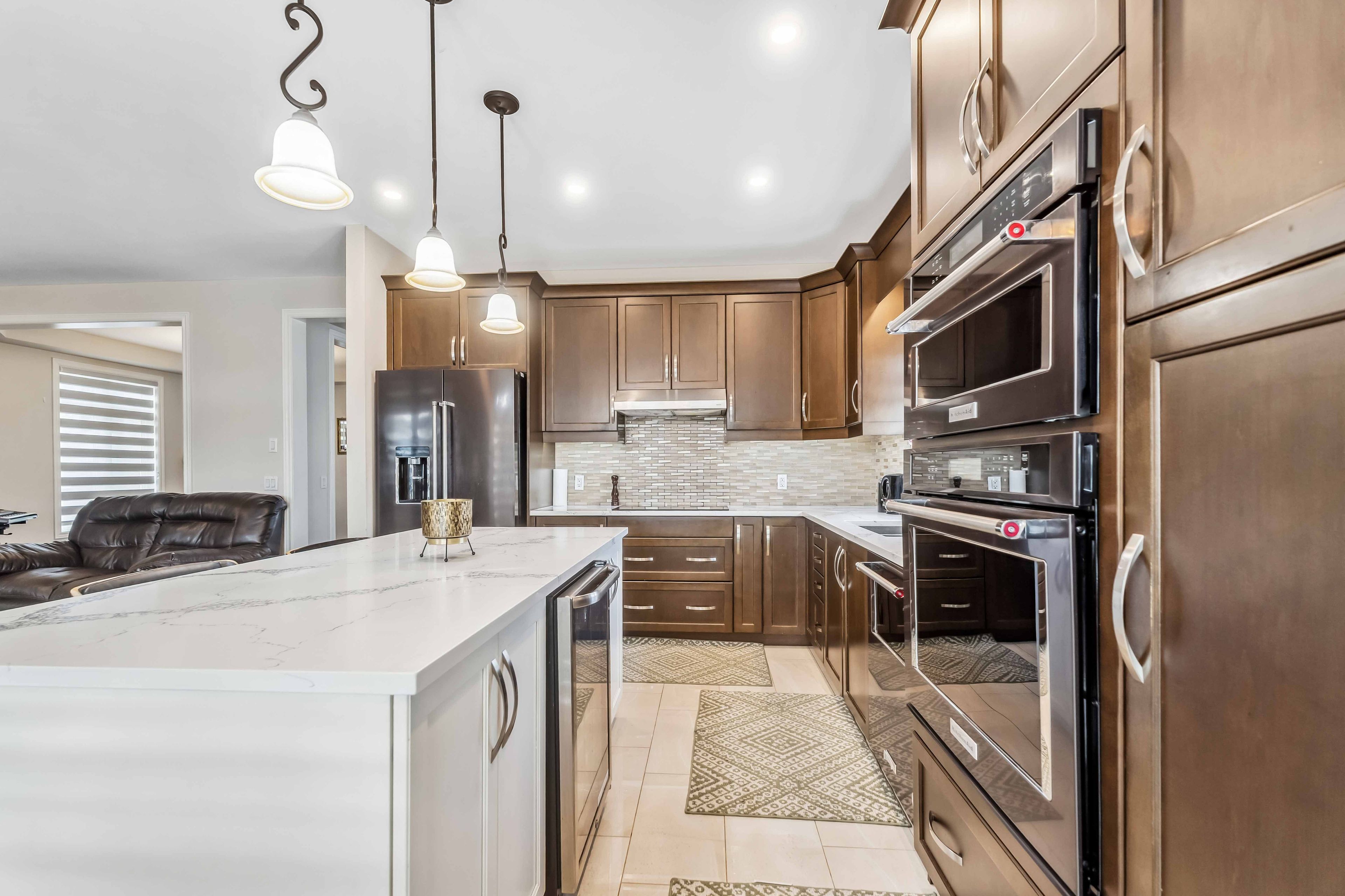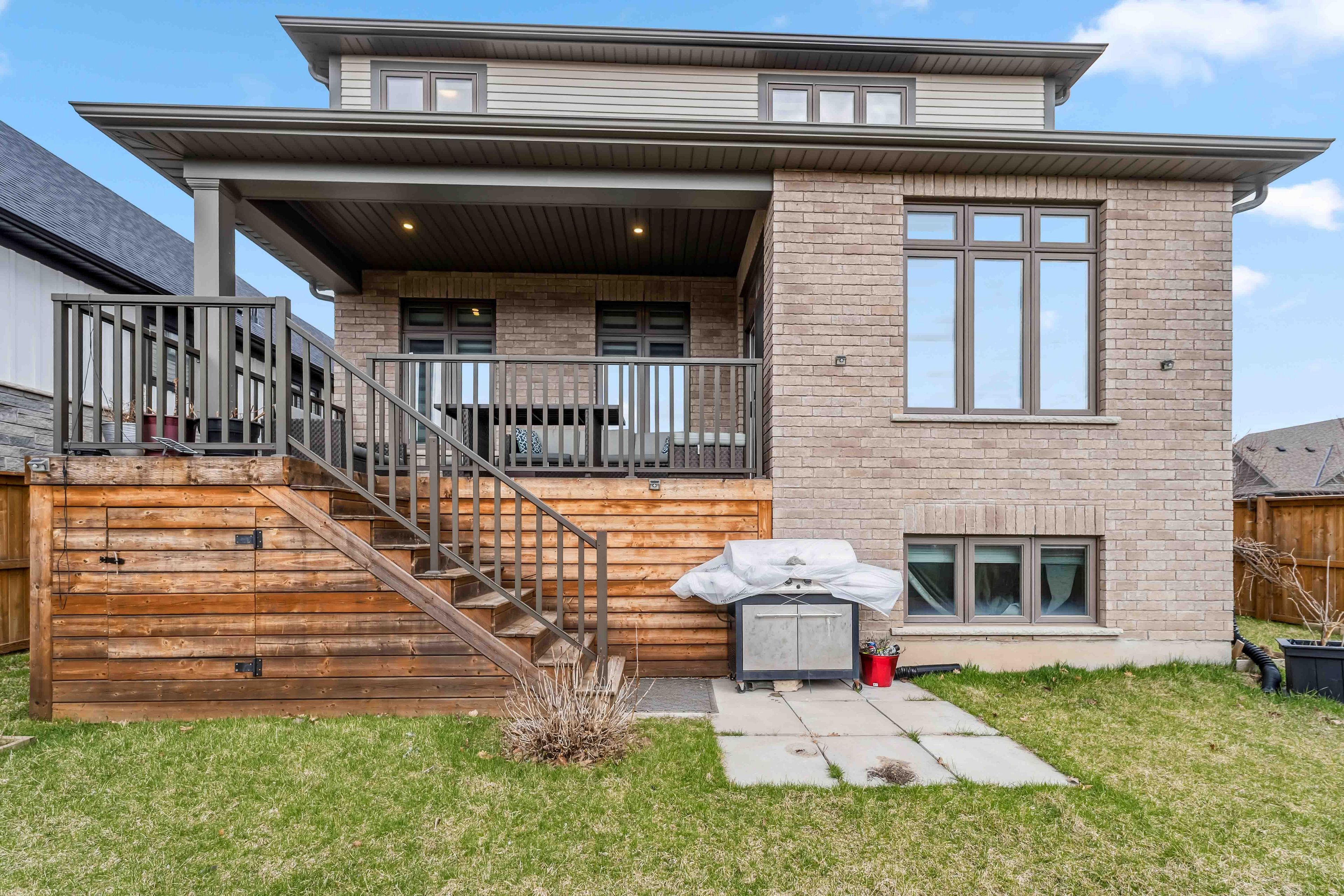 Absolutely stunning executive 2 storey home built by award winning rinaldi homes and loaded with builder upgrades throughout! This is a perfect turn-key home for a large family or multi-generational living. Featuring 9 ft ceilings, 4 spacious bedrooms, 2 of which have full ensuite bathrooms and 4 bathrooms throughout. Functional open concept floorplan extensively upgraded throughout and incredible curb appeal. Upon entry you will feel the instant wow-factor in the grand foyer greeted by the soaring wood staircase, stunning tiles and hand scraped hardwood floors. This is the perfect layout for the entertainer. Family room with natural gas fireplace, open living room to dining room to bright large eat-in kitchen with quartz counters, island and window surround with walkout to raised covered patio and large private fenced yard. Second level features oversized primary bedroom retreat with large sitting area, spacious walk-in closet and full 5-pc ensuite with soaker tub, double vanity and separate shower. Secondary suite features 3-pc ensuite. 2 additional large bedrooms and 4-pc bath. Lower level unspoiled with potential for future recreation room and additional bedrooms and has a finished 3-pc bath. Quiet family oriented location, close to parks, highway, shopping and all amenities. Flexible closing available, book your tour today!