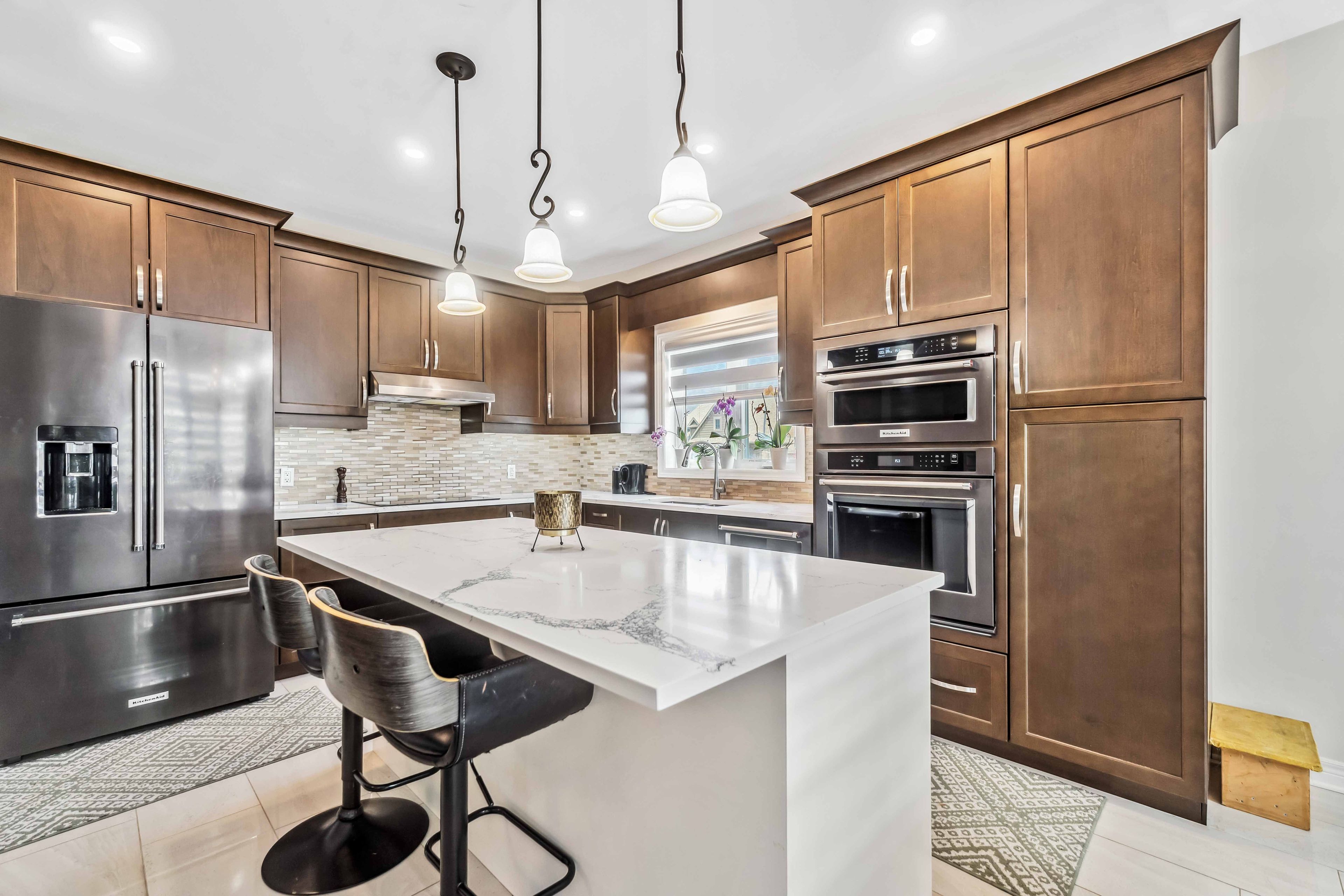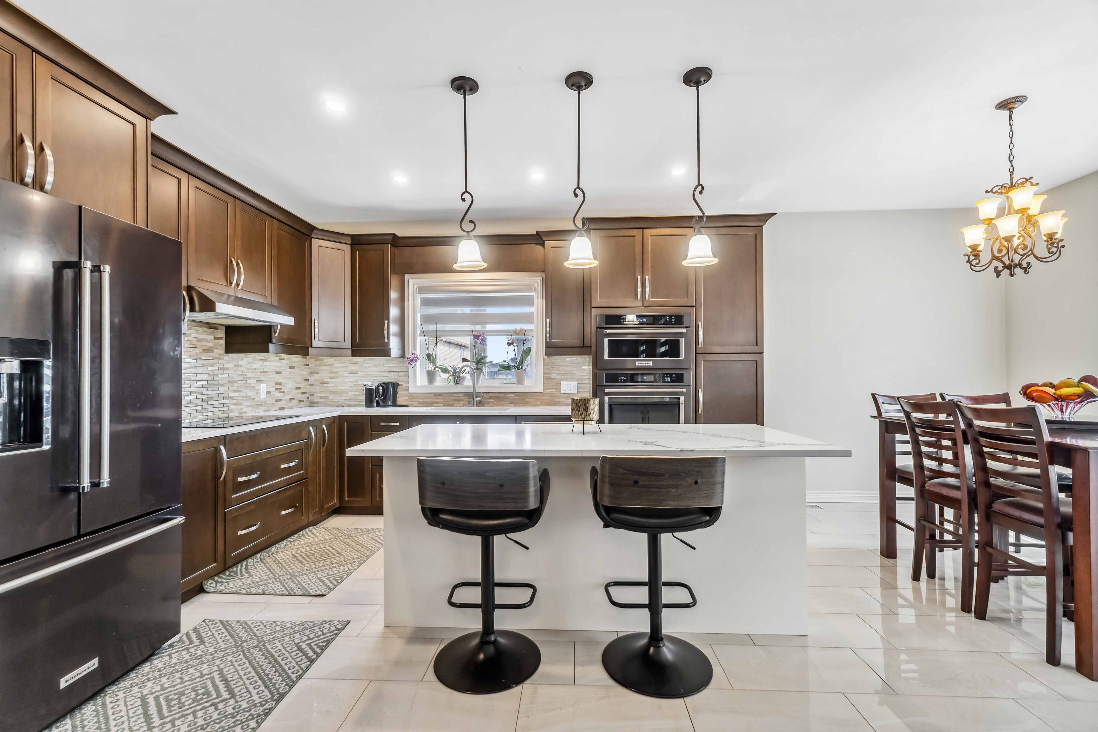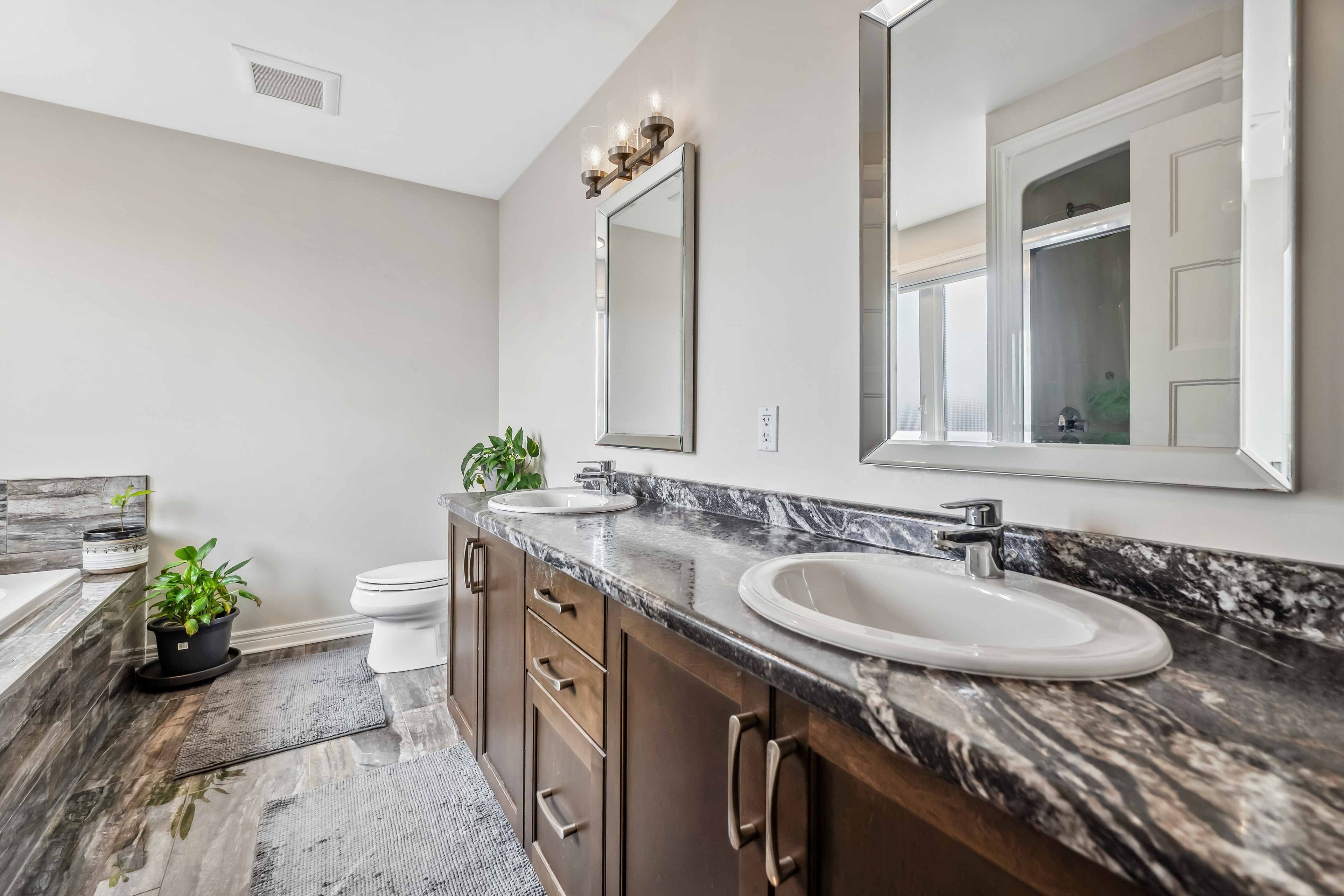 Absolutely stunning executive 2 storey home built by award winning rinaldi homes and loaded with builder upgrades throughout! This is a perfect turn-key home for a large family or multi-generational living. Featuring 9 ft ceilings, 4 spacious bedrooms, 2 of which have full ensuite bathrooms and 4 bathrooms throughout. Functional open concept floorplan extensively upgraded throughout and incredible curb appeal. Upon entry you will feel the instant wow-factor in the grand foyer greeted by the soaring wood staircase, stunning tiles and hand scraped hardwood floors. This is the perfect layout for the entertainer. Family room with natural gas fireplace, open living room to dining room to bright large eat-in kitchen with quartz counters, island and window surround with walkout to raised covered patio and large private fenced yard. Second level features oversized primary bedroom retreat with large sitting area, spacious walk-in closet and full 5-pc ensuite with soaker tub, double vanity and separate shower. Secondary suite features 3-pc ensuite. 2 additional large bedrooms and 4-pc bath. Lower level unspoiled with potential for future recreation room and additional bedrooms and has a finished 3-pc bath. Quiet family oriented location, close to parks, highway, shopping and all amenities. Flexible closing available, book your tour today!