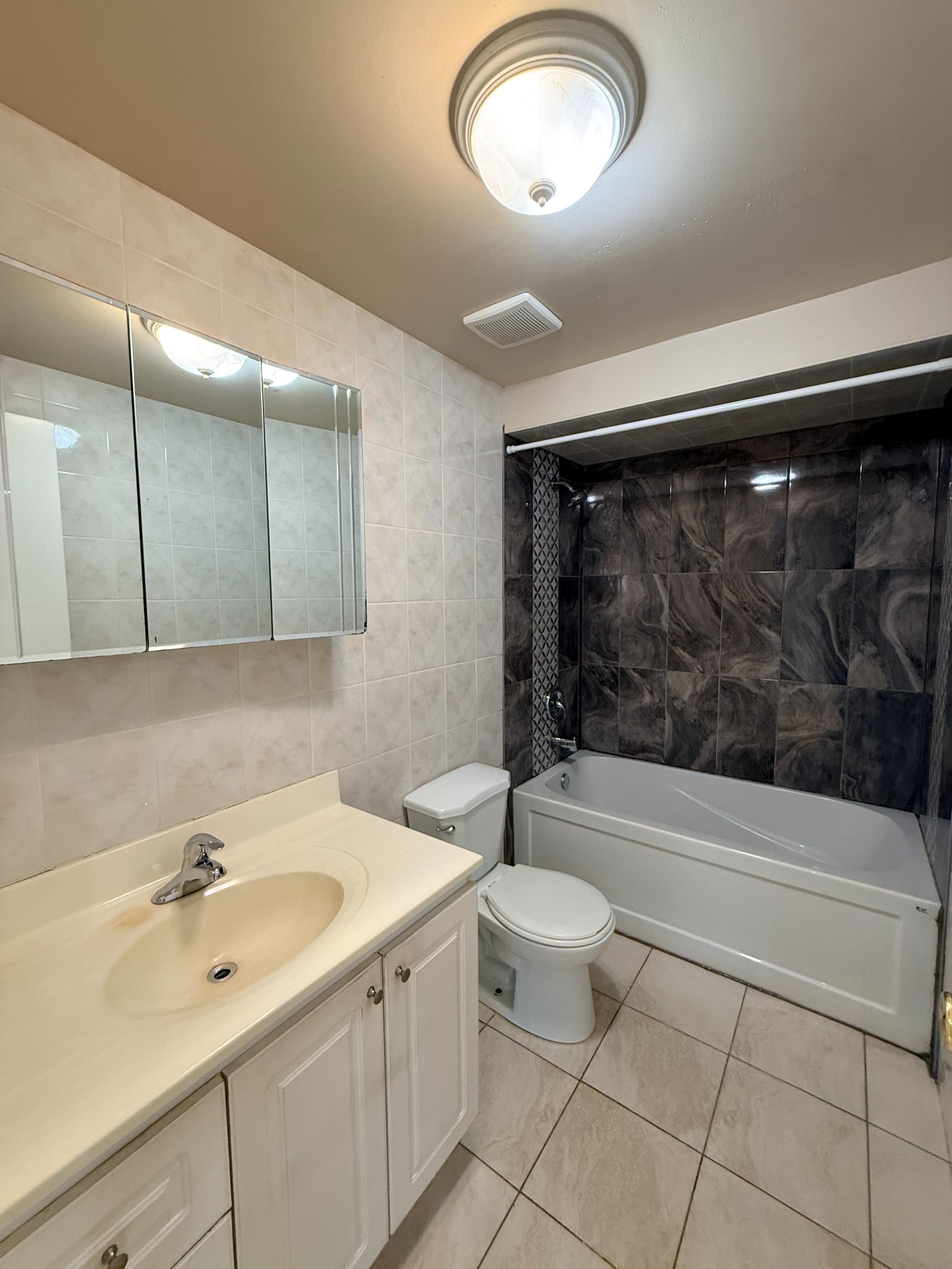 • Updated kitchen with modern cabinetry and stylish backsplash.
