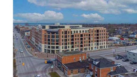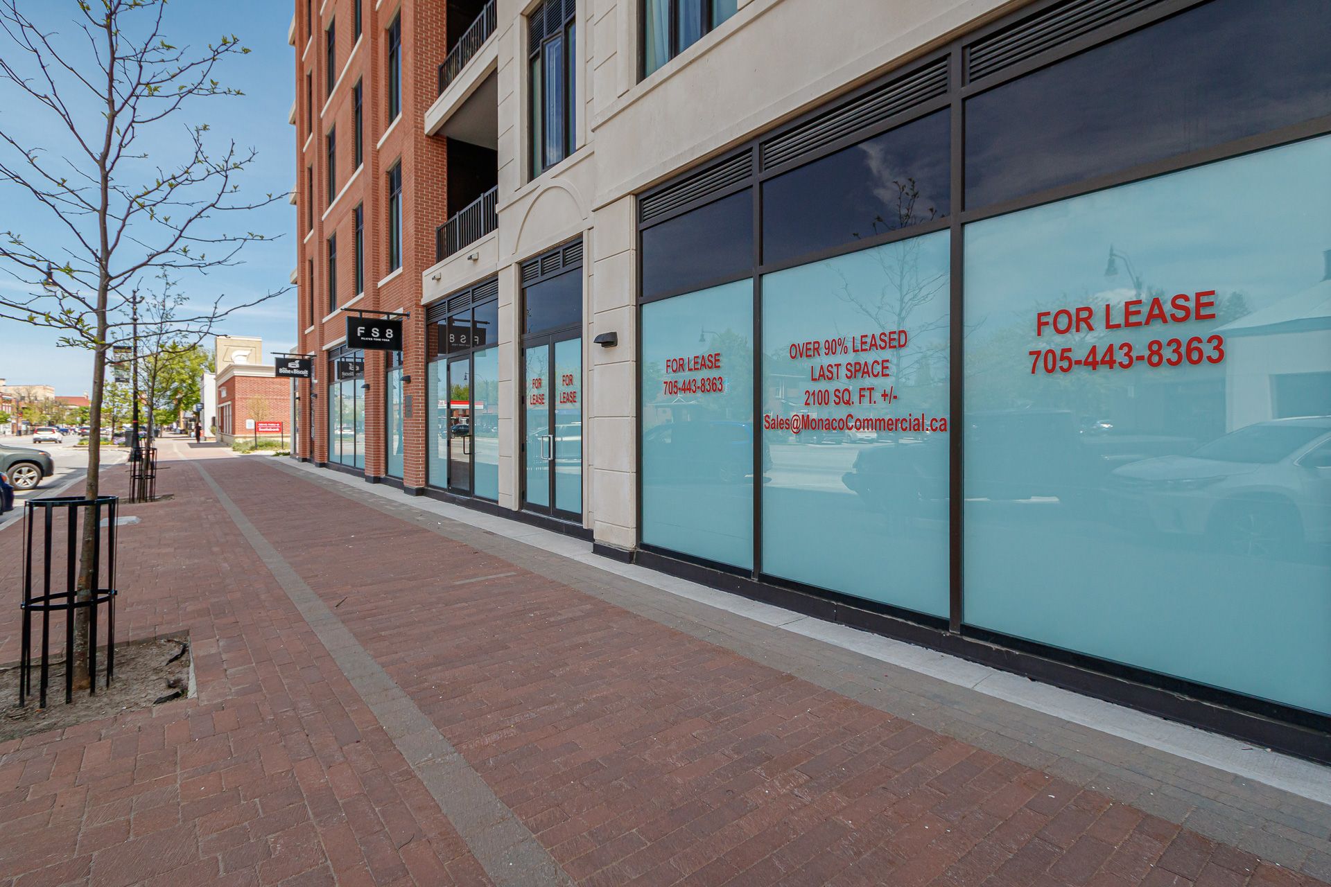 Monaco collingwood offering a unique location in this established & prestigious commercial space, situated at the intersection of hurontario and hume streets. The ground floor of monaco is designated for retail use, providing businesses with the opportunity to establish a presence in a high-traffic area. Just over 2100 sqft remains and is available for occupancy with dual access from the monaco parking lot or street parking. Bright and airy interior with 12 foot ceilings and oversized windows and doors. The integration of retail within a residential building ensures a built-in customer base, while the surrounding downtown area attracts additional foot traffic from visitors and locals alike. Gordons market and café, cibc private wealth management, doane grant-thornton, fs8 yoga & pilates are located in monaco and flourishing. This location ensures high visibility and foot traffic, as it is within walking distance to a variety of restaurants, boutiques, art galleries, and cultural attractions. The area is known for its vibrant atmosphere and is a popular destination for both residents and tourist. Given the upscale nature of the monaco building and its location within a vibrant downtown area, businesses that would particularly benefit from this opportunity include: boutique retail, professional services, wellness and spa services, etc.