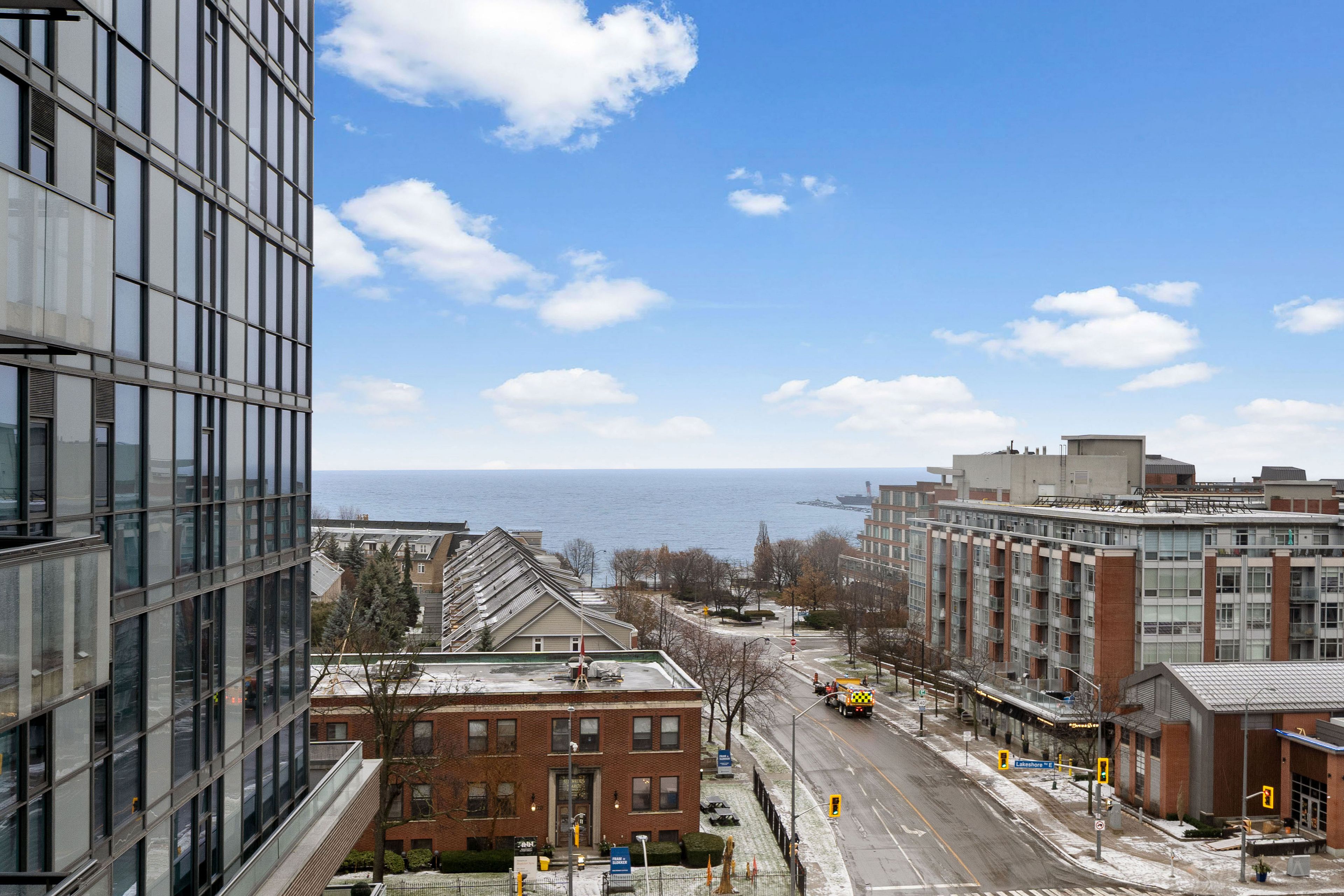 Experience the ideal blend of space, style, and tranquility in this beautifully designed spotless, well decorated suite in move in condition in a prestigious, well maintained development. The open-concept kitchen with granite countertops and stainless steel appliances flows seamlessly into the living and dining room, perfect for entertaining or unwinding. Step onto your private balcony looking west. There is no other condo above this unit making it perfectly peaceful. The primary bedroom a large window, and is perfectly decorated and maintained. The den works perfectly as a home office. Located in port credit's sought-after village on the lake, you're steps to waterfront trails, live music, dining, boutique shopping, and the go train across the street for an easy sub-30-minute commute to downtown toronto. Building amenities include 24-hour concierge, fitness room, and rooftop terrace with bbqs. Includes parking and locker. This unit must be viewed with absolute confidence!!