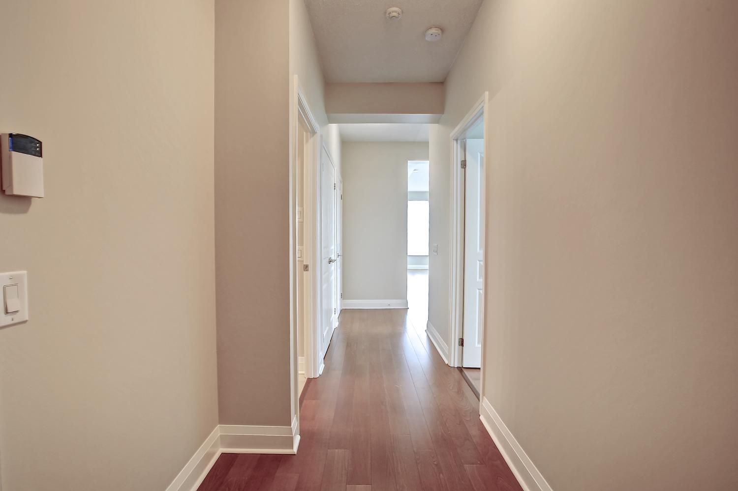 • Open concept layout with hardwood floors and a walk-out balcony.