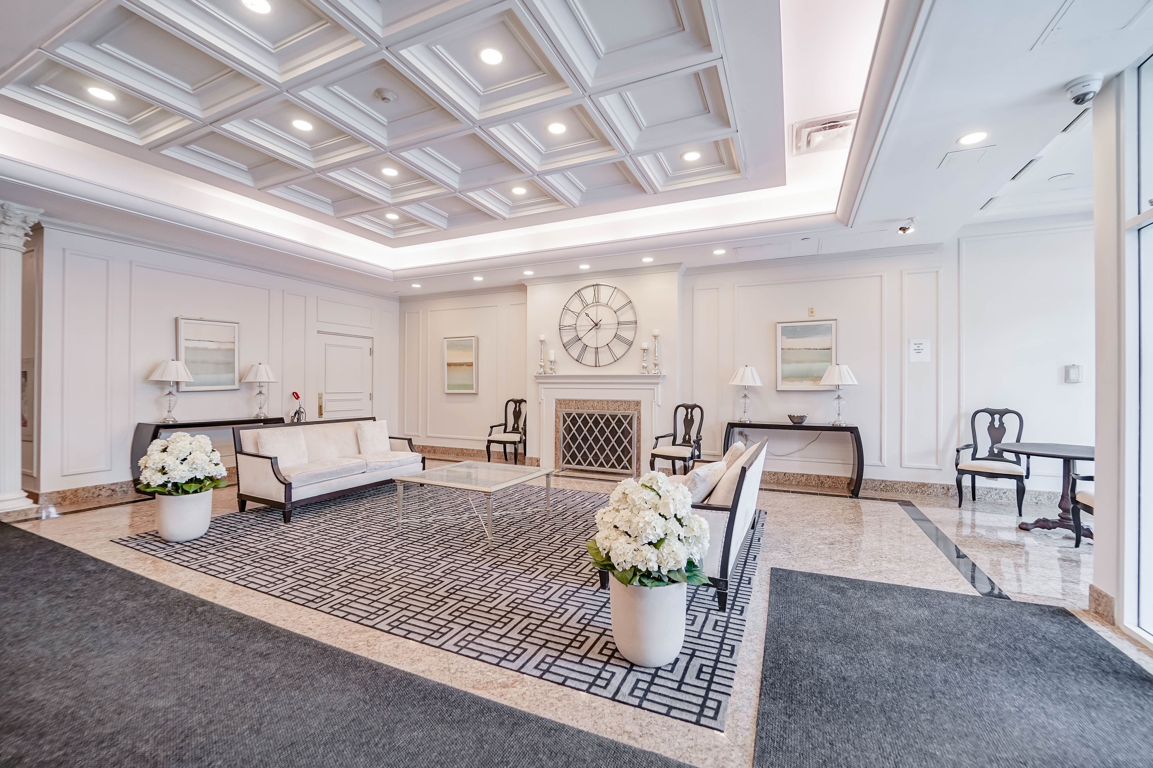 • Building features amenities like exercise room, sauna, and billiards room.