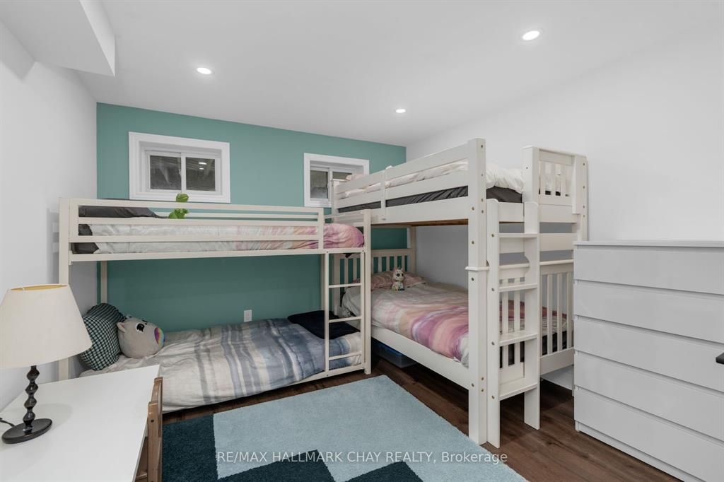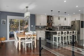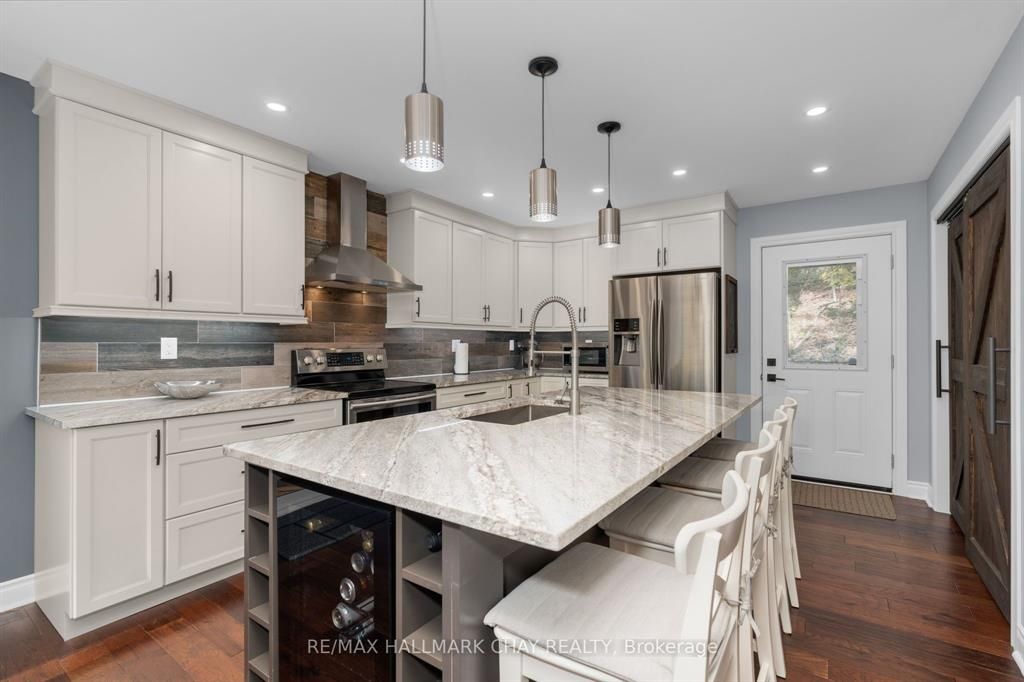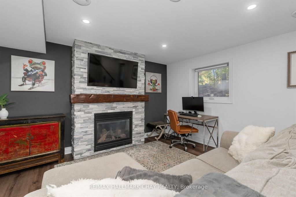 Welcome to the community of sugarbush. This beautiful home is nestled in the woods. Completely updated and turn key with a flexible closing. Perfect home or chalet for that ski family. Gourmet kitchen with granite counter tops and stainless steel appliances. Built in wine fridge and wine rack in island. Pantry with barn doors and a walkout out to the lovely deck with glass railings. Dining area with sliding doors and big picture windows that bring in lots of light and a beautiful nature view. The primary bedroom offers a wall of built clothing storage. Two updated full bathrooms on each level. Upgraded electrical pot lights and dimmers on switches. The walk in ground level has a gas fireplace with stone surround and offers two more bedrooms. The recreation room is welcoming and open with a gorgeous custom built staircase. This home will not disappoint and shows 10+. Sweet water park is located down the road. Walking and biking trails throughout the subdivision. In that catchment area for the new horseshoe heights elementary school in horseshoe valley. Shed for storage and lots of parking.