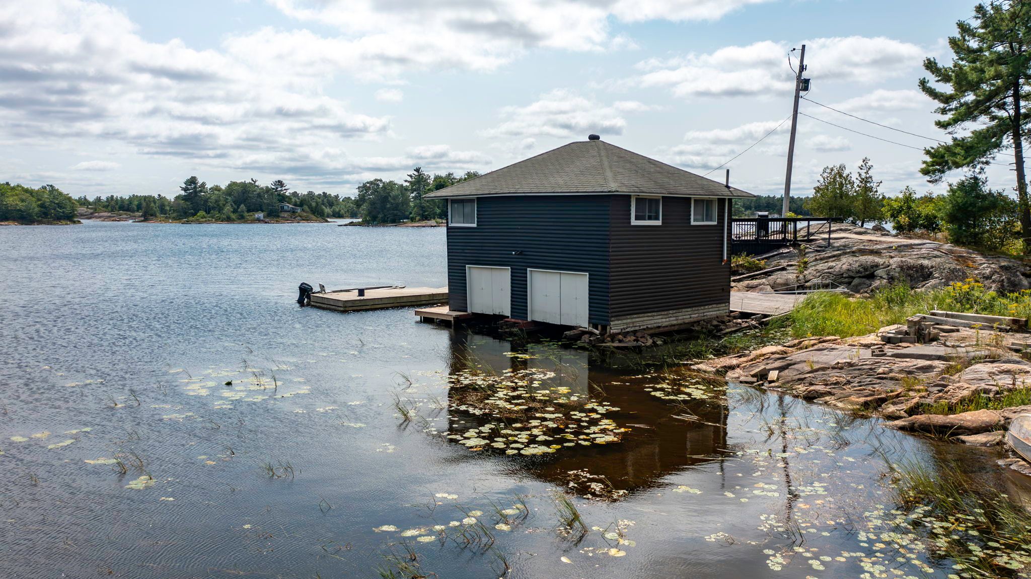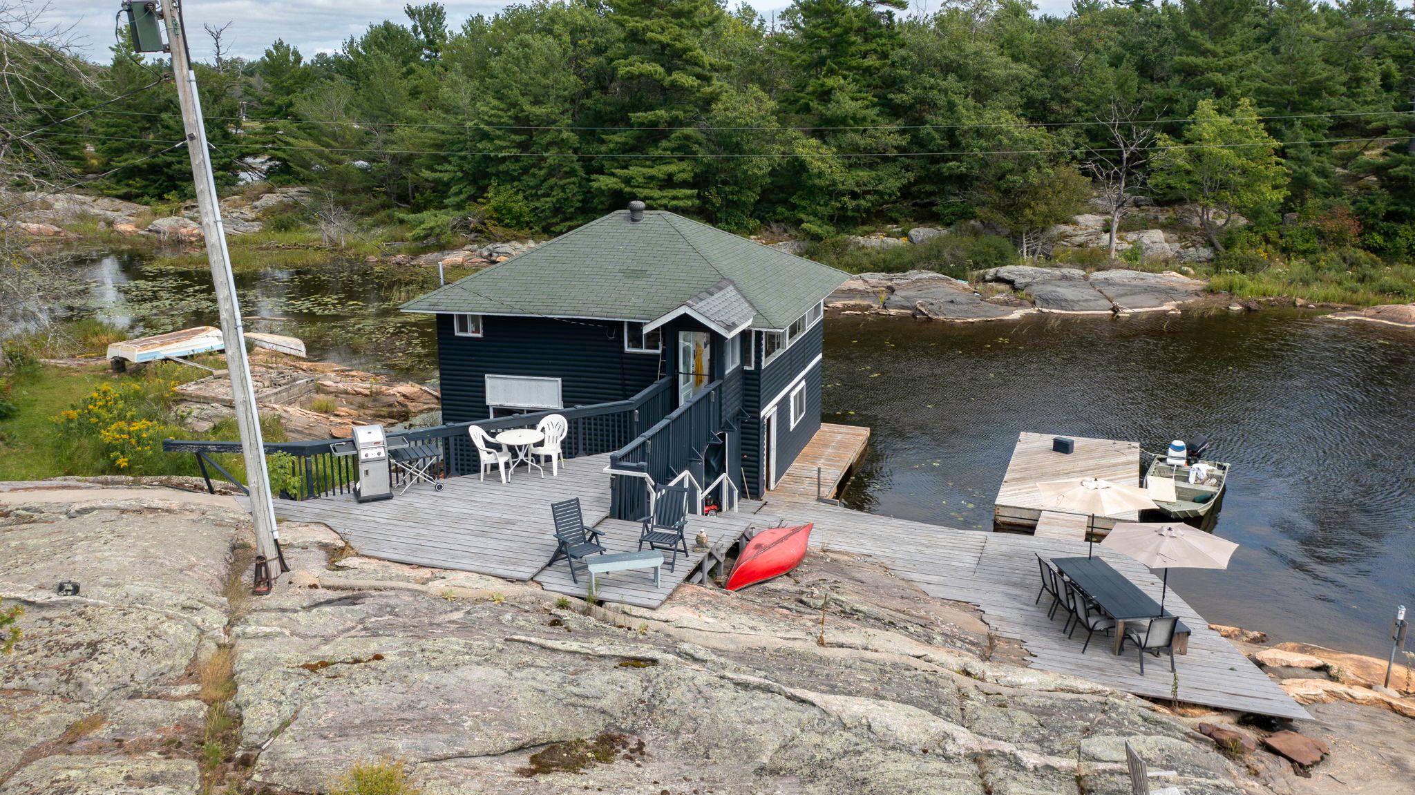 Private island on georgian bay! If you have ever had the dream of owning a private island on georgian bay, and the prestige that it represents, here is your opportunity. This island is located just a short 2 minute boat ride from dillon cove marina, for easy access and offers the spectacular western sunset views for you to enjoy every night! On your island, you have a multitude of locations to sit, enjoy the breathtaking views both outside and from inside. (the bedroom (4) and bathroom count (2) is the combination of the cottage, boathouse and bunkie). The main structures consist of an original 717 sq' 1 bedroom cottage (with small loft), an original 2 boat slip boat house with 572 sq' living space above with 2 bedrooms, and a cozy 1 bed bunkie! The cottage, boathouse and bunkie have been updated to maintain the original georgian bay feel, while adding modern touches that make you feel like you are walking into a magazine! The main cottage is connected to the septic system, the boathouse bathroom has a composting toilet and there is large bathroom/outhouse with a composting toilet located between the cottage and the bunkie for convenience. Notes: there are some cribs under the boathouse that should be repaired. There are no septic papers available. It is believed that the septic system was installed in the 50's and has a metal tank, which should be replaced. The owners park and keep their boat at the katawoda cottages resort property just across at the mainland, for a current annual cost of $1200 + gst.