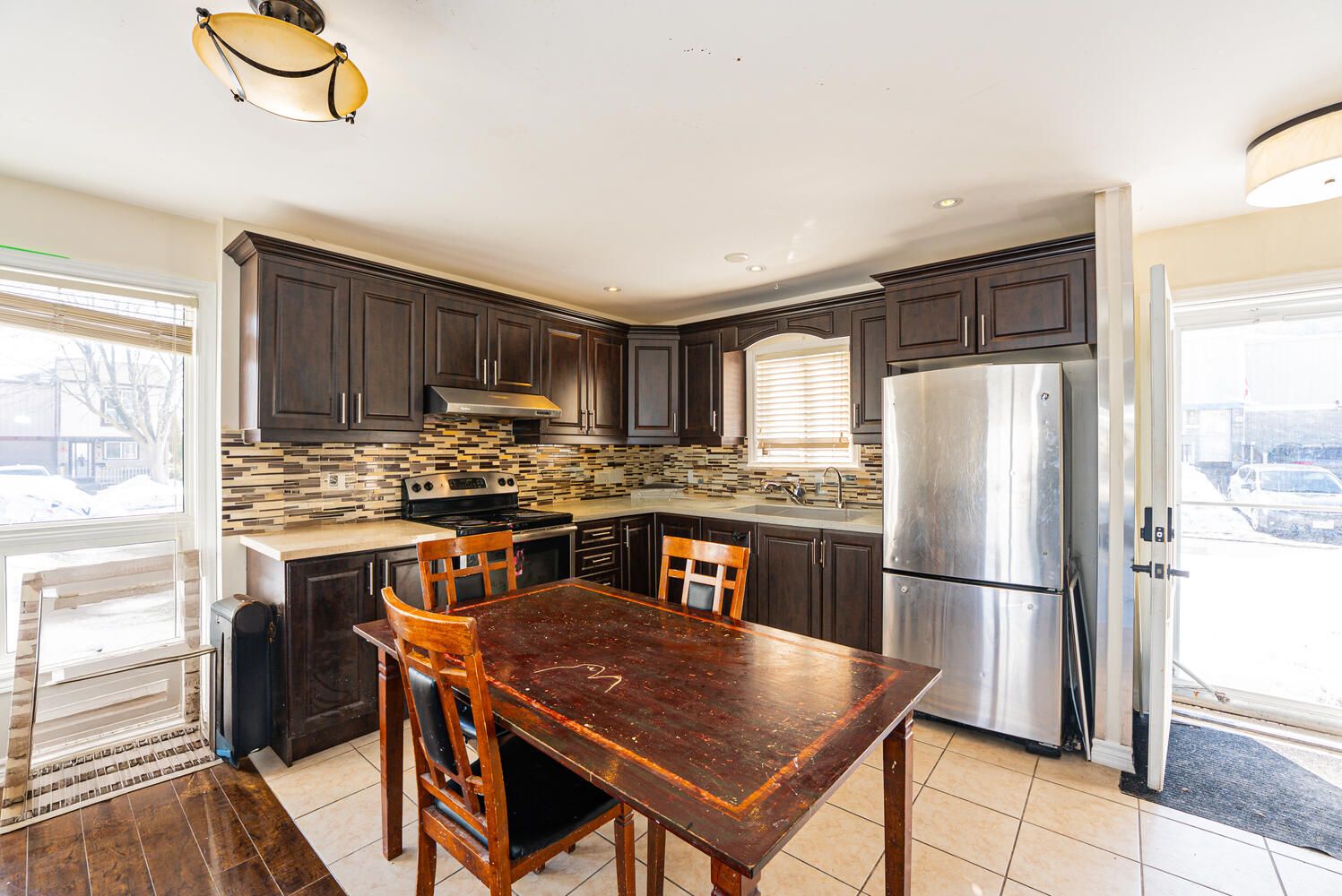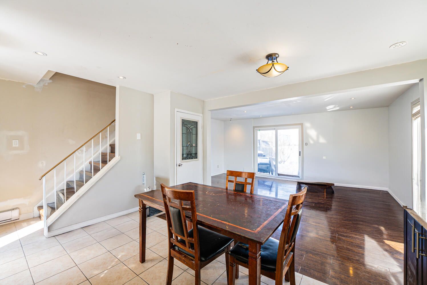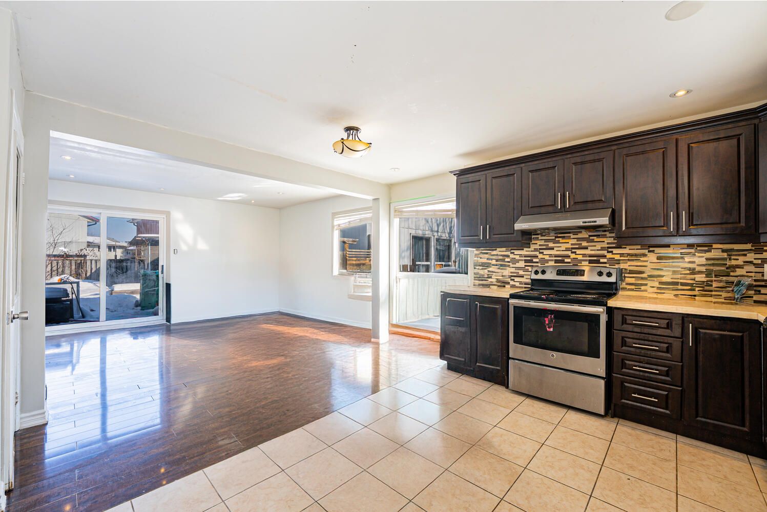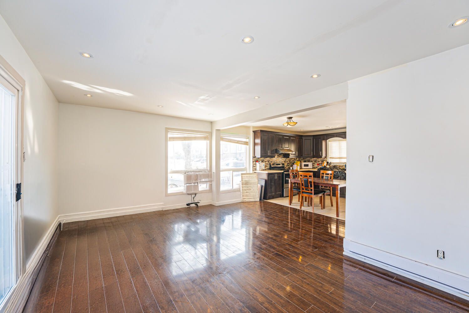 • Spacious living/dining area with pot lights and backyard access for gatherings.