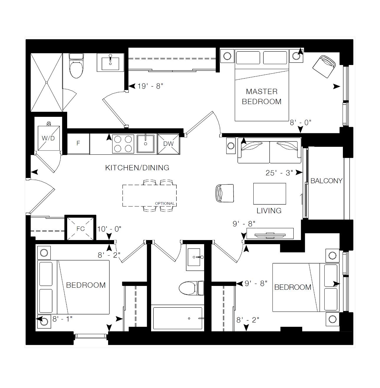 • Spacious 843SF condo with 3 bedrooms and 2 full baths.