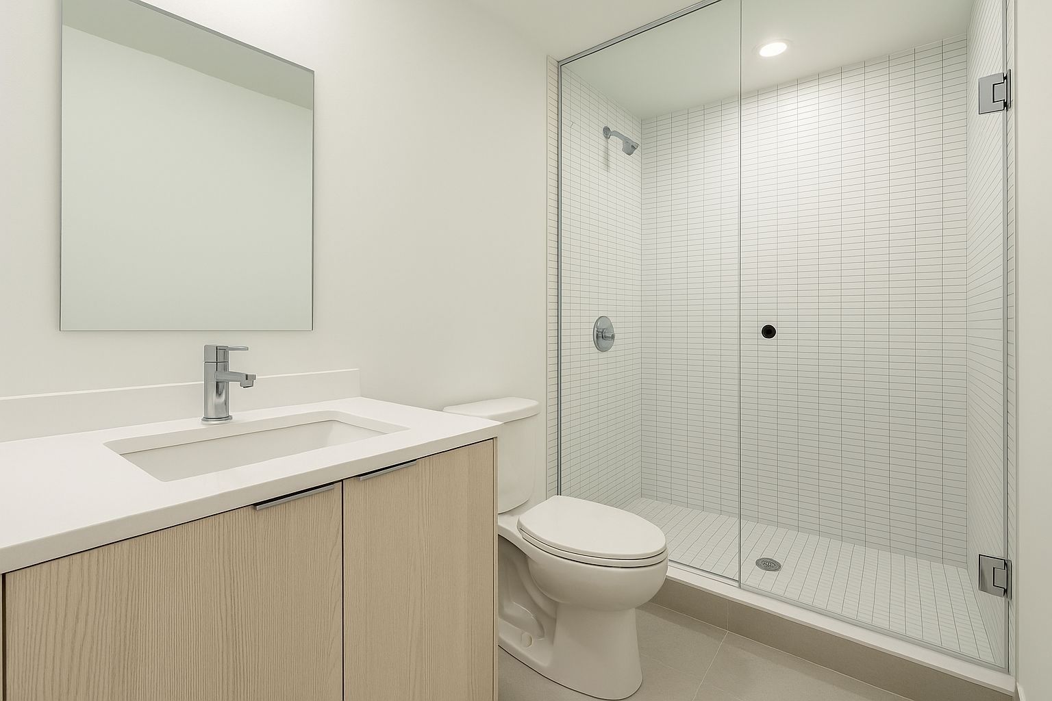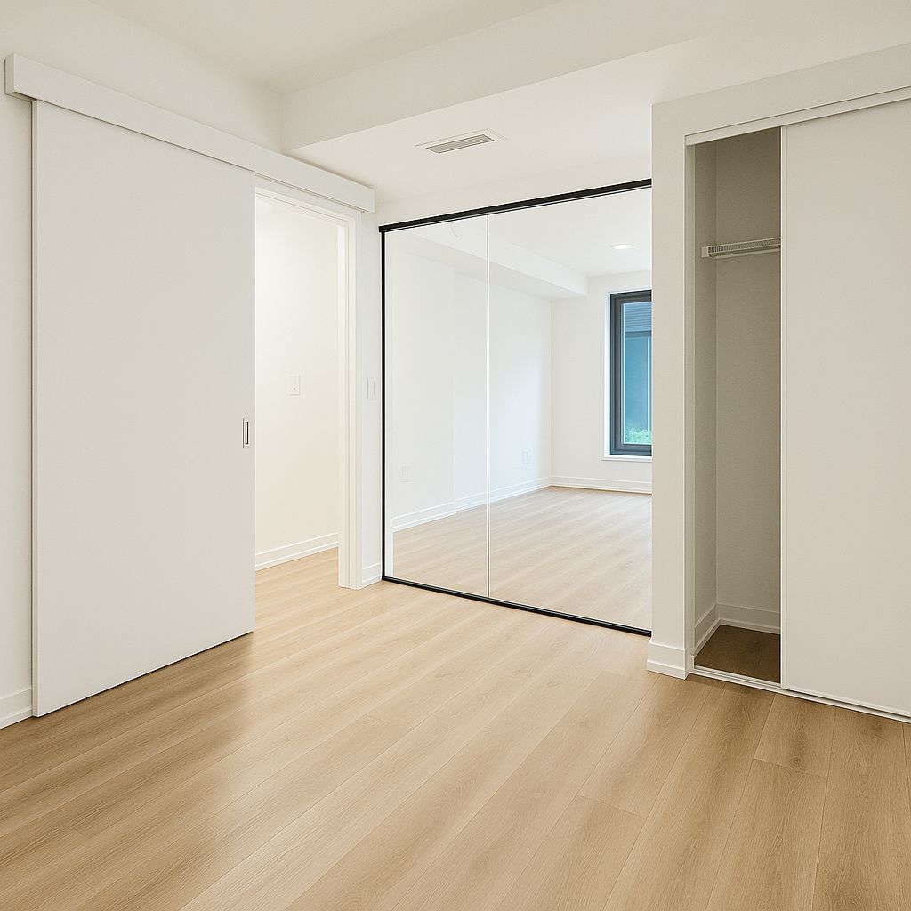 • Modern one-storey condo with spacious master bedroom and sleek bathroom.