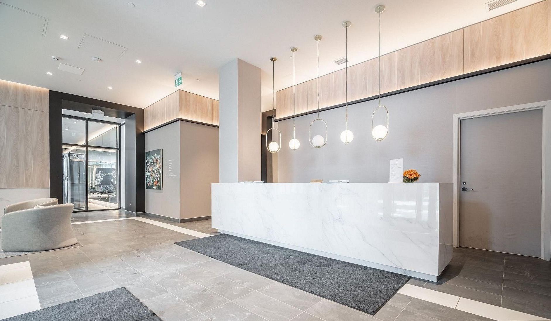 • Premium amenities include a fitness center and stylish co-working lounge.