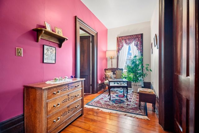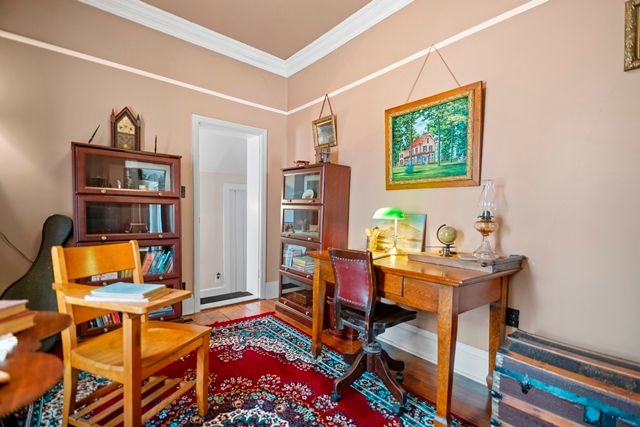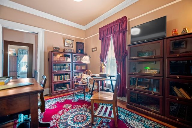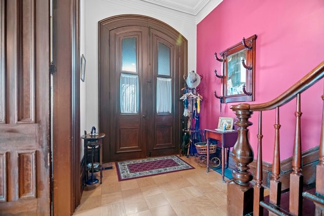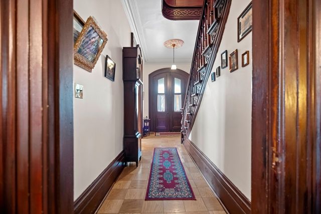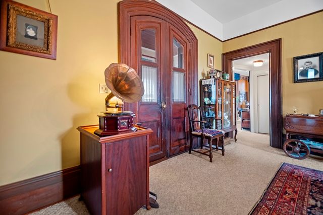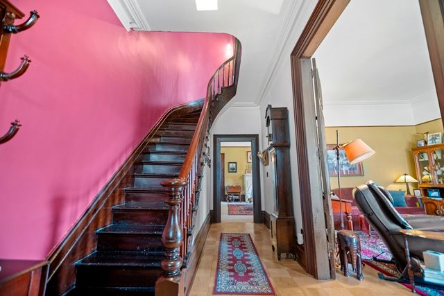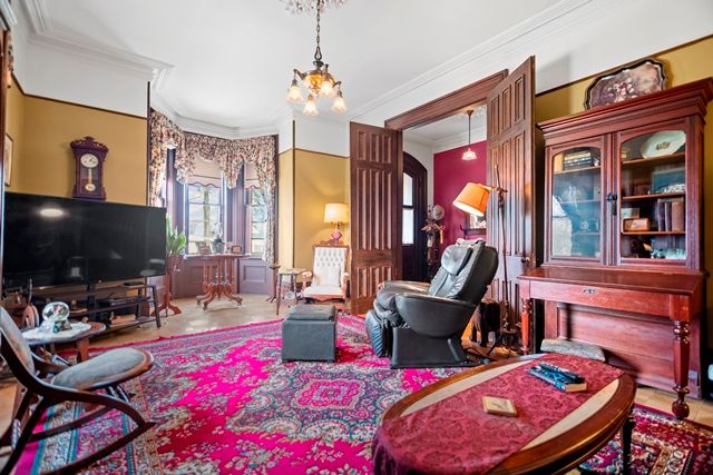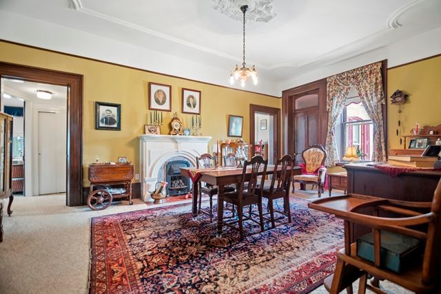 • Spacious layout with soaring 12-foot ceilings and intricate woodwork.