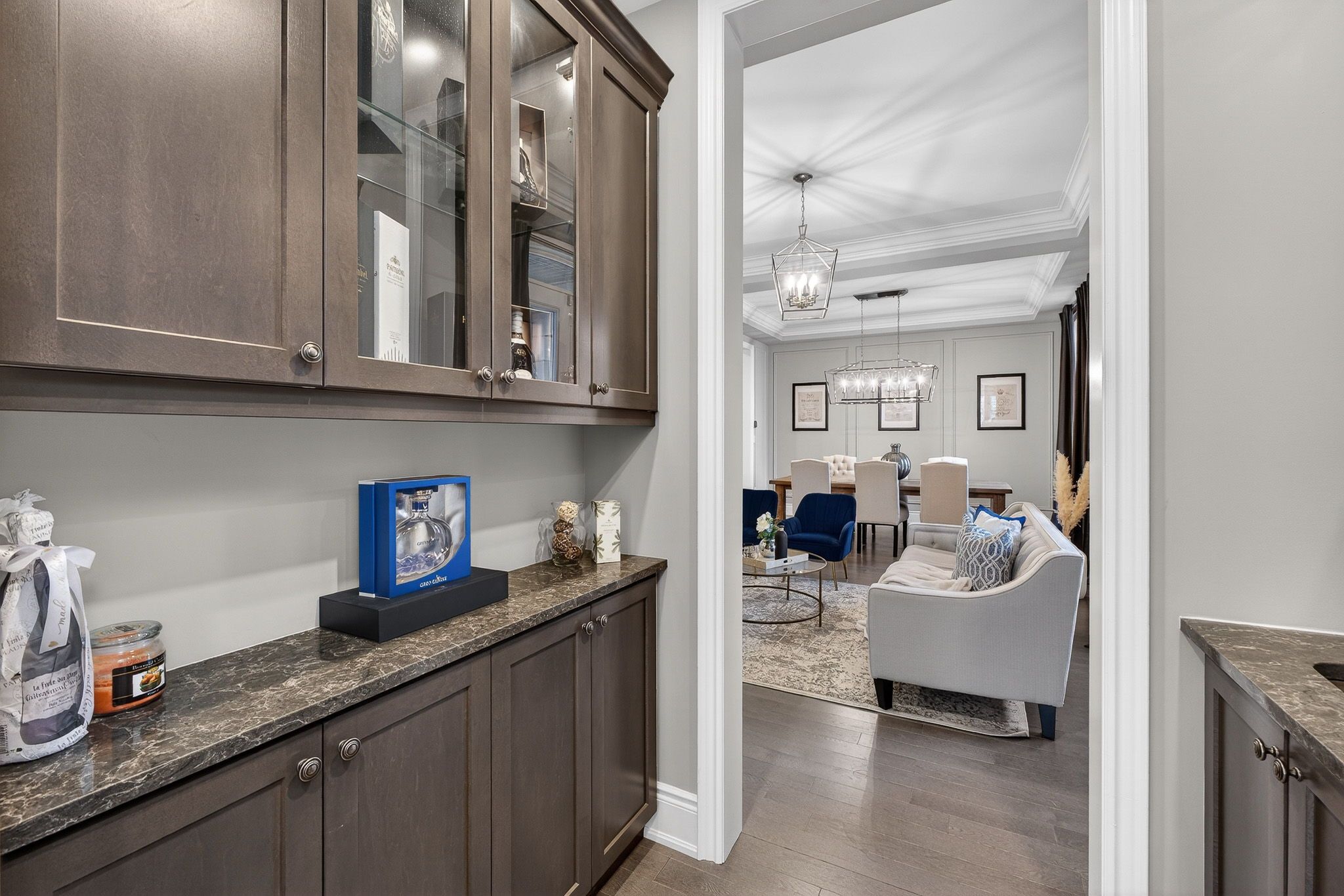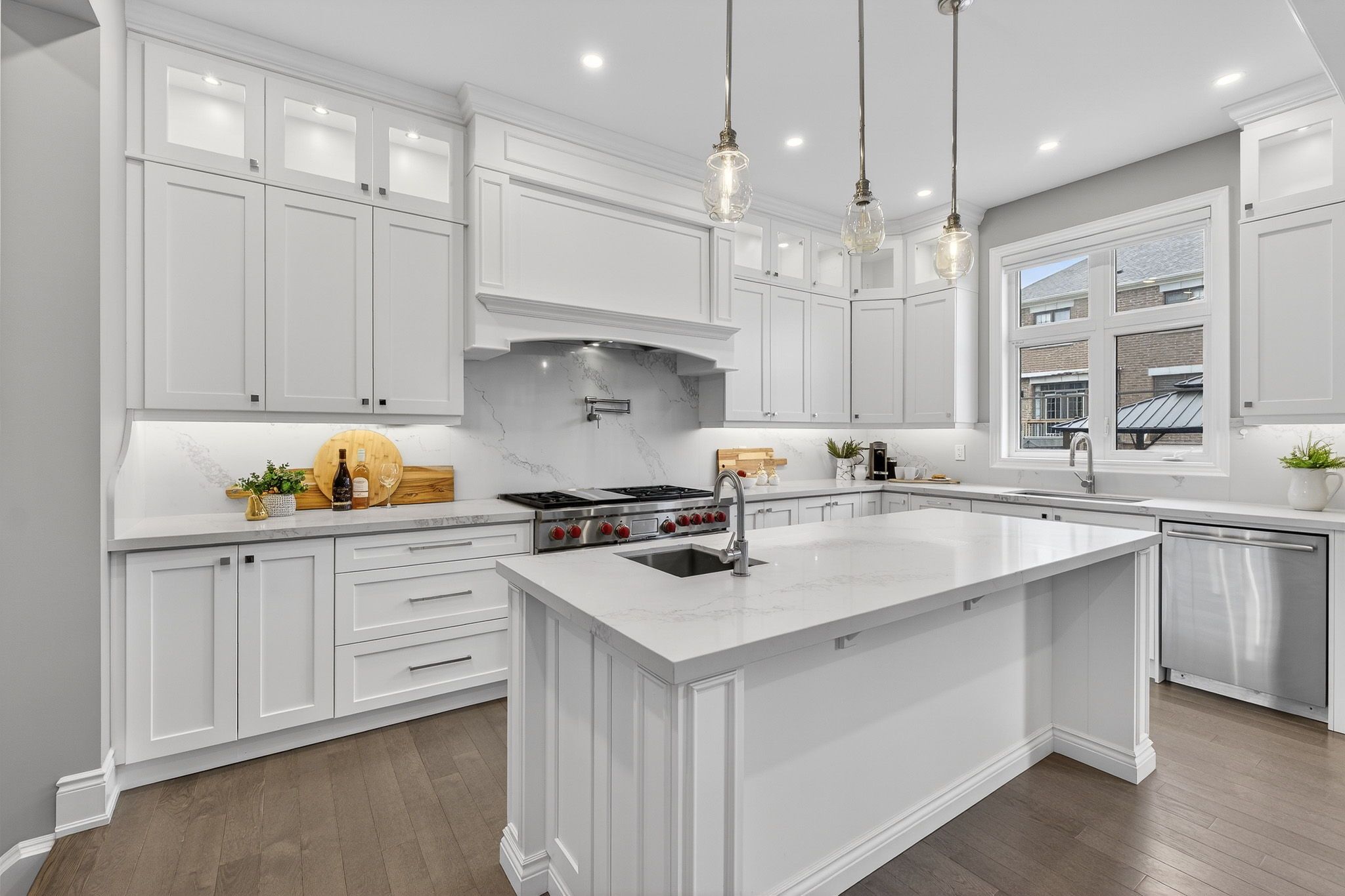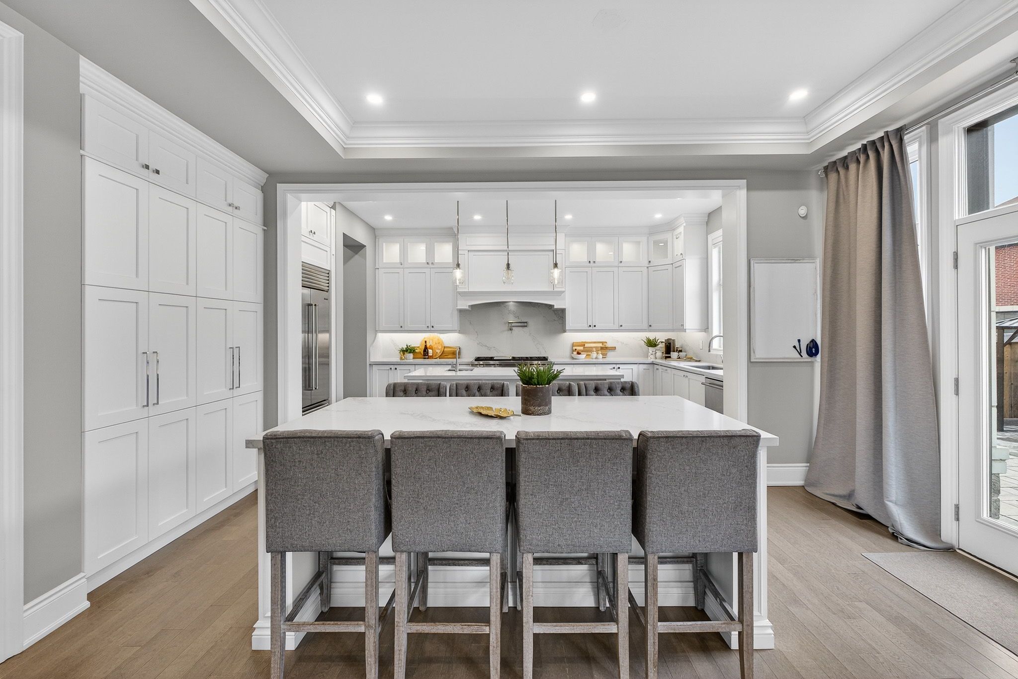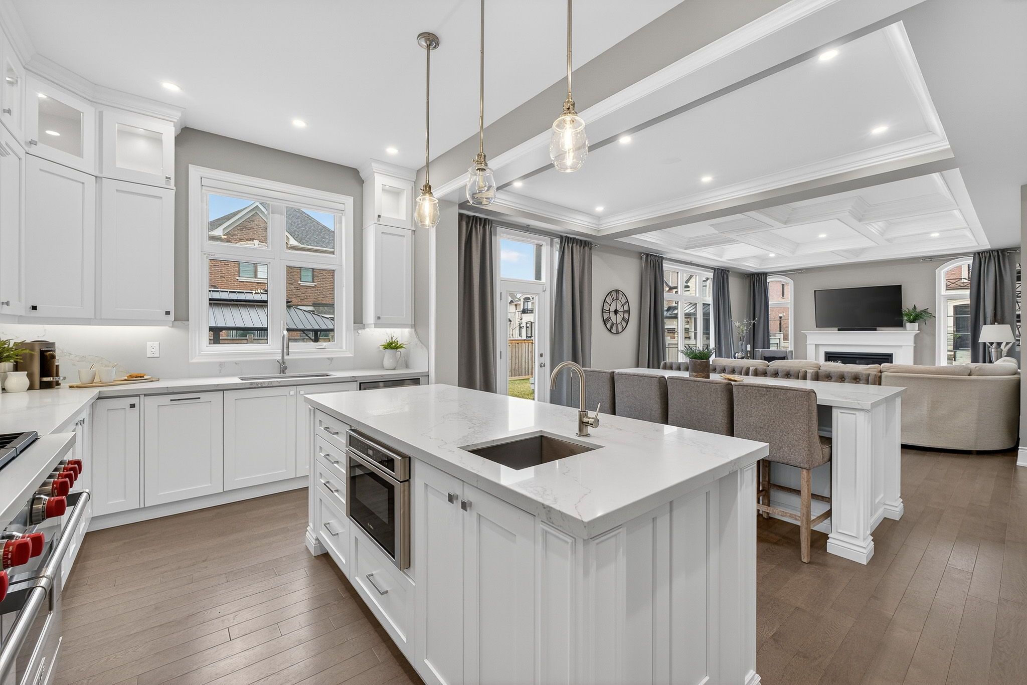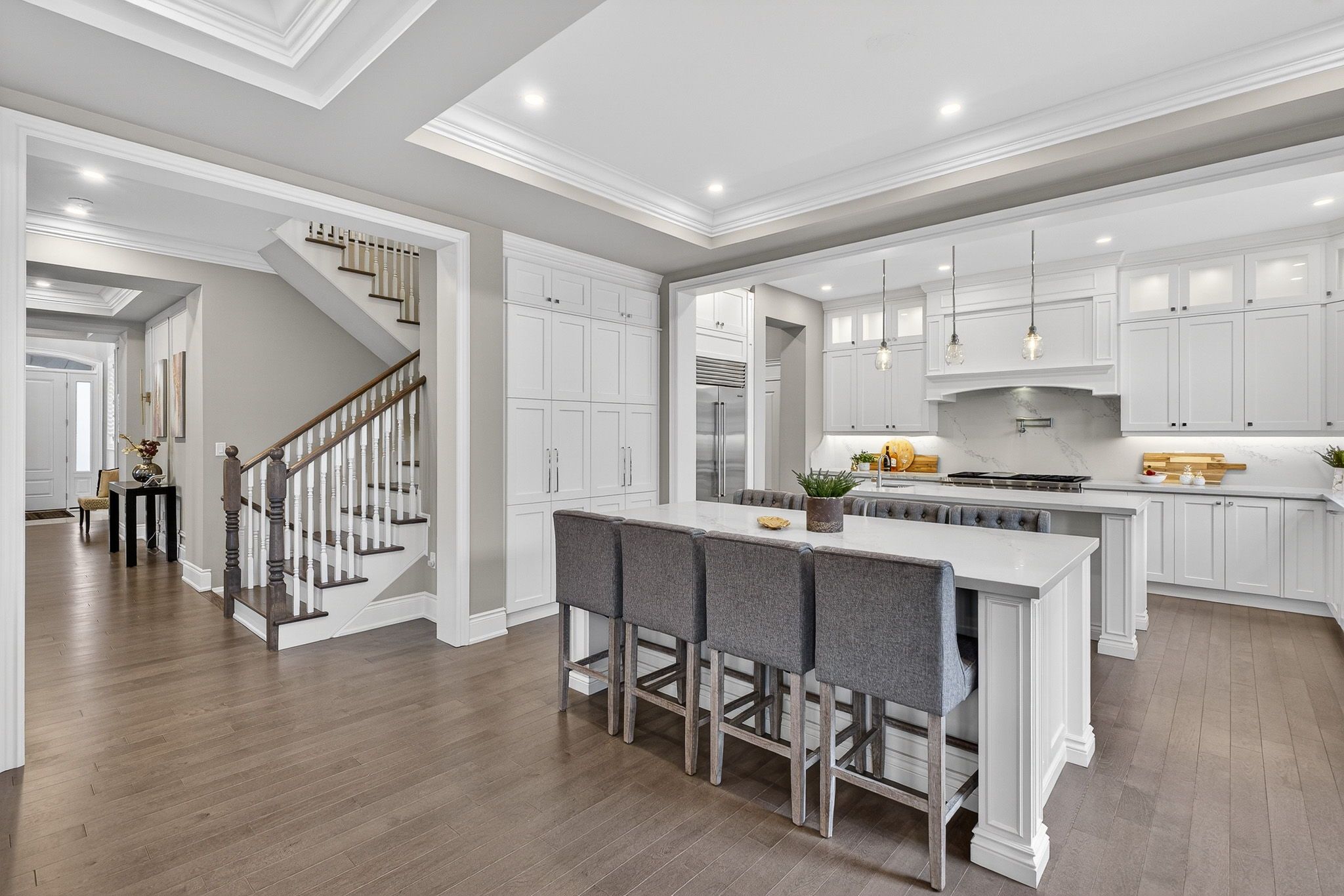 • Gourmet chef's kitchen featuring two oversized islands and high-end appliances.