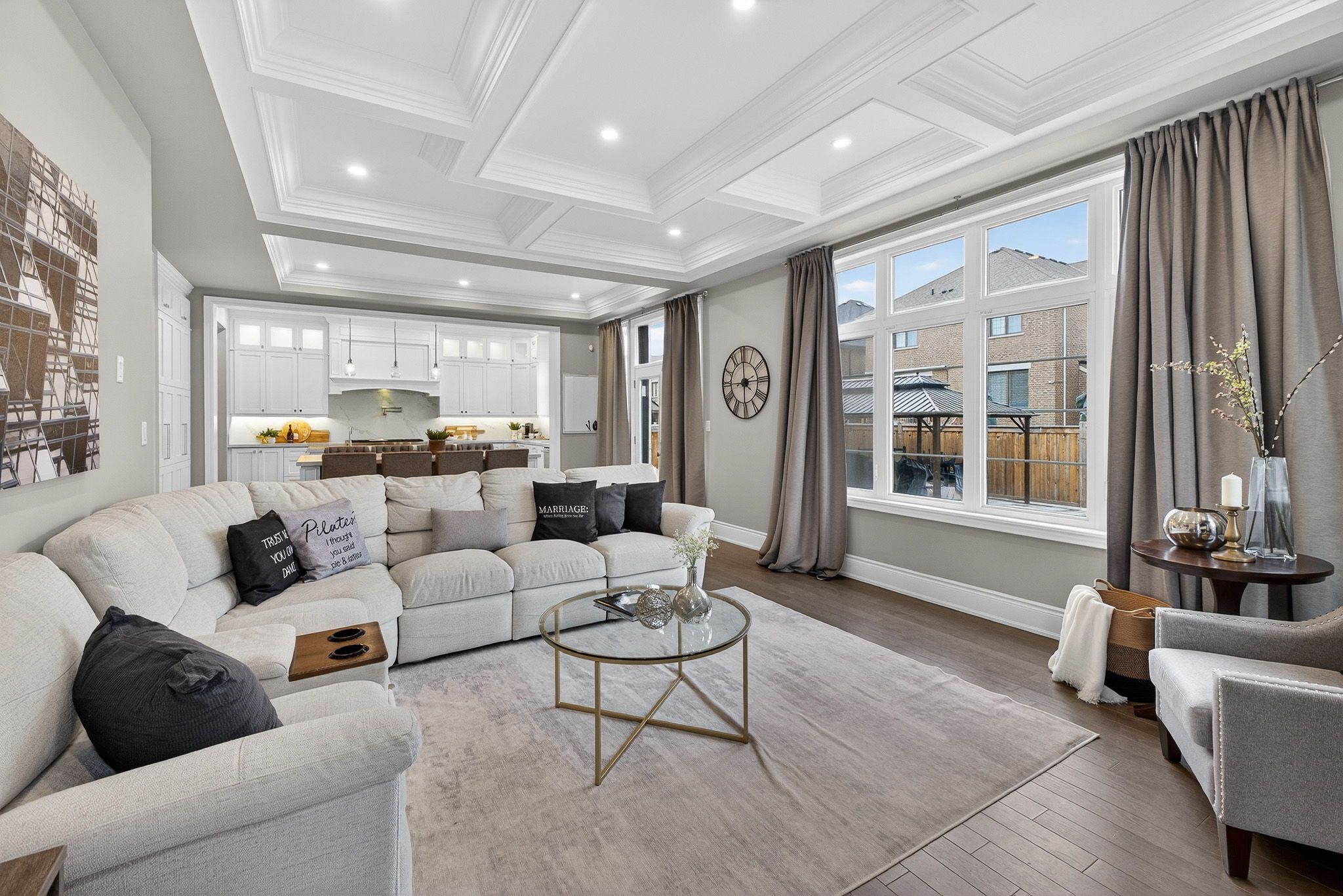 *wow*experience refined luxury living in new prestigious kleinburg!*one of vaughan's most coveted communities*this exquisite 4,203 sq ft residence offers impeccably designed living space featuring 4 spacious bedrooms plus a beautifully appointed loft perfect for a secondary family lounge, media retreat or kids play area*from the moment you arrive this home makes a striking impression with its upgraded stone & stucco exterior, sleek black window frames, professionally landscaped grounds, wrap-around flowerbeds & an interlocked walkway & backyard patio*step inside to a grand cathedral ceiling foyer showcasing a seamless blend of elegance & craftsmanship with custom wall panels & wainscoting, coffered & waffle ceilings, extensive crown mouldings, 7-inch baseboards, extended 8 ft interior doors, designer light fixtures, pot lights & soaring 10 ft ceilings*the gorgeous gourmet chef's kitchen is a true showpiece featuring 2 oversized centre islands, built-in stainless steel appliances, 48-inch wolf gas range with griddle & pot filler, caesarstone quartz countertops & matching backsplash, extended height custom cabinetry, soft close drawers, valance lighting, a custom pantry & a dedicated servery perfect for both everyday living & elevated entertaining*the main floor also boasts a den with built-in bookcase, a private balcony from the living room & a sophisticated wet bar from the dining room with beverage fridge & built-in wine rack*retreat to the luxurious primary suite offering a custom-built dressing room with quartz island & a spa-inspired 5 piece ensuite complete with double sinks, makeup vanity, seamless glass shower, freestanding tub & private water closet*all bedrooms feature convenient access to bathrooms ensuring comfort & privacy for the entire family*the garage is equally impressive with epoxy flooring & custom wall paneling for organized storage*enjoy outdoor living at its finest with a generous 12x20 gazebo set within a beautifully landscaped backyard oasis*
