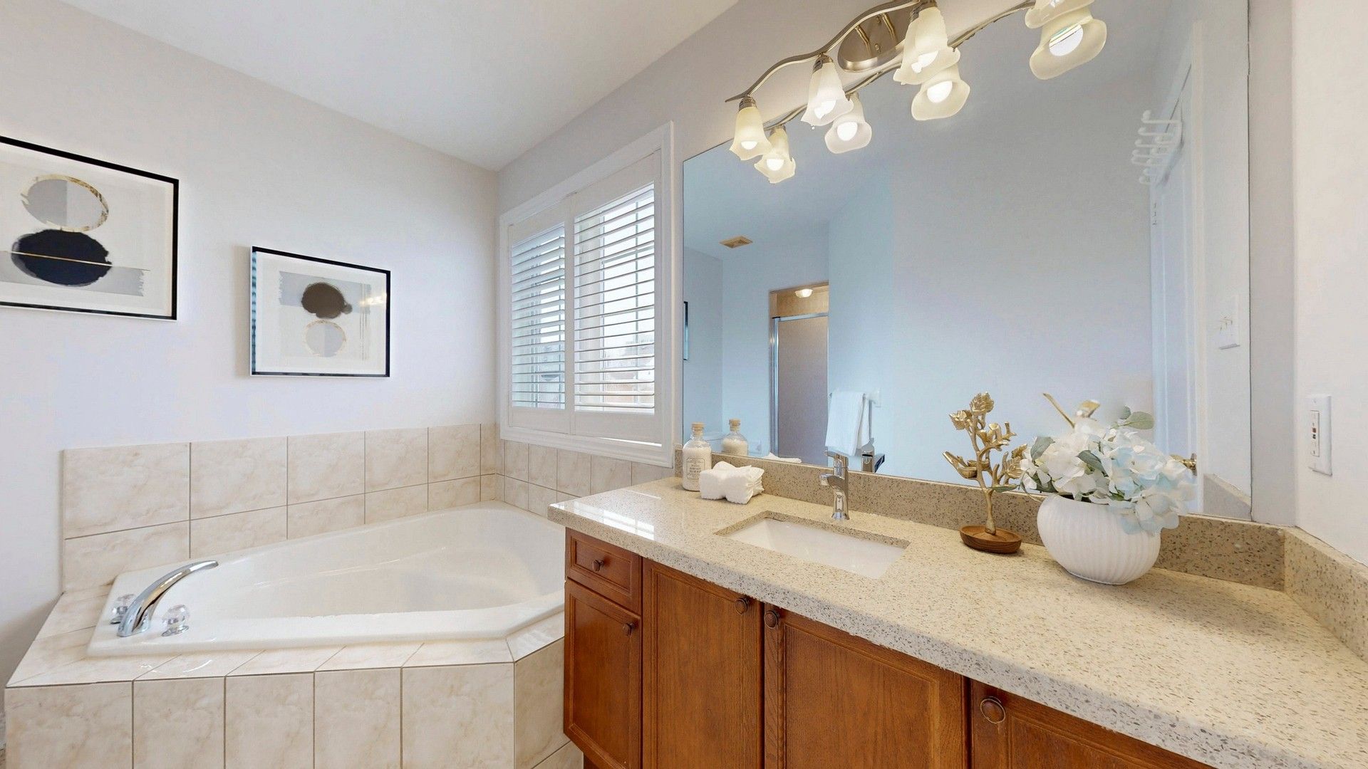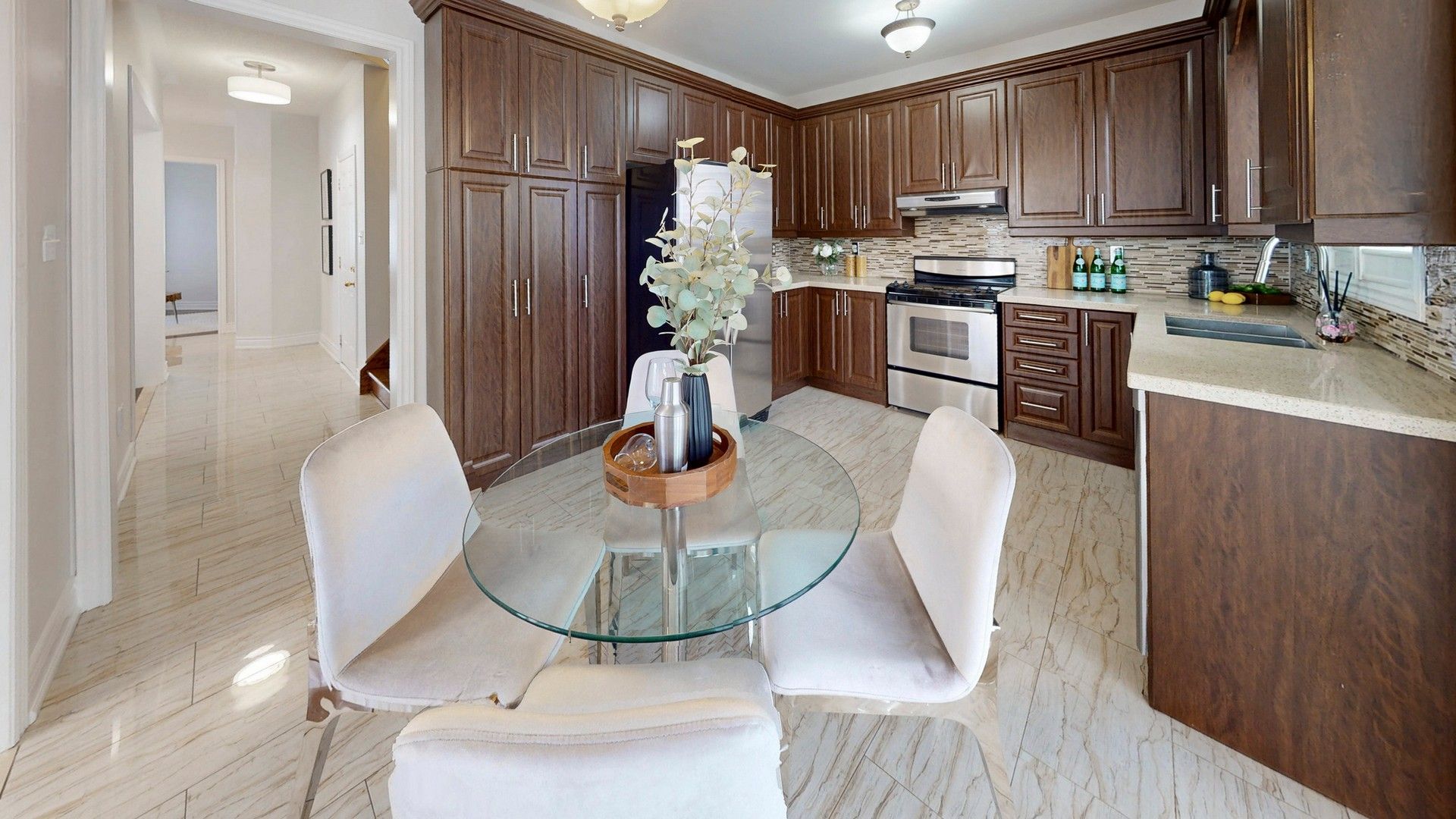 • Updated kitchen featuring quartz countertops and spacious breakfast area.
