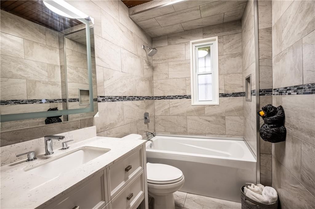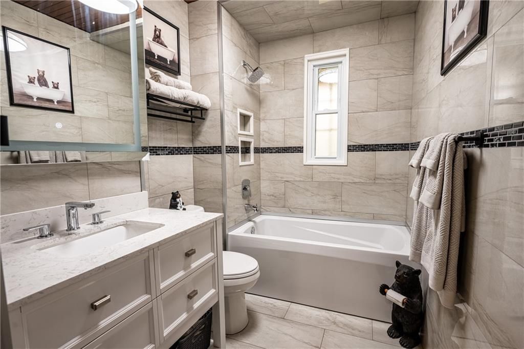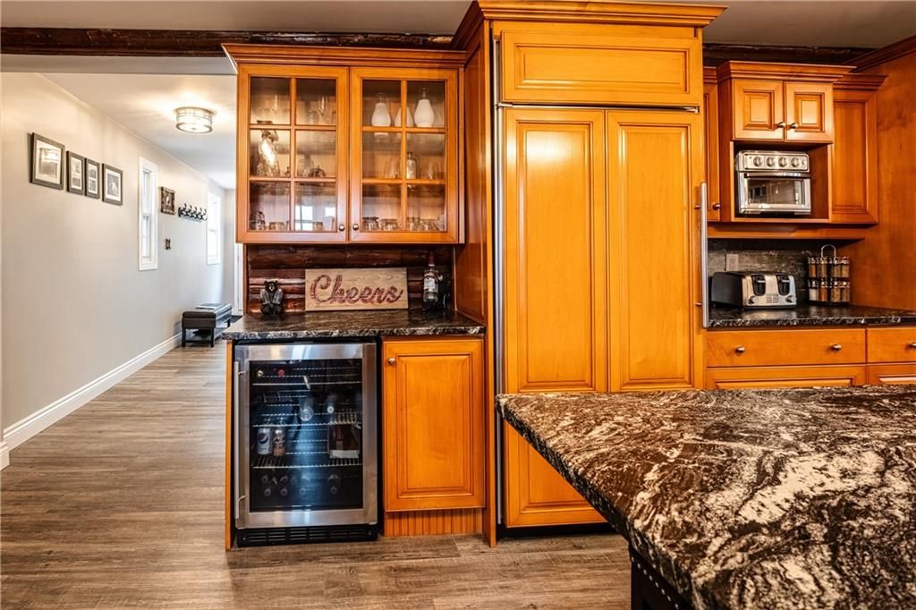 • Renovated interior with heated flooring and a cozy great room with fireplace.