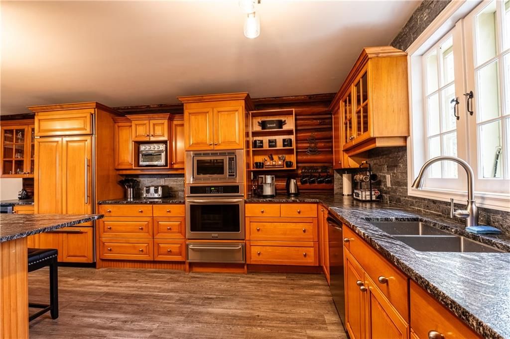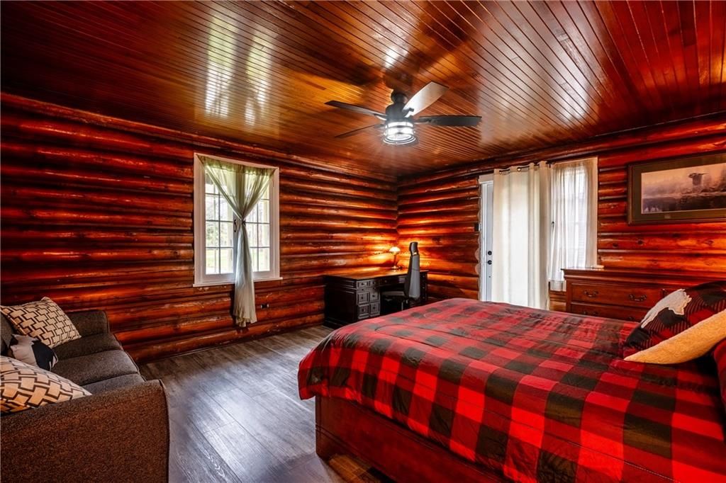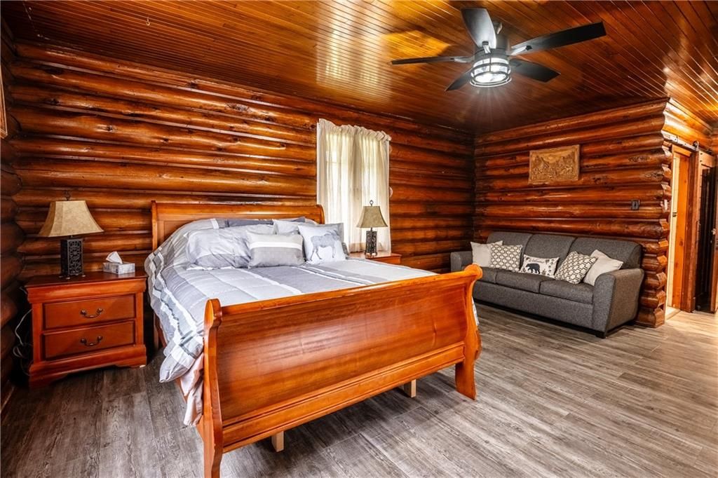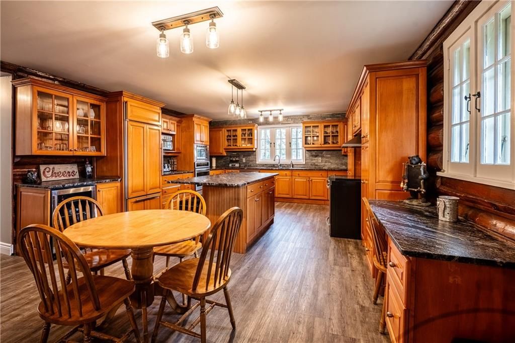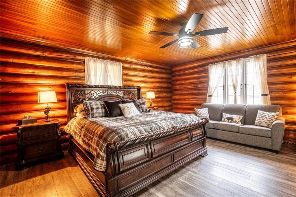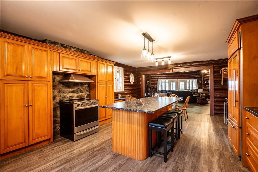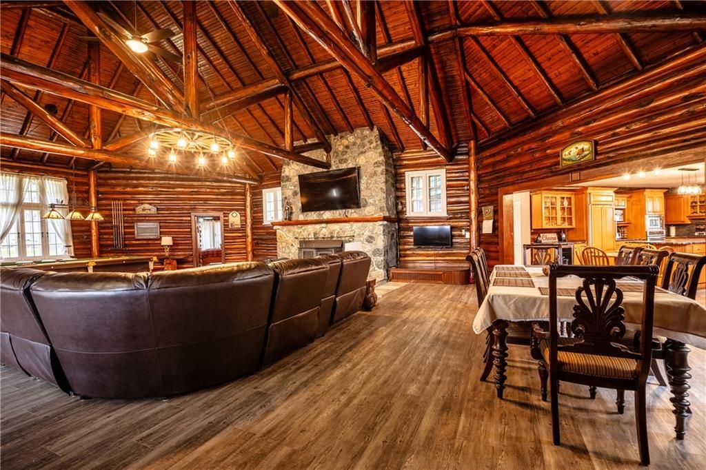 Enchanting 1937 blt log cabin positioned on 1. 5 ac lot surrounded by undisturbed wilderness enjoying magnificent views of larder lake bordering 357ft waterfront - mins to virginiatown - 30 mins to kirkland lake. Excellent fishing, boating, hunting or sledding at your doorstep! This enchanting/extensively renovated home offers 3481sf of interior enjoys heated flooring thru-out main level'21 - ftrs great room incs 12x24 stone wett cert. Fp, new kitchen' 21, 6 huge bedrooms & 4 new bathrooms' 23 & unblemished 1,030sf basement level incs wo to waterfront trail leads to new huge dock system'24. Desired 30x40 htd/ins. Shop ftrs 2-10x12 ins. Ru doors & conc. Floor. Extras - municipal water/sewers, metal roof'12, appliances, maj. Of furnishings, orig. Pool table, spray foam basement walls, updated 200 amp/wiring/plumbing'22, paved drive & more!