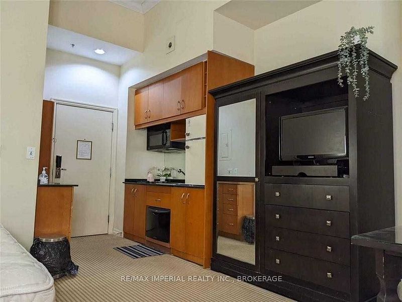 Currently not in the hotel rental pool(factor 1. 1). Bachelor suite, 381 sq ft, in historic one king w building, minutes from the financial district, direct access to subway. Fully furnished, 10-foot ceilings, possibly a bunk bed or a mezzanine level. Luxury with 24 hrs hotel services, facilities including gym, pool, etc. Condo fee includes tv, internet, heat, hydro, water.