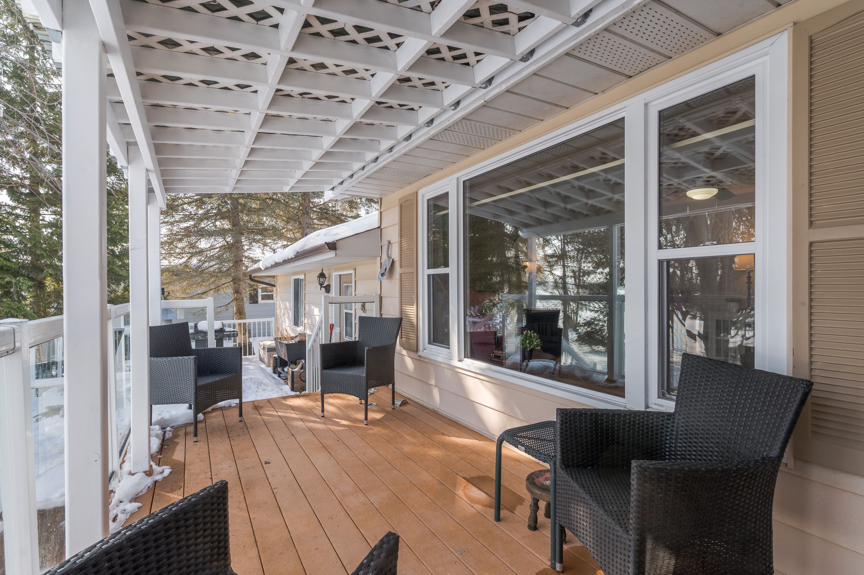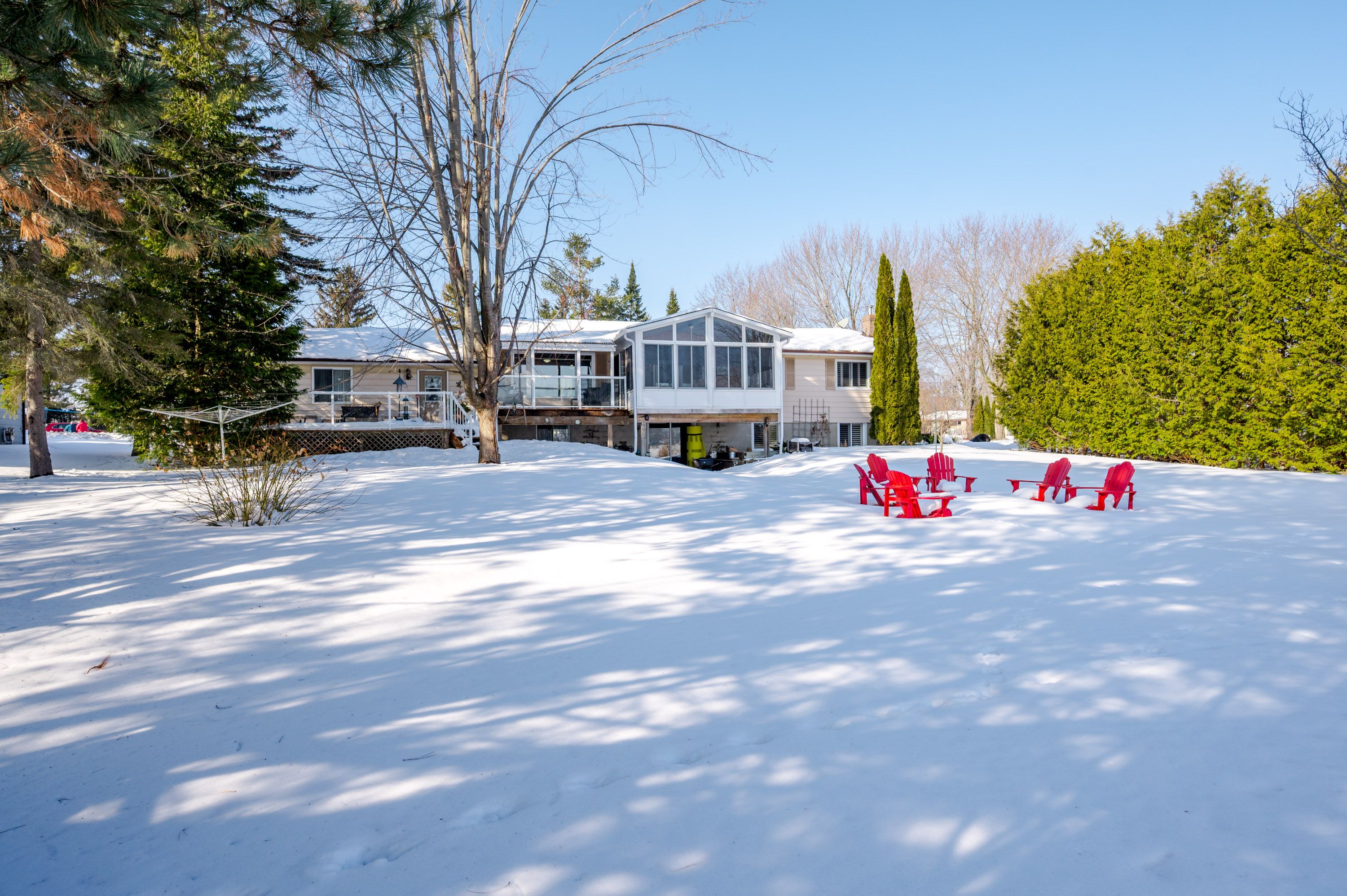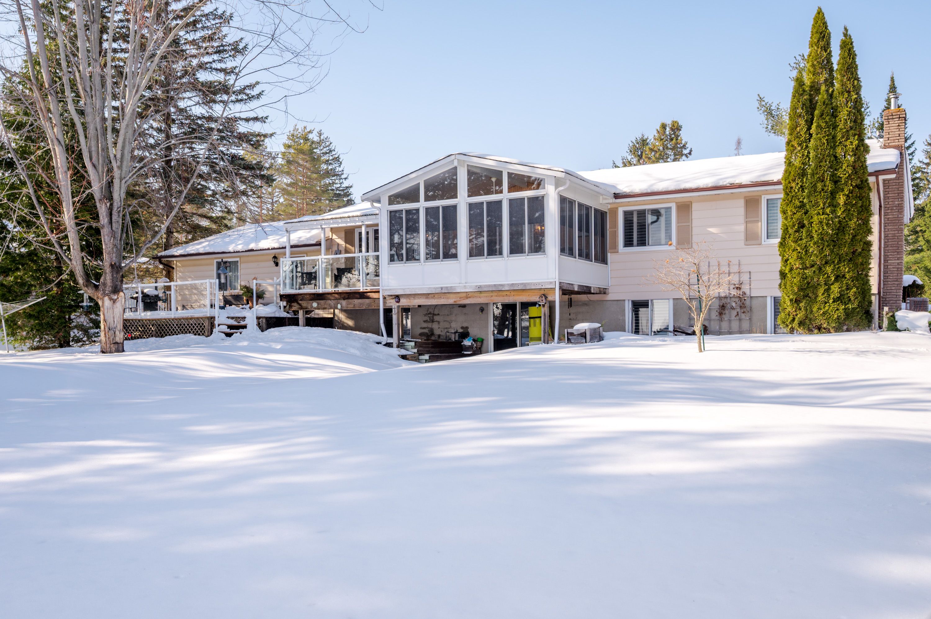 Welcome to a home where everyday life feels like a getaway! Set within a quiet bay on emerald isle and connected to the trent-severn waterway, this property offers the opportunity to live directly on one of the kawarthas' most loved boating systems! Cruise between lakes, watch the sun shimmer across the water & simply enjoy the peace from your own backyard. Step in from the covered front porch to a sunlit foyer leading naturally into the living area & updated kitchen featuring quartz countertops, stainless steel appliances, and sleek finishes. The open living and dining room is designed to capture the lake! Wall-to-wall windows and doors invite the scenery inside and extend out to the 3-season sunroom and covered upper deck, part of a 2-tiered outdoor space ideal for relaxing and entertaining. The main level offers 3 bedrooms including an oversized primary, a beautifully updated 3-piece bath with large tiled shower and double sinks, plus a convenient powder room and direct access to the attached 1. 5-car garage. The walkout lower-level blends indoor comfort with easy outdoor access, featuring oversized windows, newer laminate flooring, and a cozy wood stove. - the perfect place to unwind after skating, snowmobiling, or a day spent on the water. A spacious 4th bedroom overlooking the lake, generous storage/utility space plus the potential for an additional bath. With desirable south-east exposure, the home is filled with soft natural light and warm sun well into the afternoon. Set on just over 0. 5 acre with a gentle slope to the shoreline and 121 ft of waterfront, the calm protected bay is ideal for kayaking, fishing, and relaxing lakeside among deer, swans, and year-round wildlife. Quiet mornings, endless boating, and peaceful evenings under the stars - all just a short drive to peterborough amenities. A true year-round waterfront lifestyle.