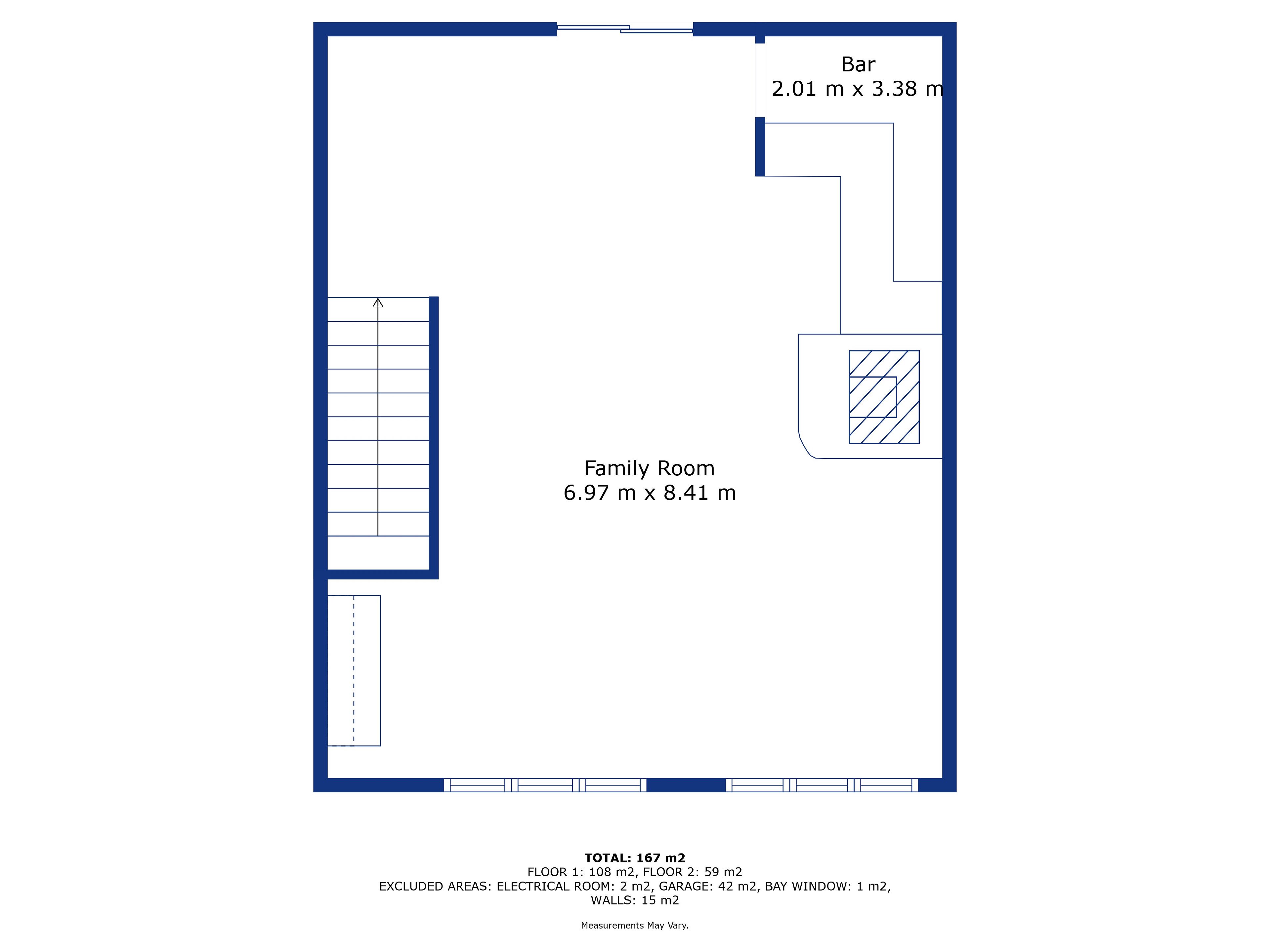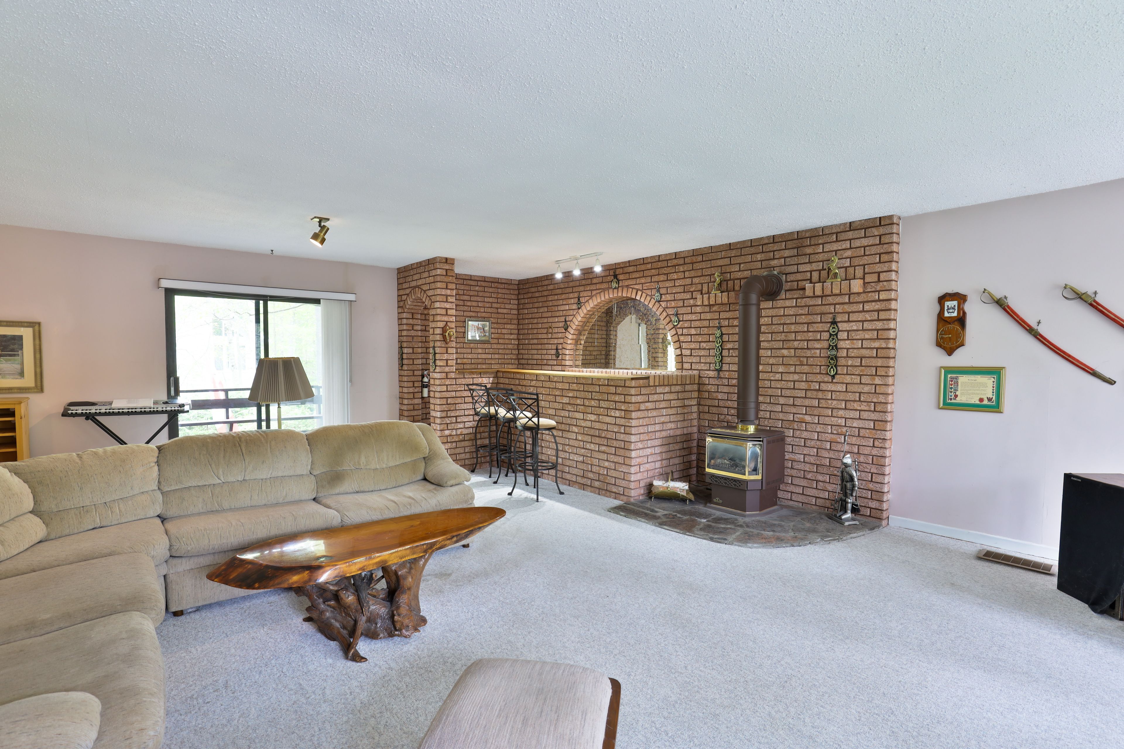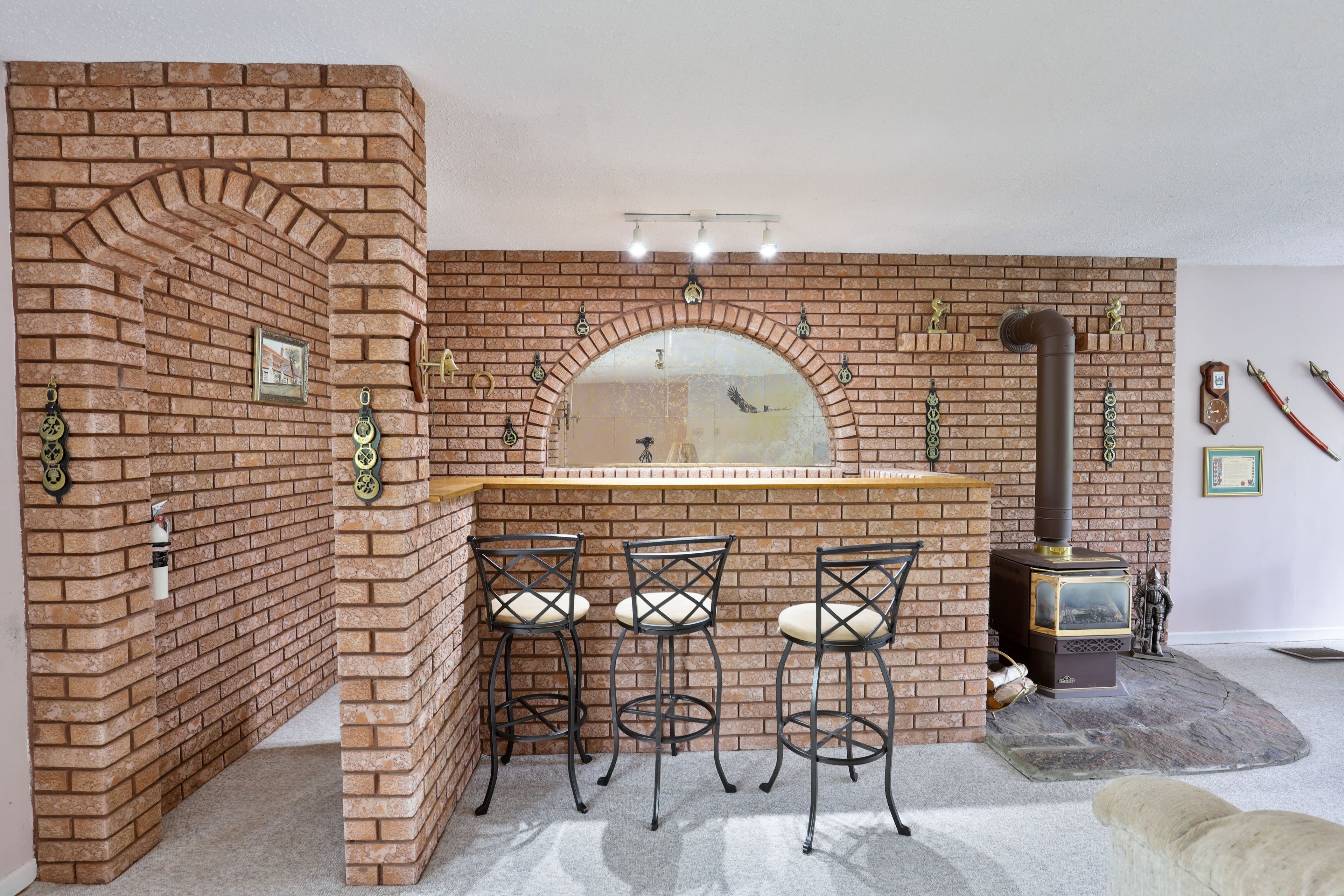 • Oversized family room upstairs with a built-in bar and gas fireplace.