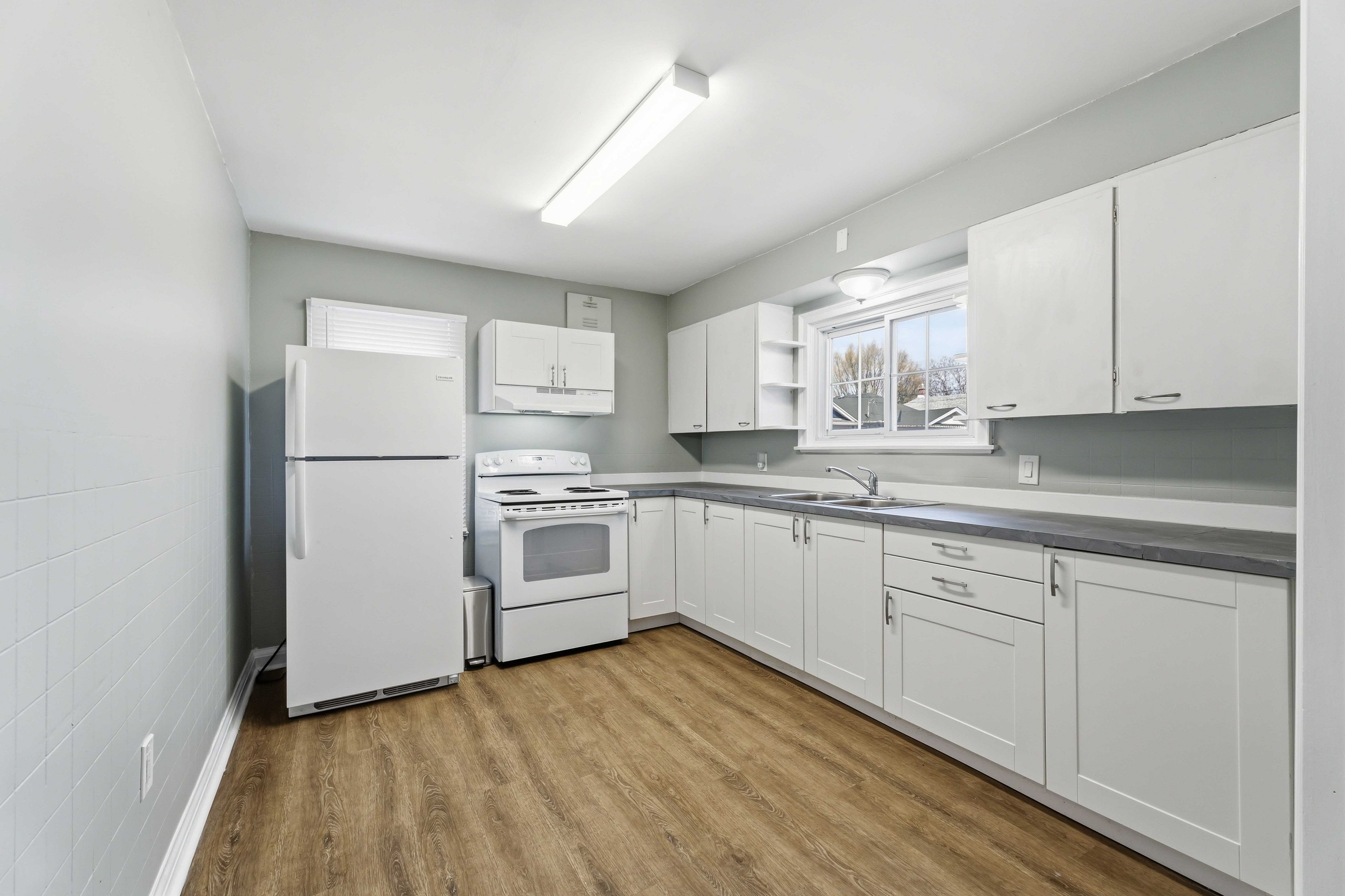 Welcome to this spacious and versatile duplex, ideally located in a highly convenient area close to all amenities! Mthis bright home is filled with natural light and offers exceptional flexibility for multi-generational living, or investment potential. The main level (currently vacant) features a kitchen, access to the backyard, a full 4-piece bath, and potentially four generous bedrooms (or use one as a family room, office, or den). The upper level (currently tenanted) offers three additional bedrooms, (one currently used as a study) another full kitchen, and a 4-piece bath. All appliances are included. There is shared laundry in the basement. Outside, enjoy a fully fenced backyard and a double detached garage. Separate hydro meters add to the property's value and convenience. Updates include new shingles on the house and garage (april 2017). Furnace and hwt (2022) stucco (2025). Walk to fairview mall, with the nearest bus stop just a 5-minute stroll away, plus quick and easy highway access-this is a fantastic opportunity in a central location! Photos of upper unit were taken prior to the current tenancy.
