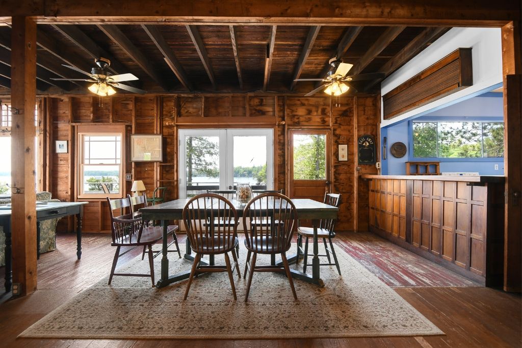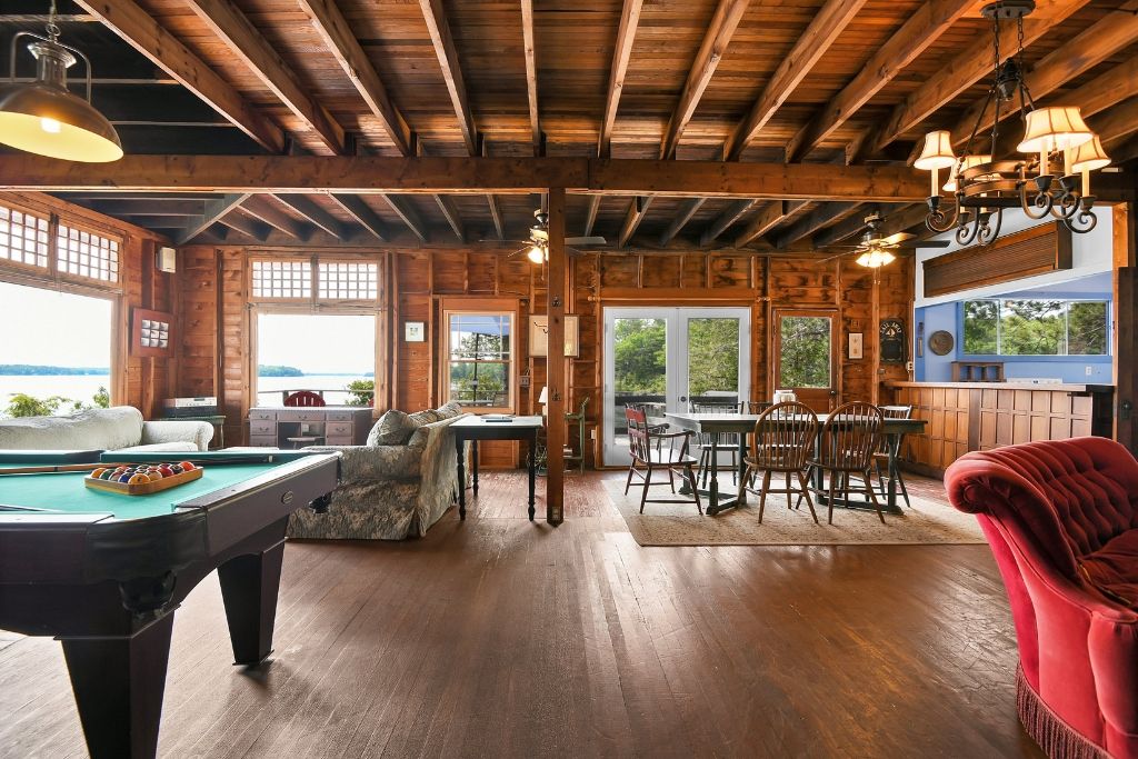 • Historic main lodge, boathouse, and cottages showcase a timeless charm.