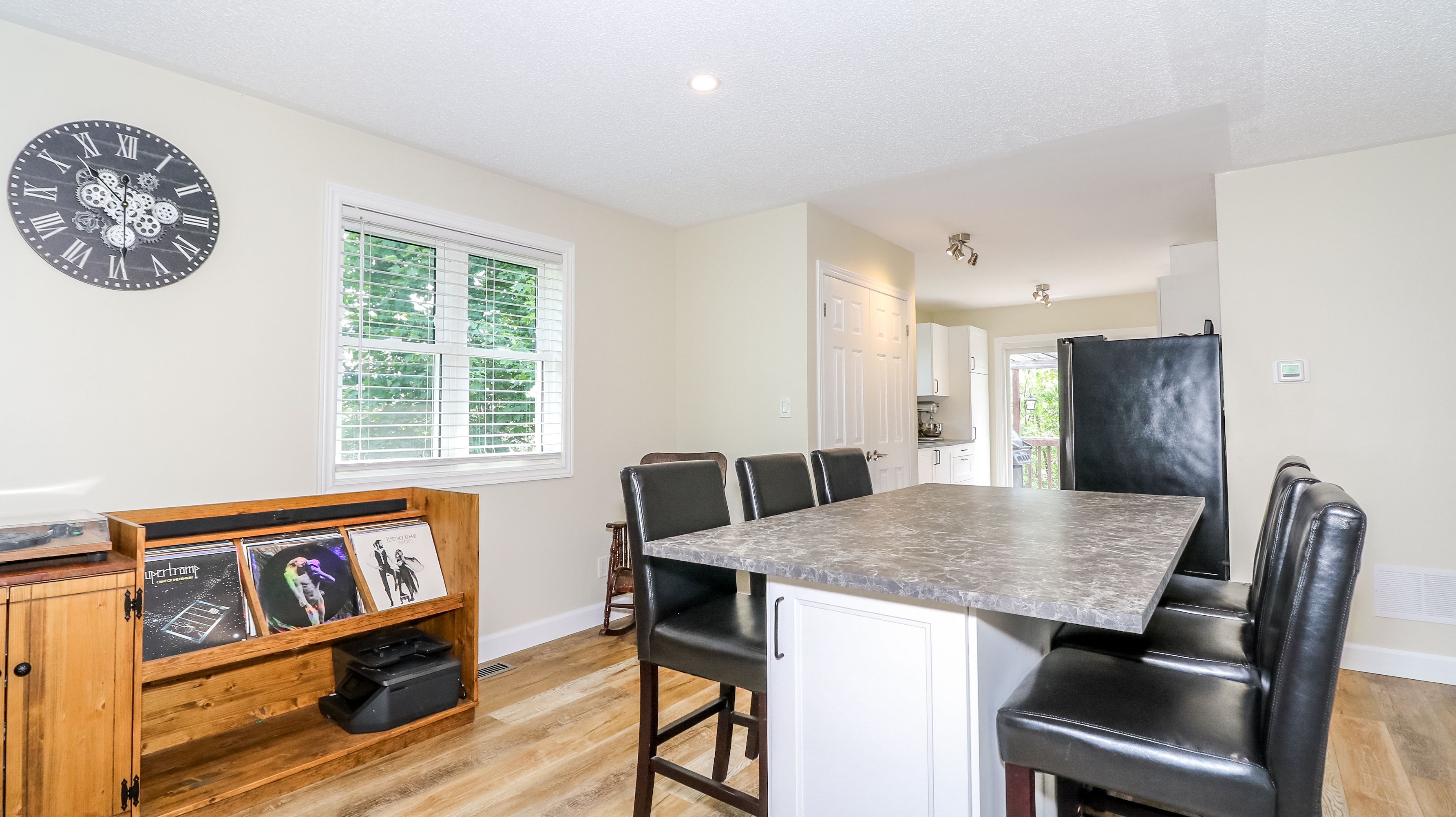 • Main floor features gas fireplace, custom dining area, and a lovely kitchen.