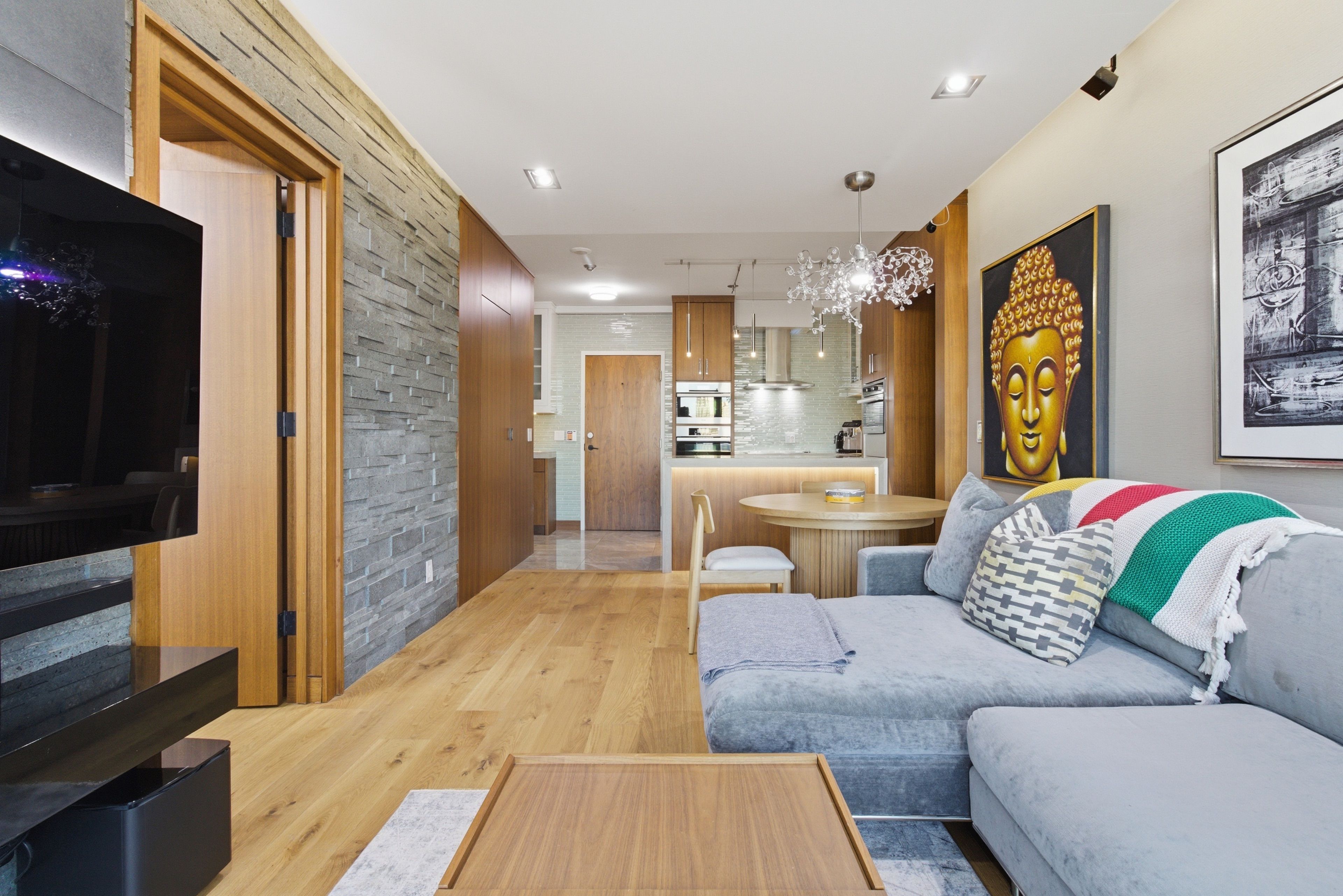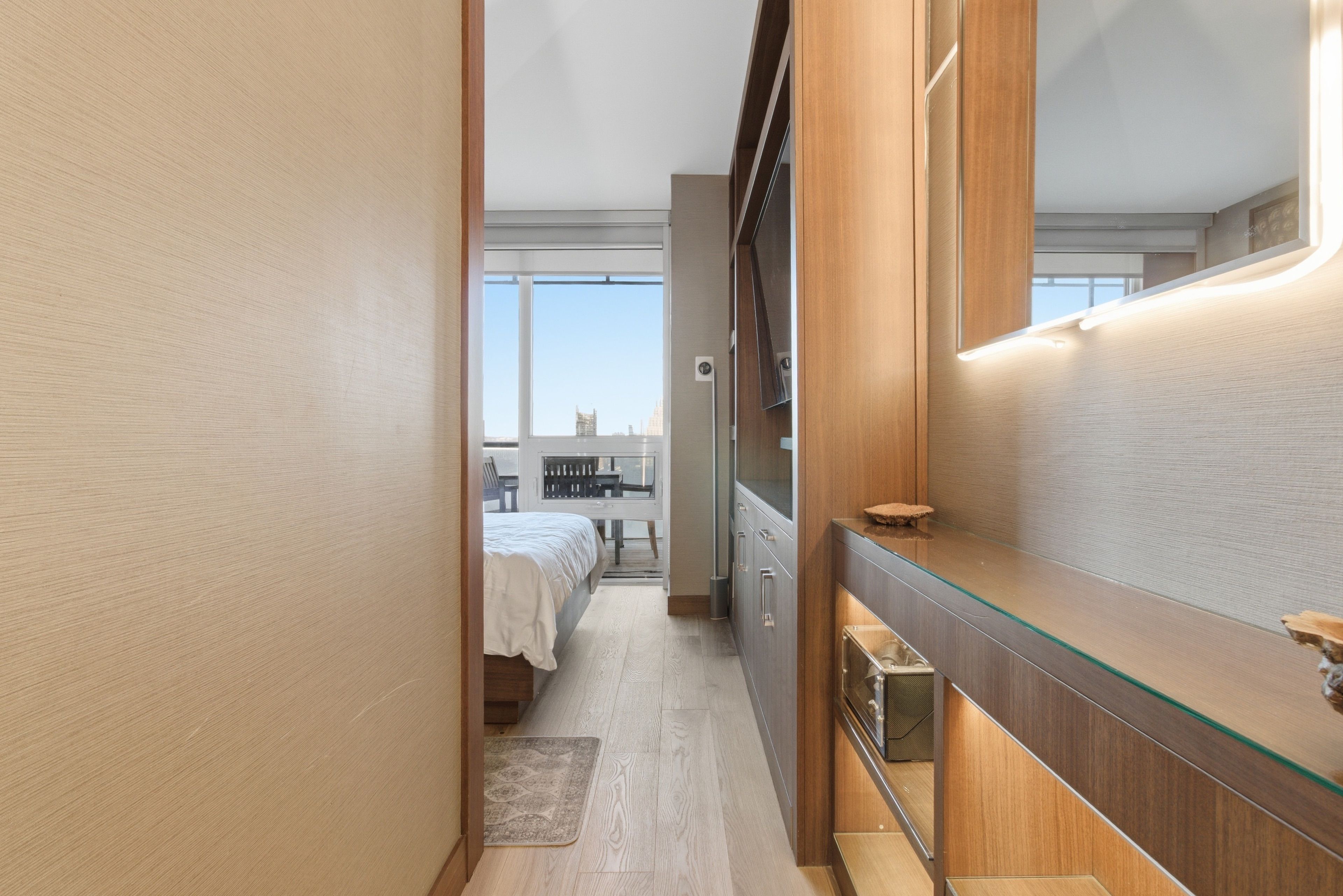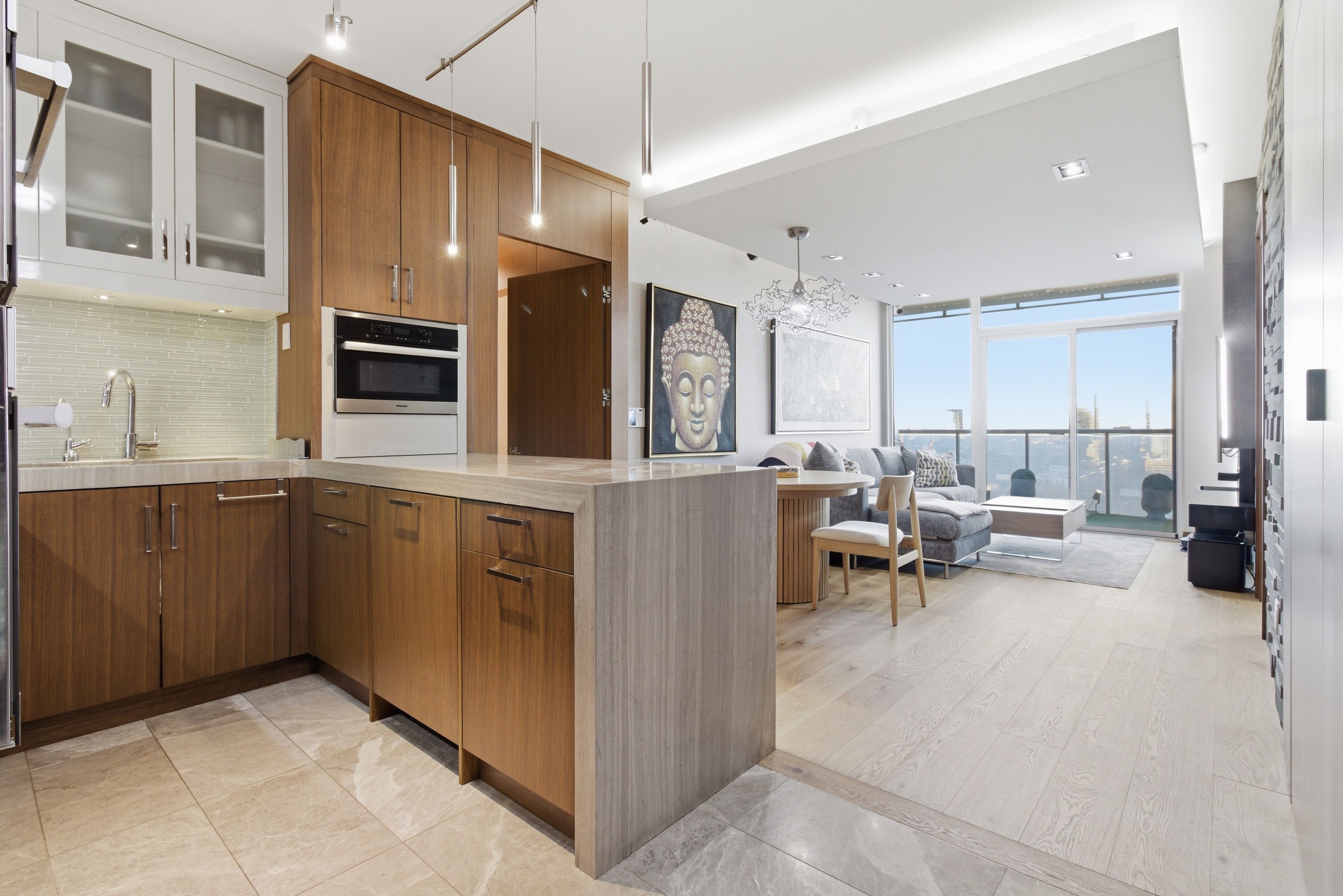 Enjoy the pinnacle of luxury in the heart of downtown toronto; a one-of-a-kind $275k bespoke renovation. Designed by world-renowned paul rafauli, this fully-furnished, turnkey 2 bed / 2 bath split-floor residence offers 885sf of sophisticated interior living with unobstructed south-east views of the skyline, treetops, and lake ontario + 238sf private rooftop terrace! Walnut-paneled walls and doors, custom built-ins, contemporary stone accents, designer lighting, and fully integrated smart home automation create effortless, jet-set-ready elegance. The kitchen is a masterpiece of form and function: granite waterfall island with recessed led lighting, marble floors, custom walnut and high-gloss cabinetry, glass tile backsplash, built-in pantry, premium sub-zero and miele appliances; perfect for curated entertaining or quiet gourmet moments. An lg styler keeps your wardrobe perfectly steamed, sanitized, and pressed at a touch. Sun-drenched living and dining areas with floor-to-ceiling windows frame breathtaking vistas, providing a cinematic backdrop for work, leisure, or hosting guests. The primary retreat is a sanctuary of bespoke luxury with walnut millwork paneling, built-in his and hers closets with organizers, illuminated shelving, designer wallpaper, custom blackout shades, and a 4-piece marble ensuite featuring toto smart toilet and frameless glass shower and tub. The second bedroom, designed as an executive office, includes custom built-ins, abundant storage, and a marble-finished ensuite. Step outside to the gorgeous private terrace with wood-plank flooring, astro-turf, integrated lighting, natural gas bbq line, an extraordinary outdoor stage for sunset cocktails, intimate entertaining, work & reflection above the city. Steps to union station, st lawrence market, financial district, universities, film studios, sugar beach, berczy park, loblaws and amenities galore; this is toronto living at its best! Just bring your suitcase.