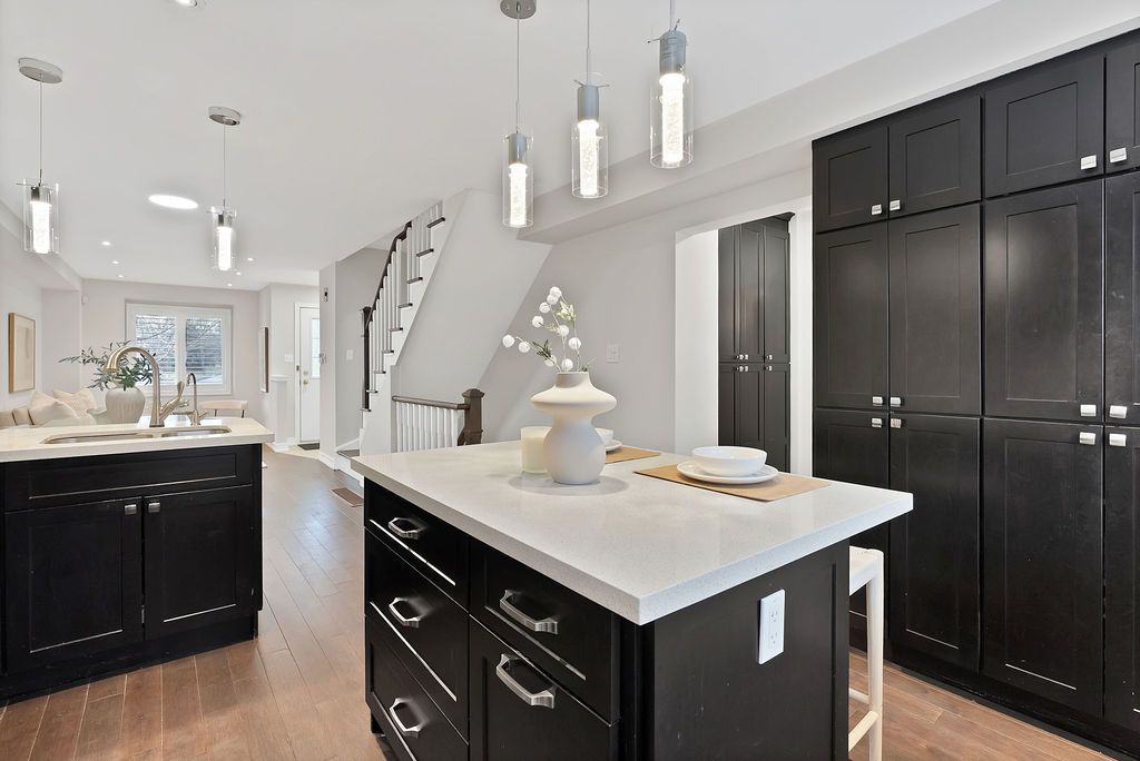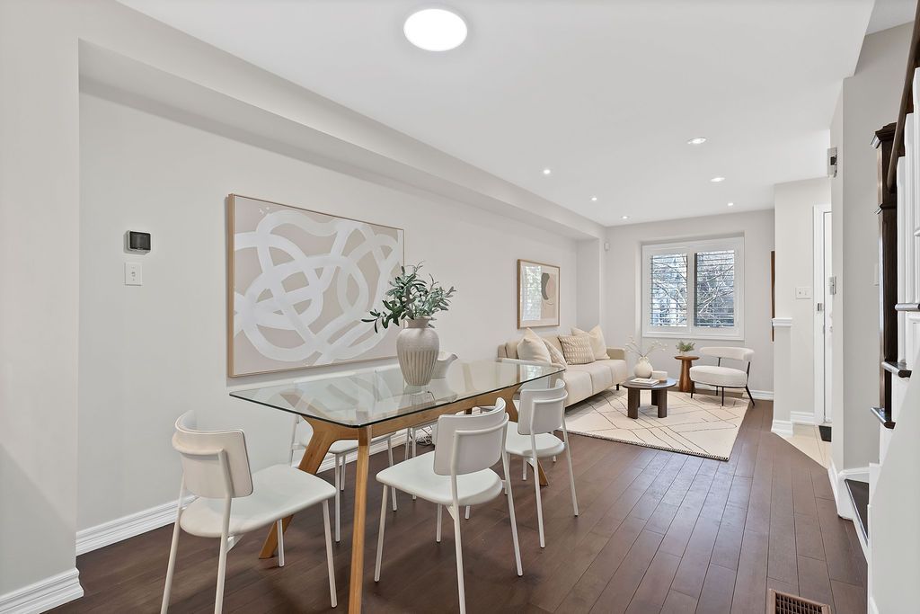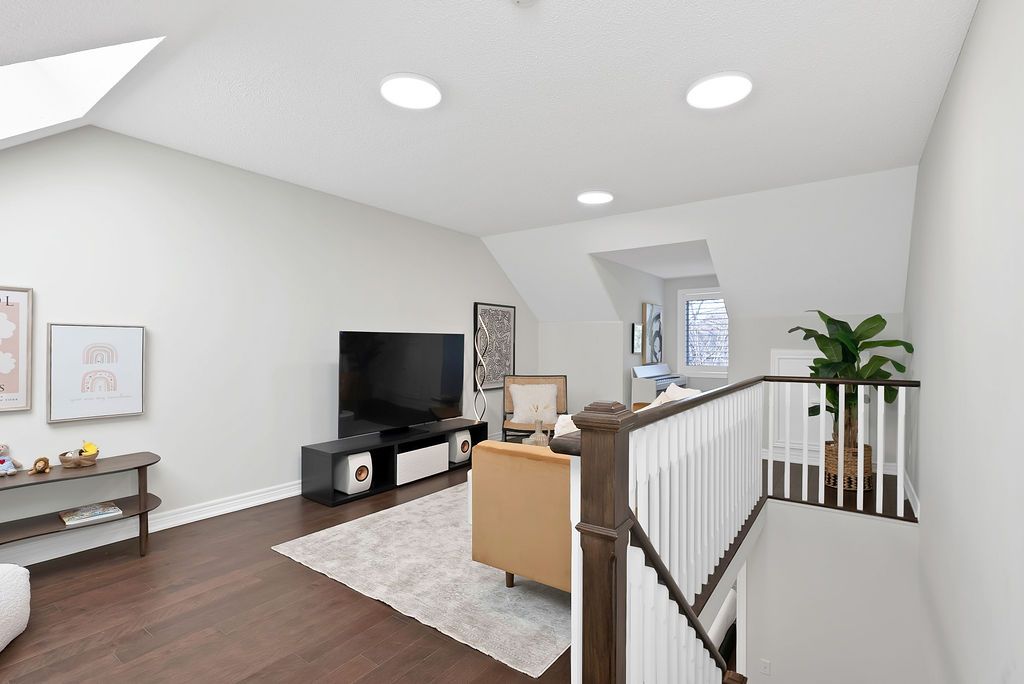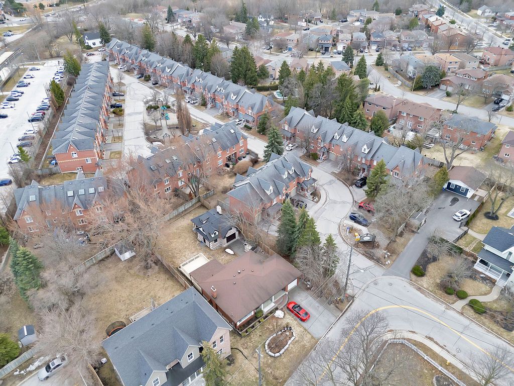 Wow! Rarely offered corner/end-unit townhome tucked away in a quiet enclave in the heart of markham village. Offering approximately 1,600 sq ft plus a finished basement and a rare 3rd-floor loft, this bright and airy home delivers exceptional space, functionality, and value. Thoughtfully upgraded throughout with 9-ft ceilings, hardwood floors, matching hardwood staircase, pot lights, led lighting, and california shutters. The tastefully renovated kitchen features quartz countertops, s/s appls, custom built-in pantry storage, and a centre island perfect for casual dining. The open-concept main floor offers seamless flow for everyday living and entertaining, while the upgraded powder room is privately tucked away. The spacious primary bedroom features two walk-in closets and a serene 4-piece ensuite. The second and third bedrooms are generously sized with large closets and windows and share a 4pc bathroom for added convenience. The rare loft level offers incredible flexibility with vaulted ceilings, double skylights, and open-concept space-ideal as a family room, home office, media lounge, or potential 4th bedroom. The full finished basement adds even more living space and includes a 3-piece bathroom rough-in. Extra-long driveway fits 2 cars + 1 in the garage. Enjoy one of the largest backyards in the enclave plus access to a private residents-only playground. This is the one you've been looking for. Hassle free living at its best with property management covering snow removal, lawn care, roof, windows, fences, exterior doors, garage door, and more. Unbeatable location just steps to markham main street, cafes, restaurants, markham go station, and top-rated schools including franklin p. S. (french immersion) and markham district h. S.