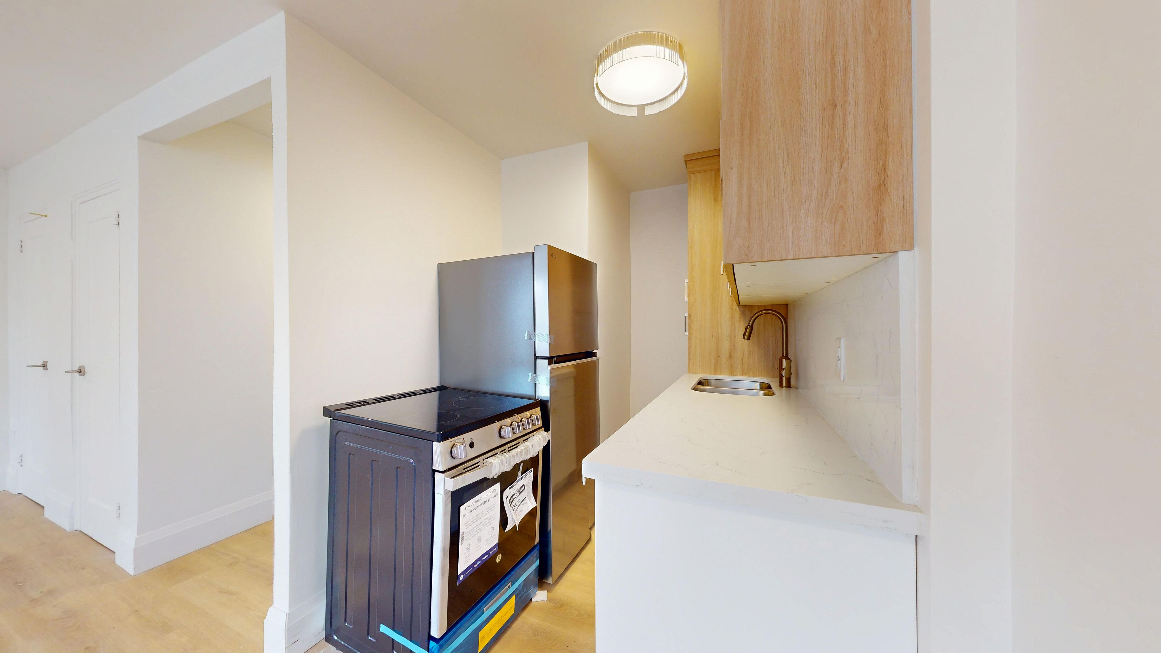 • Bright north-facing bachelor unit with large windows and stylish kitchen.