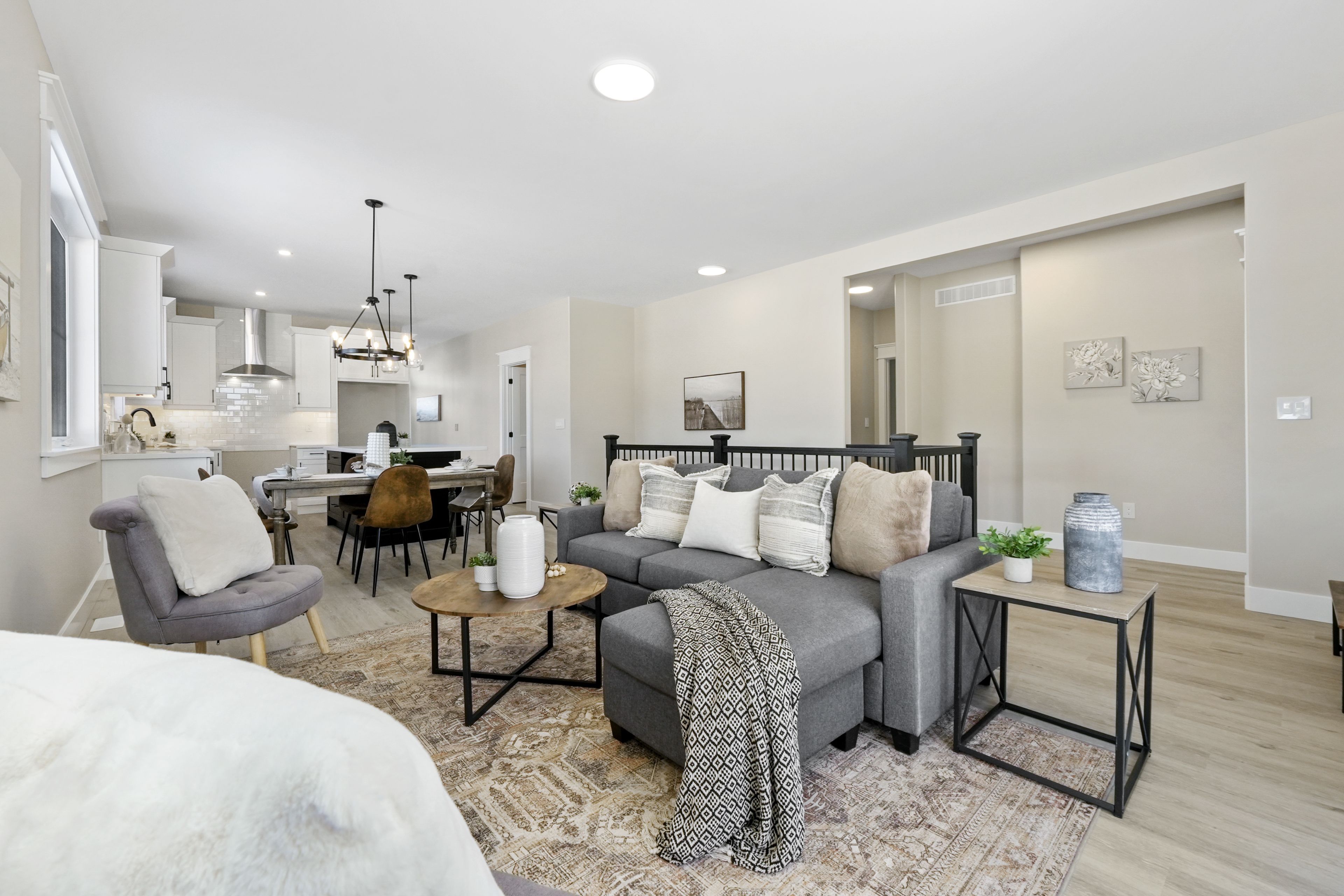 • Bright kitchen and living area flow seamlessly to a back deck.