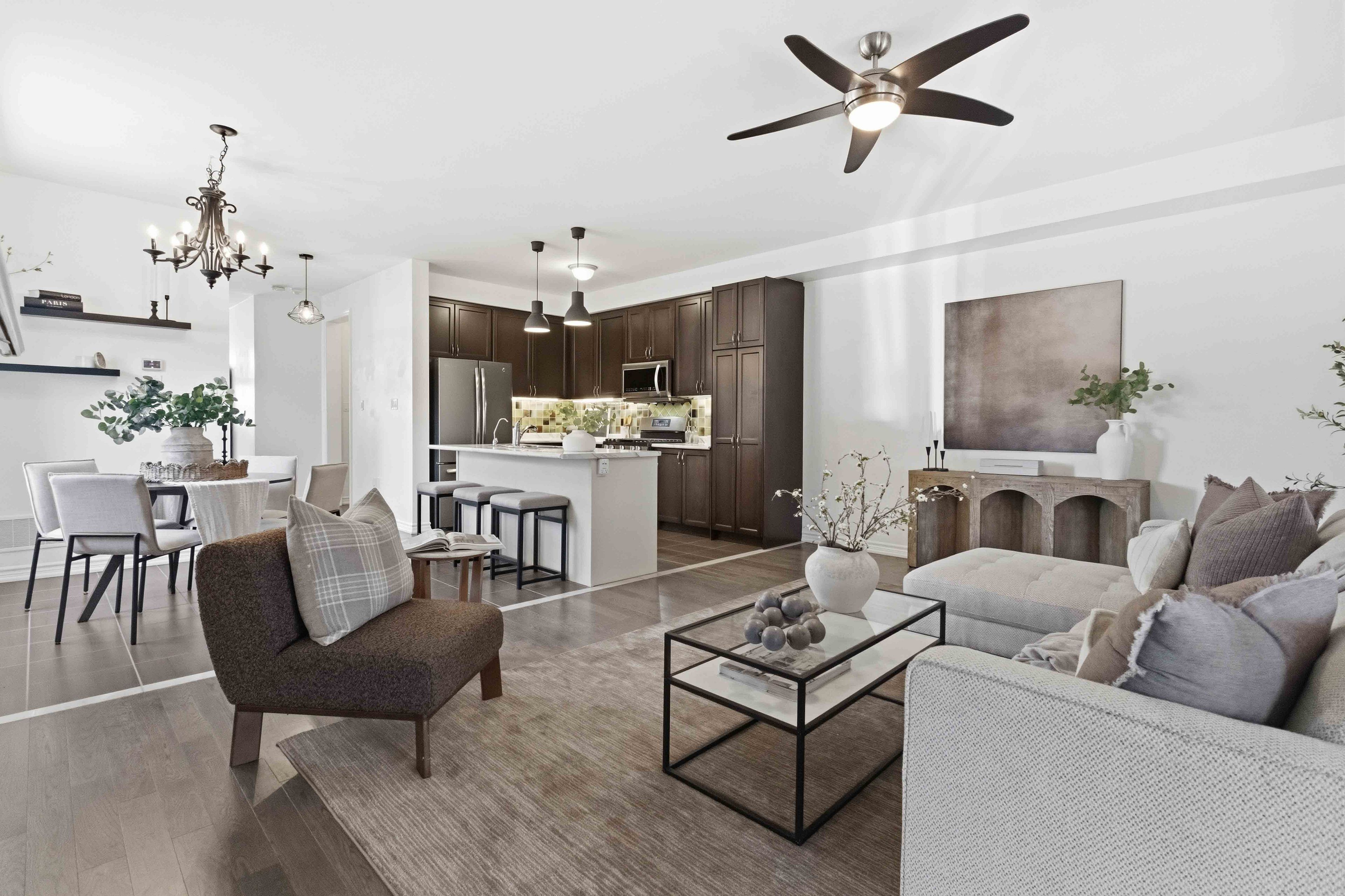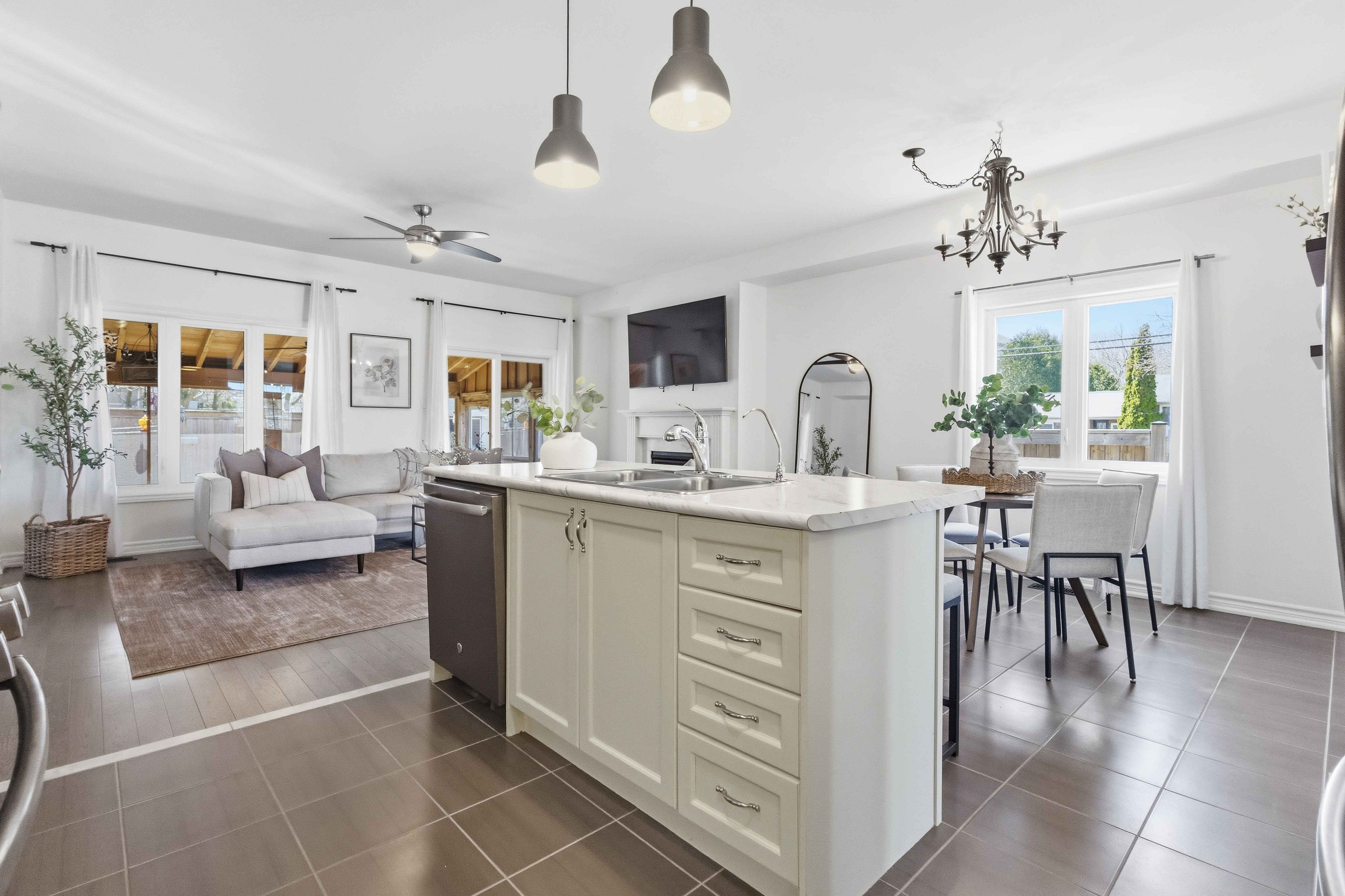 • Open concept main floor with chef's kitchen and gas fireplace.