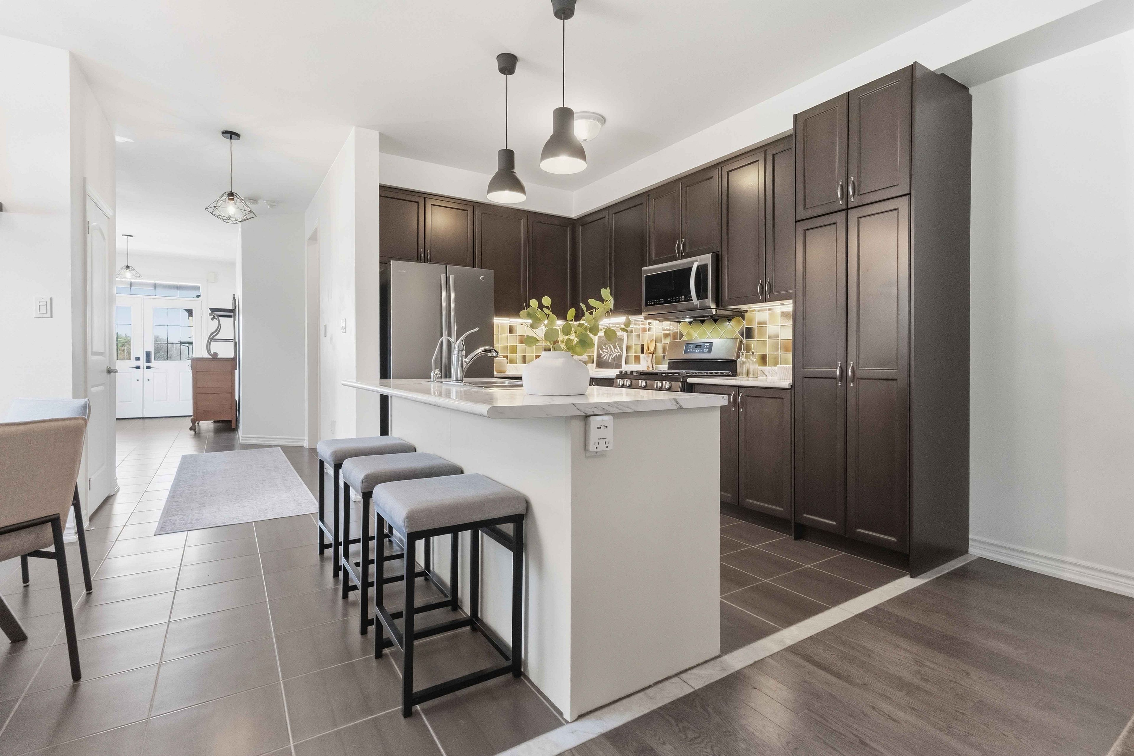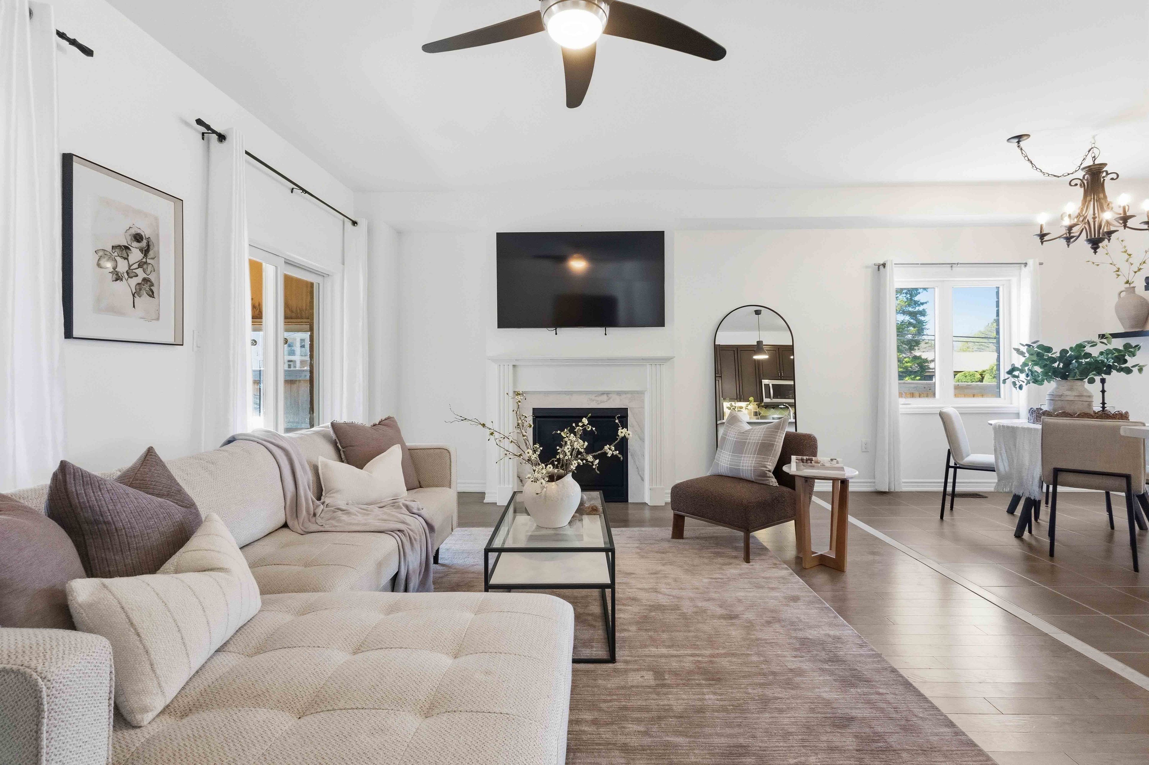 Visit realtor website for additional information. Spacious end unit, brick & stone freehold townhome (3 bedroom & 4bath) with many upgrades on a quiet cul-de-sac in desired uxbridge, the trail capital of canada. Don't miss this lovely 10 year old home(1,857 sq ft plus finished basement) in the north end of uxbridge. Located close to schools, parks, shopping, restaurants and rec facilities. Easy access to durham transit, hwy 407 and lincolnville go for commuters. Enter by way of armour stone front steps and a covered front porch with built-in screens. Spacious foyer with ceramic tile floor. Open concept main floor with chef's kitchen, dining area and living room with gas fireplace and hardwood floor. The kitchen boasts centre island, breakfast bar, tile backsplash, pantry, under cabinet lighting, gas stove and stainless-steel appliances. Walkout from the living room to the covered and screened sunroom/patio (with interlock floor & armour stone steps), which is perfect for relaxing or entertaining. Also a powder room on the main level and a mudroom with extra storage at entrance from garage to house. A hardwood staircase leads to the 2nd level. 3 spacious bedrooms here along with the laundry room and a 5 pc family bath. The primary bedroom has a 5 pc ensuite bath, large windows and a double closet. Bedroom 3 has a vaulted ceiling. The finished lower level increases your living space even more. Large rec room with pot lights and broadloom. Part of rec room previously used as a hair salon (can be removed). Also a 3 pc bath with glass shower and in floor heating on this level. Other highlights: central air conditioning and central vac; hrv air exchange; single car attached garage; widened driveway with interlock; parking for 4+ vehicles in driveway; sunroom/patio is wired for a hot tub; nicely landscaped with mature trees; storage shed in backyard. Move in ready!