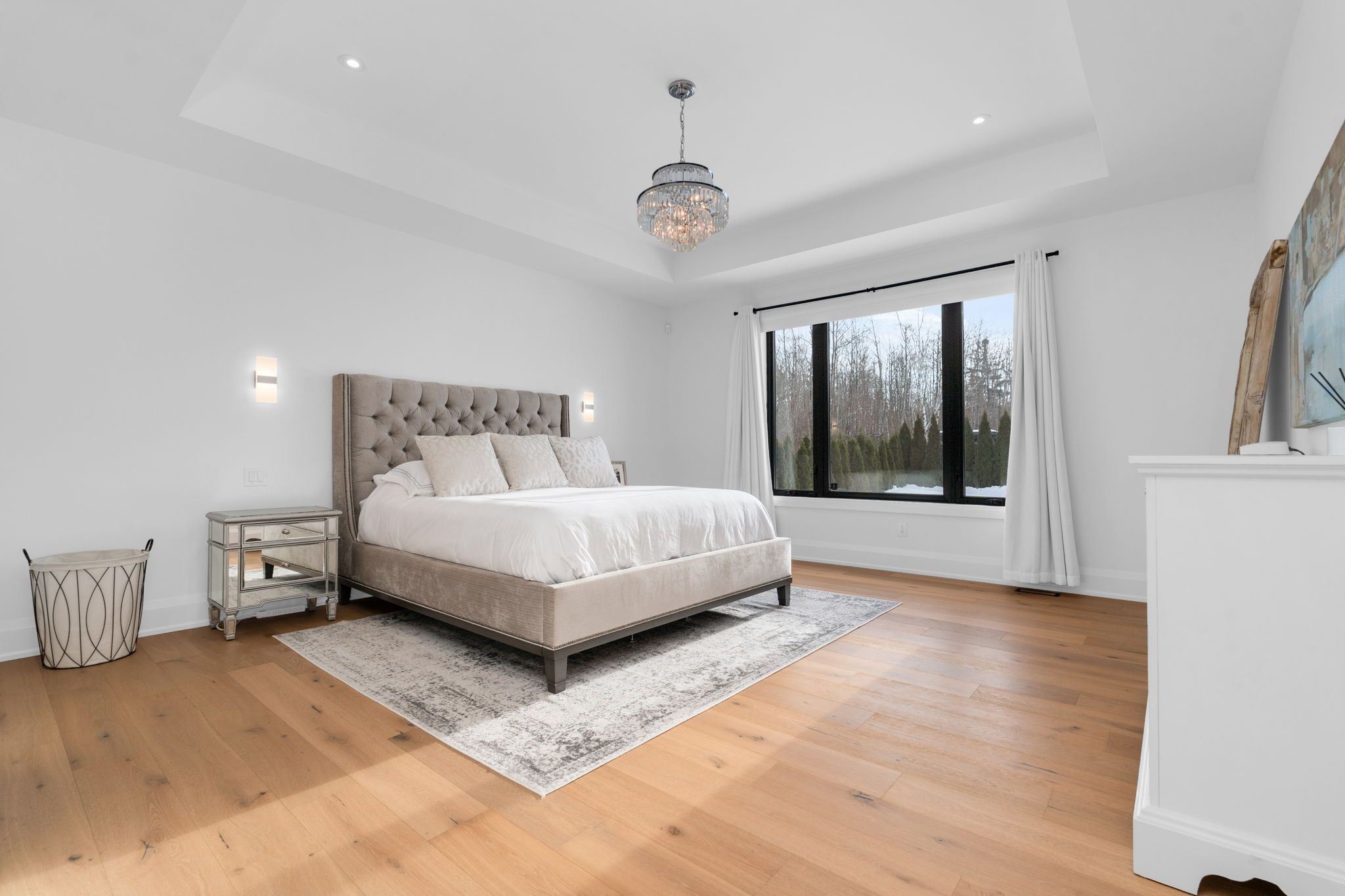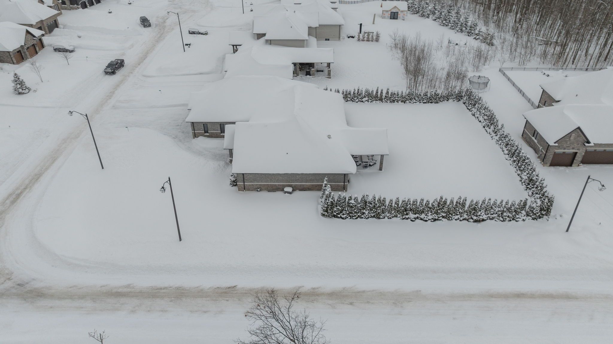 Presenting luxury, lifestyle, privacy, and an exquisite location-all embodied in this stunning custom executive residence in springwater's prestigious, family centric cameron estates. Set on a premium half acre corner lot, this exceptional bungalow offers 5,700+ sq. Ft. Of finished living space and an oversized 133'x187' private backyard framed by mature cedars and one of the community's largest reclaimed greenspaces. With over $550k in recent updates/upgrades, this home delivers an elevated living experience inside & out. The main level showcases a designer chef's kitchen with expansive prep space, oversized island with integrated beverage centre, premium jenn air 6 burner + griddle range, dual ovens, dacor fridge/freezer, and walk in pantry with prep sink. Great room impresses with a striking 63" floor to ceiling gas fireplace, vaulted ceilings, and wall to wall views of the private rear yard. Additional main floor features include a dedicated home office, guest 2 pc bath, spacious laundry/mudroom, and three generous bedrooms-each with its own ensuite and walk in closet. The full, finished lower level doubles the living space and continues the home's refined neutral palette. Purpose built for relaxation and entertainment, this level features a spa inspired steam room, home gym with heated padded flooring, guest suite, custom four queen designer bunk room, rec room with linear fireplace and built ins, games room, home bar, office, soundproof gaming room, and additional 2 pc bath. Energy efficient water heated flooring runs throughout. Smart home conveniences include whole home audio (14 zones, 7 sonos amps, 37 speakers), remote electric blinds, 7 camera security system, wall mounted tvs, and bell fibre internet. Car enthusiasts will appreciate the oversized 1,600+ sqft heated 5 vehicle garage, complete with epoxy floors, storage, ev ready wiring, built in audio/tv, pressure washer system, direct basement access with mud room, and rear garage door to the backyard.