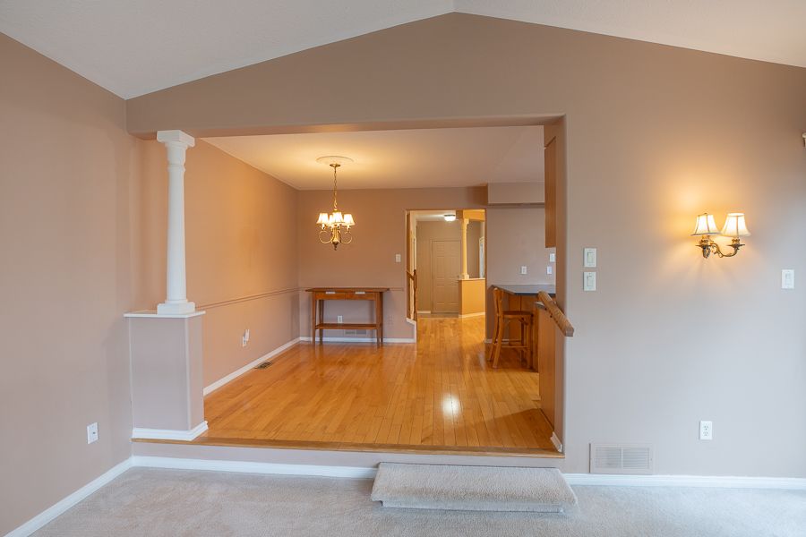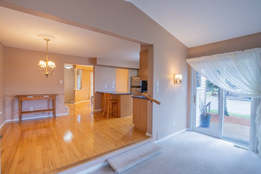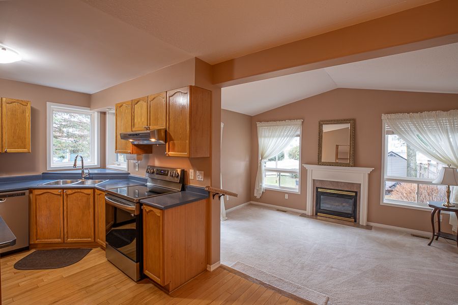 • Main floor features a step-down living room with a cozy gas fireplace.