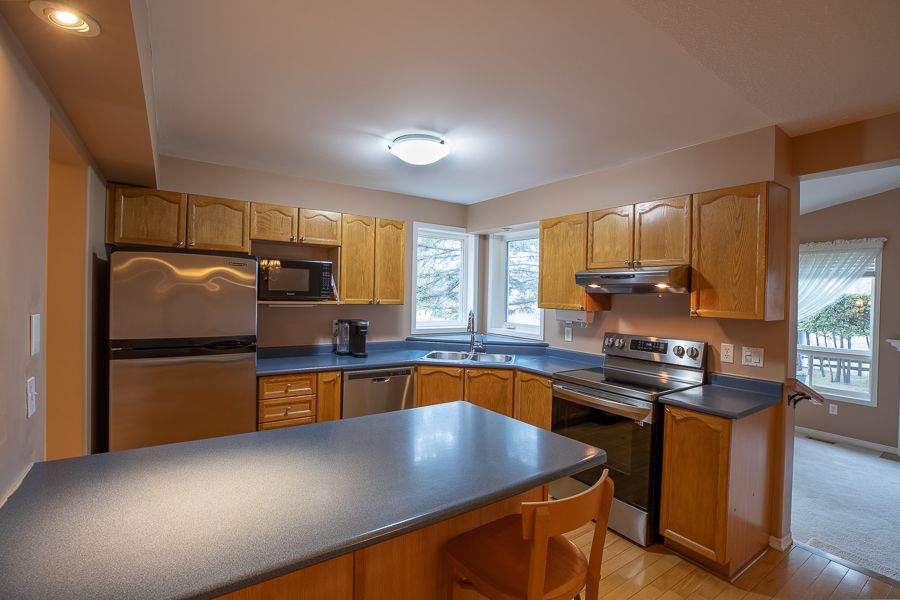 • Bright kitchen with stainless steel appliances and plenty of cupboard space.
