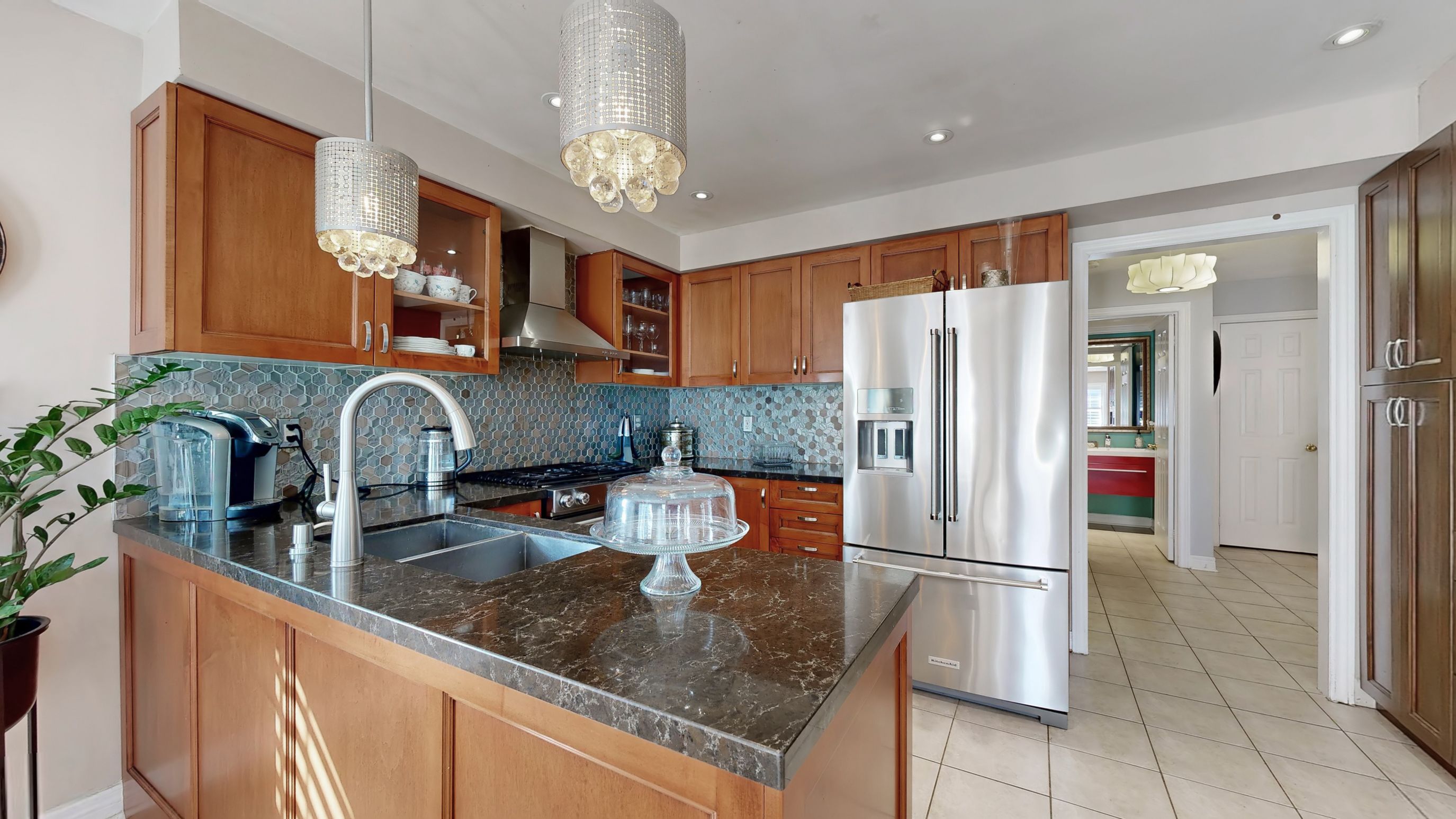 • Updated eat-in kitchen with modern finishes and premium appliances.