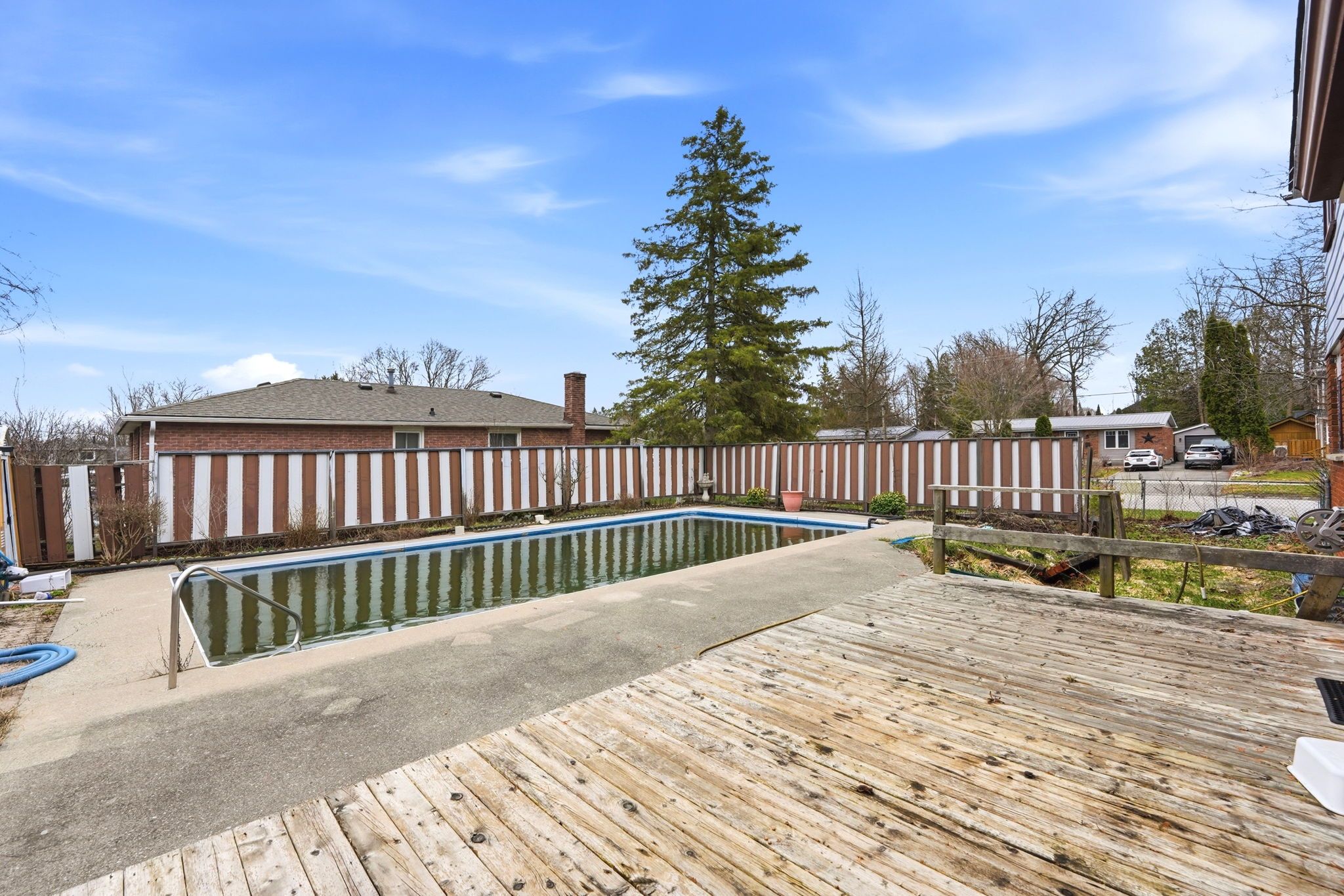 • Fully fenced yard with an inground pool for summer fun.
