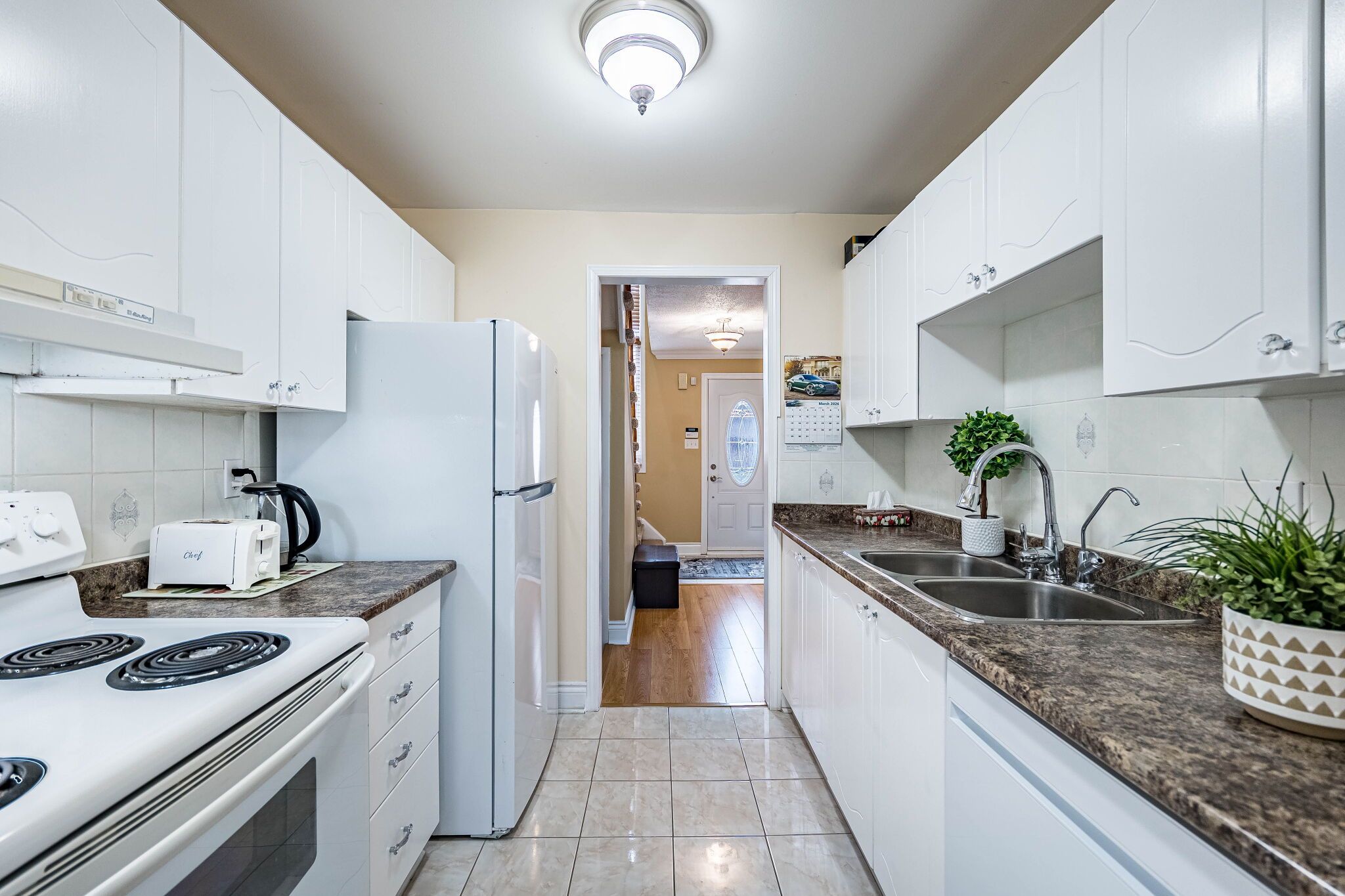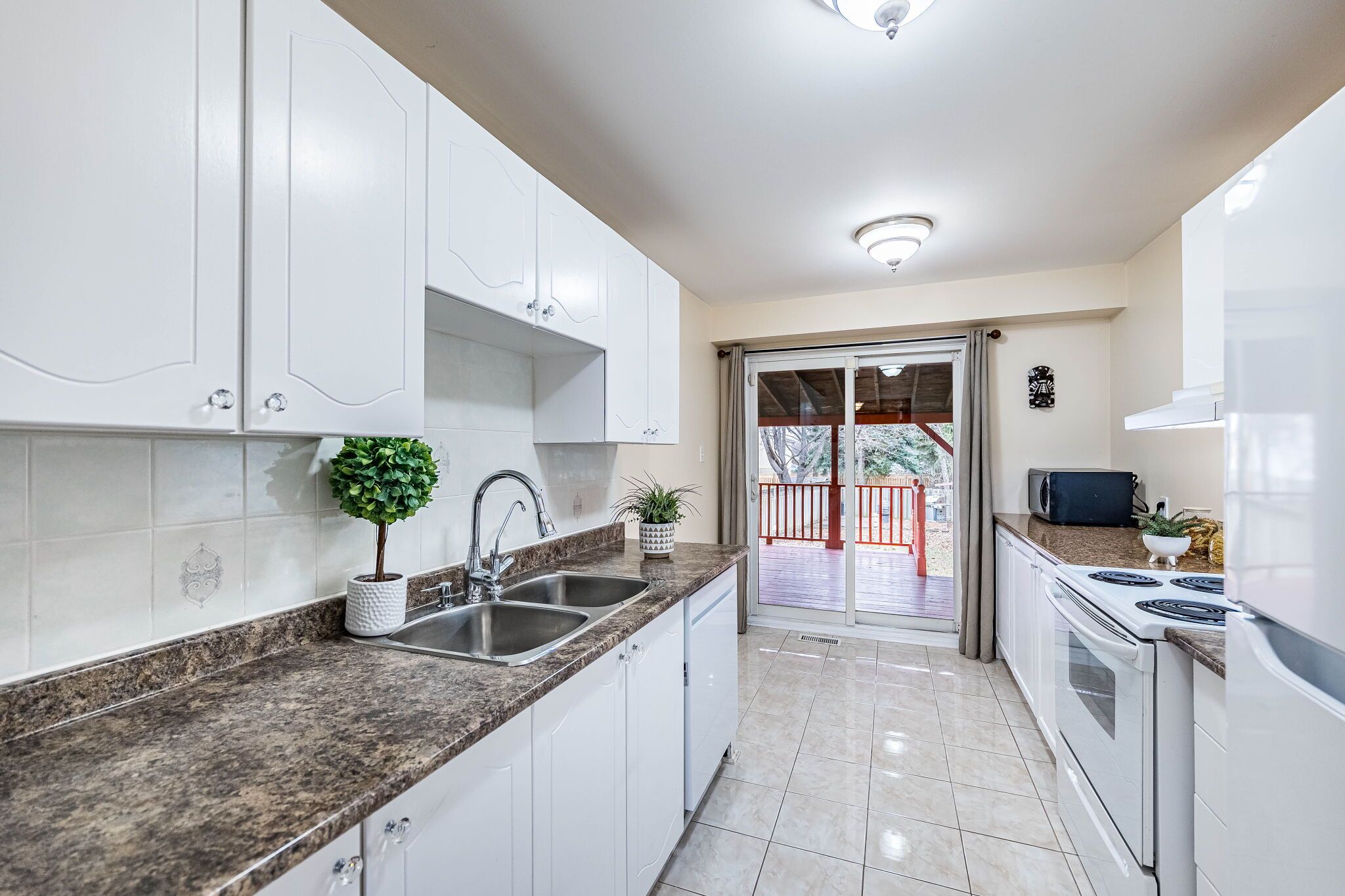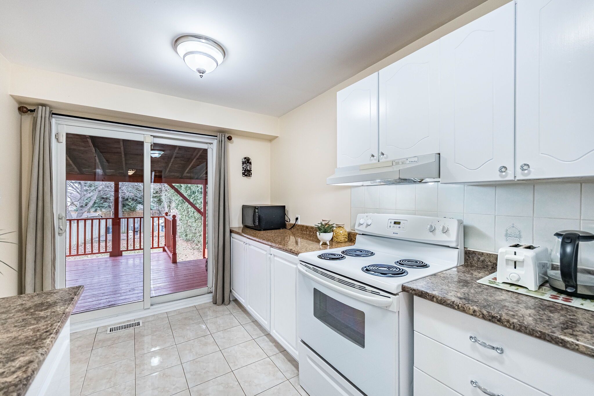 • Bright kitchen with access to a private deck and backyard.