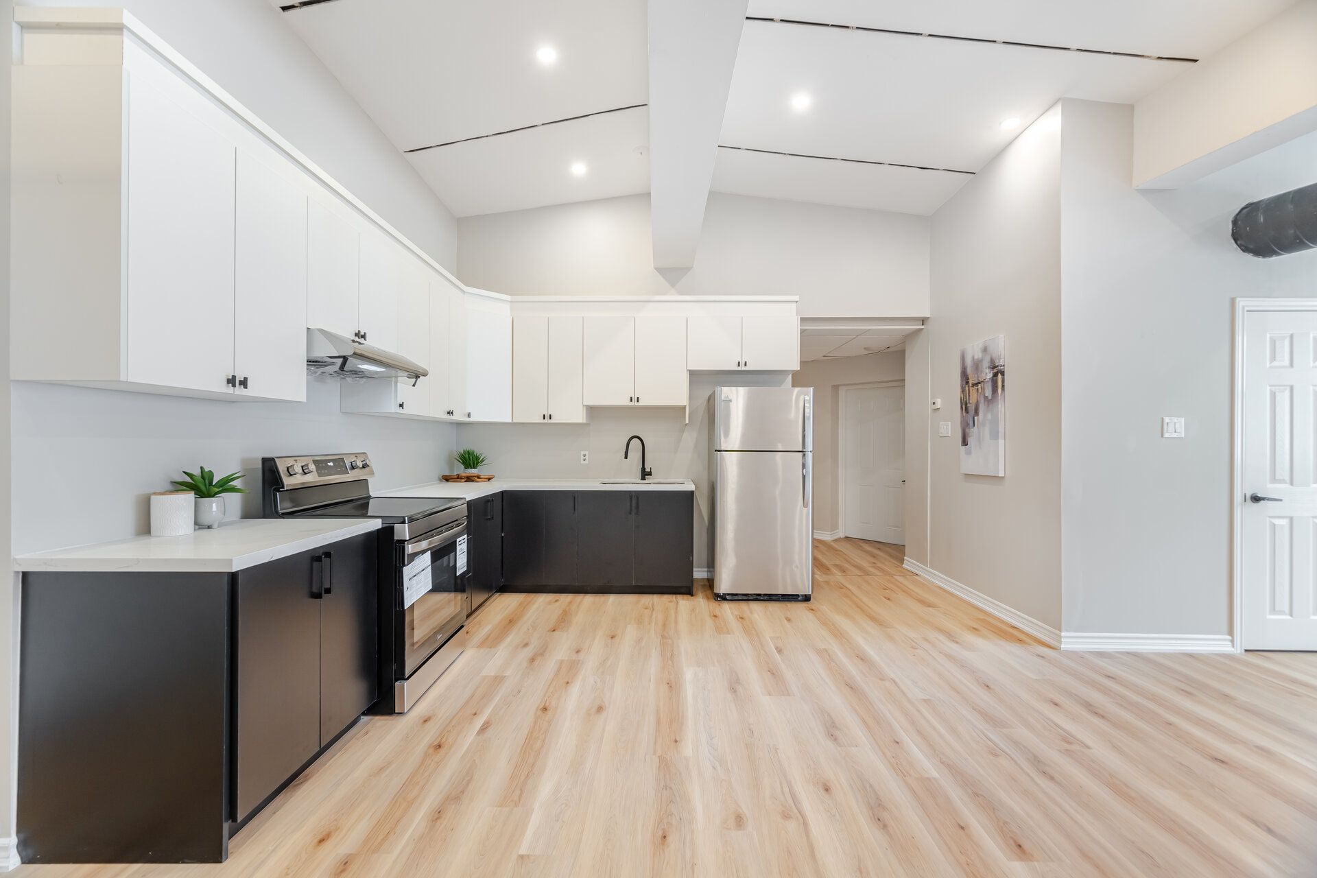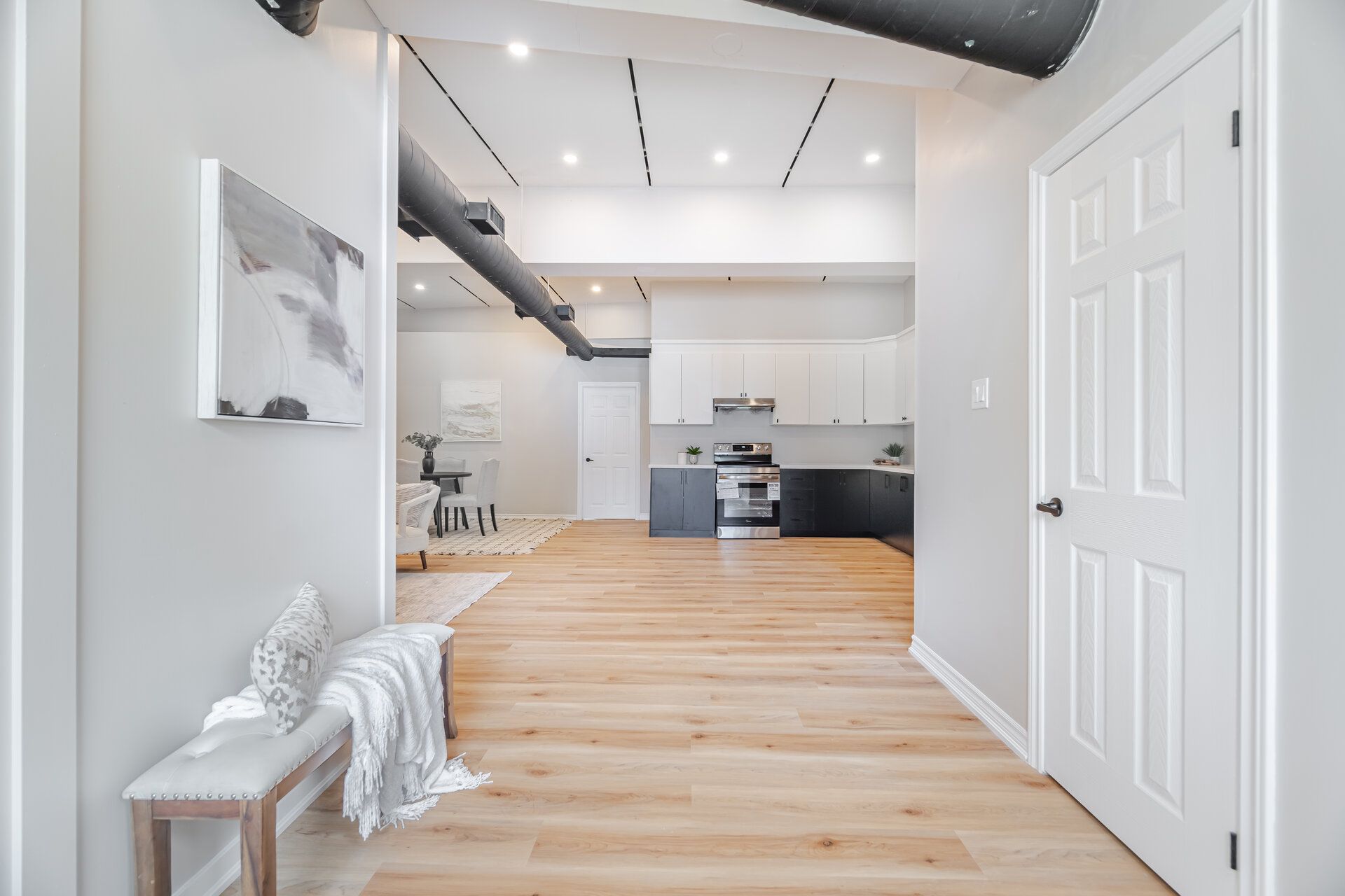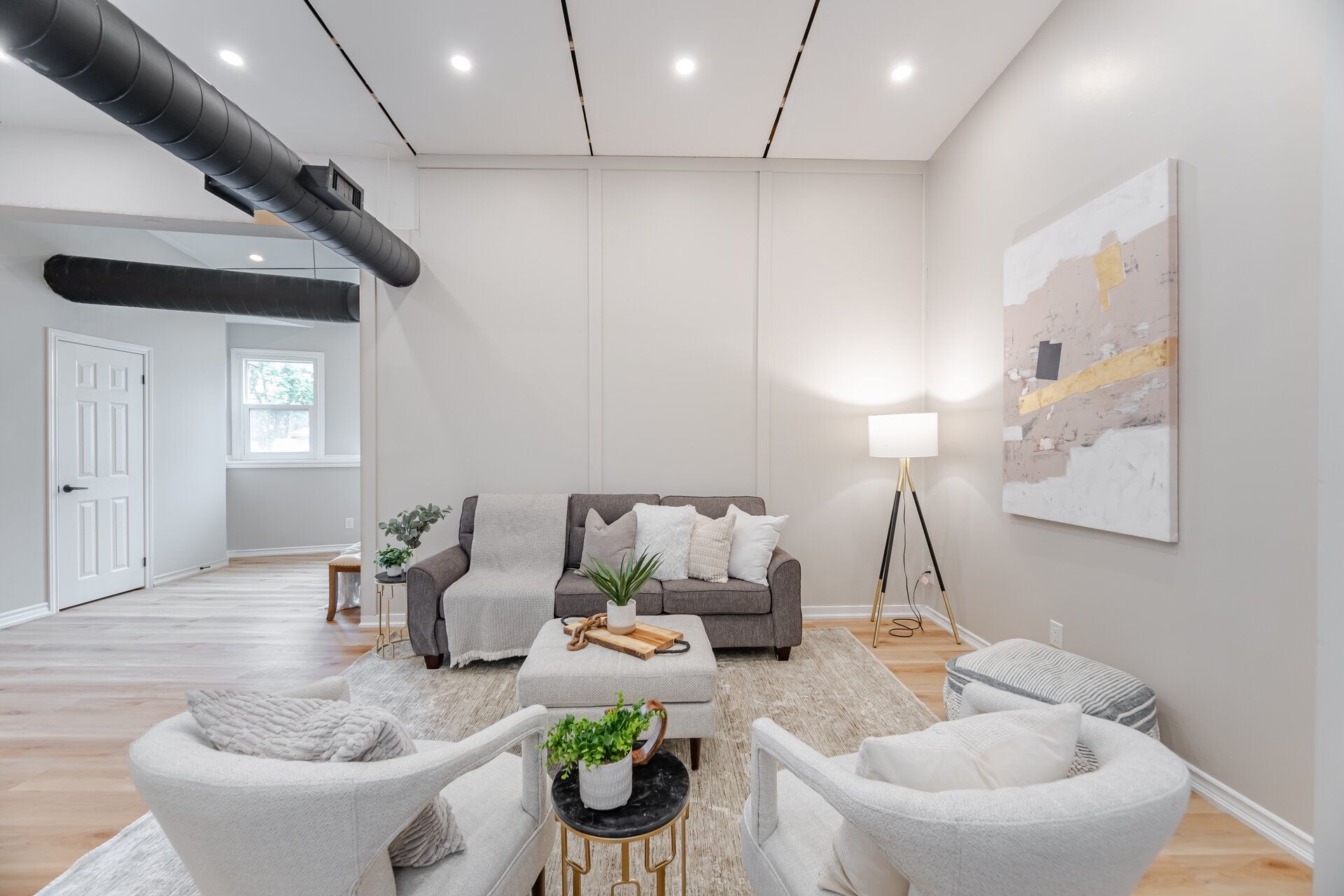 Introducing 1 ontario street a rare opportunity in guelphs iconic st. Patricks ward! This fully updated 1,493 sq. Ft. Unique dwelling offers the perfect blend of character and versatility with cc-3 zoning, allowing for a wide range of commercial uses. Featuring 4 spacious rooms and 2 modern bathrooms, the open-concept main floor showcases soaring ceilings, exposed ductwork, and abundant natural light. Enjoy a brand-new kitchen with quartz countertops, stylish waterproof vinyl flooring throughout, and thoughtfully renovated bathrooms that bring modern comfort to this historic home. Perfectly located just steps from downtown guelph, the eramosa river, scenic trails, parks, the go station, and the upcoming baker district redevelopment. With permitted uses including residential, office, live-work, mixed-use, take-out restaurant, daycare, service establishment, and more, this is an ideal opportunity for end users or savvy investors to own in a vibrant, fast-growing community full of history and potential.