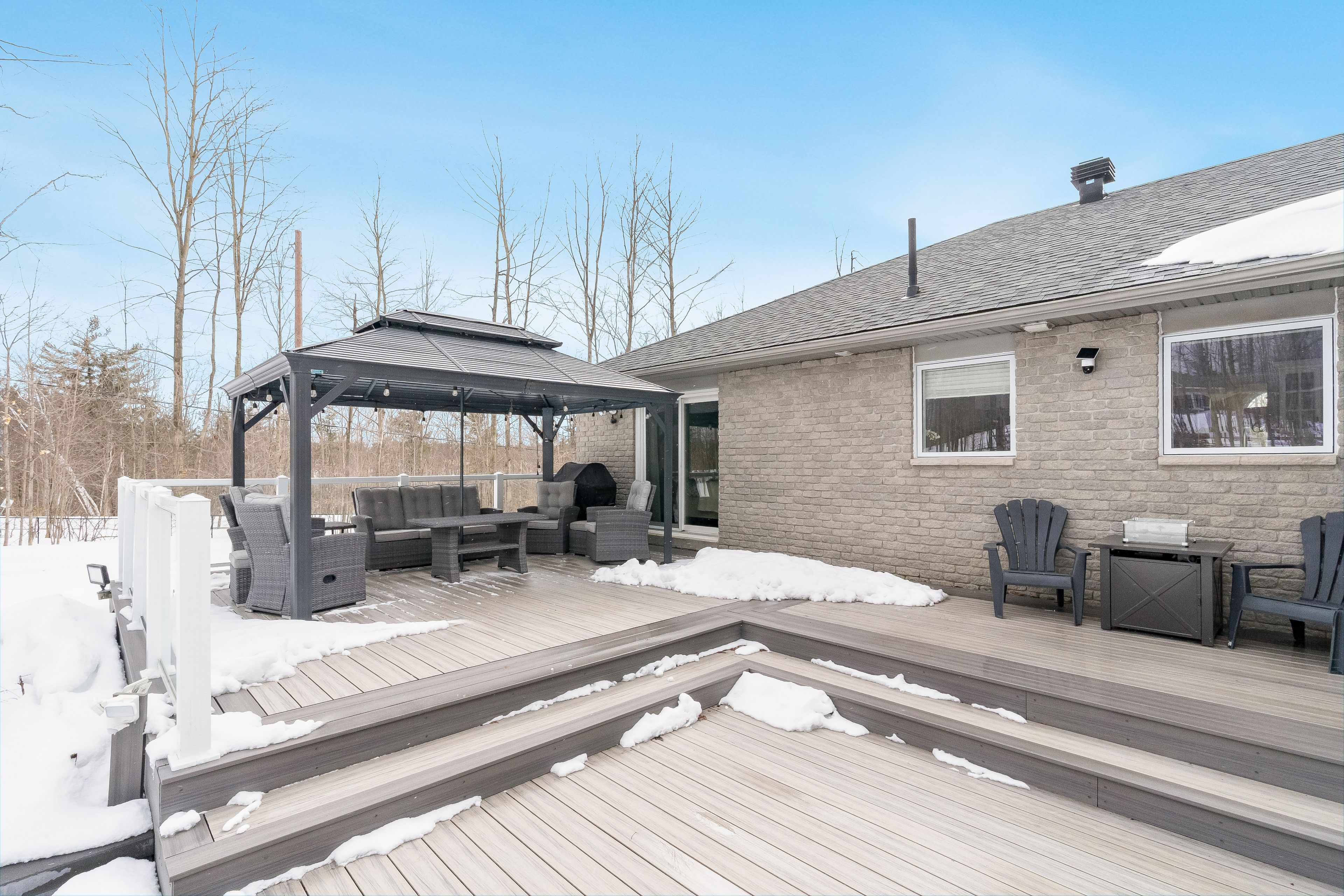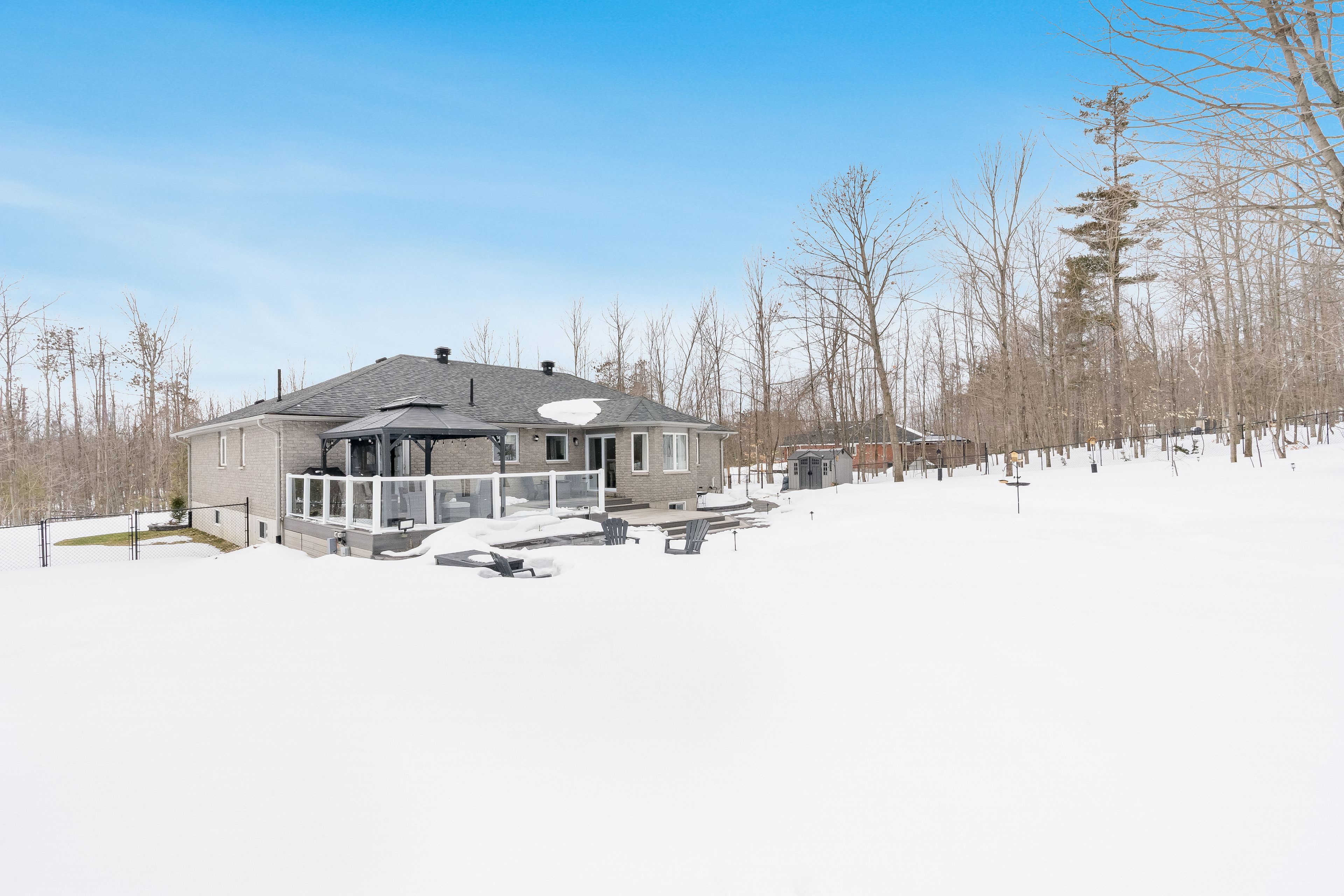 Top 5 reasons you will love this home: 1) situated on just over 1-acre in the desirable simcoe estates community, this property offers privacy, mature trees, and a fully fenced backyard, complete with landscaped grounds featuring recent sod, a sprinkler system, hard-scape walkways, landscape lighting, raised garden beds, and a firepit area with built-in seating, plus a large composite deckorators voyage tundra deck with a gazebo creating the perfect outdoor entertaining space, with room for a future inground pool 2) the home offers a bright, open-concept layout, with a kitchen featuring quartz countertops, white cabinetry with pull-out drawers, stainless-steel appliances, a tile backsplash, and a large eat-in area with a walkout to the deck, flowing into the family room anchored by a gas fireplace, with hardwood flooring, crown moulding, and large windows adding warmth and character throughout 3) spacious primary bedroom delivering a relaxing retreat with a walk-in closet and private access to the deck, while the renovated ensuite features heated tile flooring, a glass shower with european fixtures, a dual vanity with organizers and a quartz countertop, built-in cabinetry, and a toto toilet 4) with five bedrooms and a finished basement, the home provides flexible living space, while the basement features a large recreation room with bright windows, additional bedrooms, and a bathroom, ideal for extended family, visitors, or entertaining 5) practical upgrades and an excellent location complete the package, including newer shingles, an upgraded 200-amp, a generac generator, replaced windows including triple-pane at the front, along with a triple-insulated garage, an asphalt driveway, and additional parking for a boat or trailer, all near highway 400, craighurst amenities, trails, horseshoe ski resort, and vetta spa. 1,895 above grade sq. Ft. Plus a finished basement.