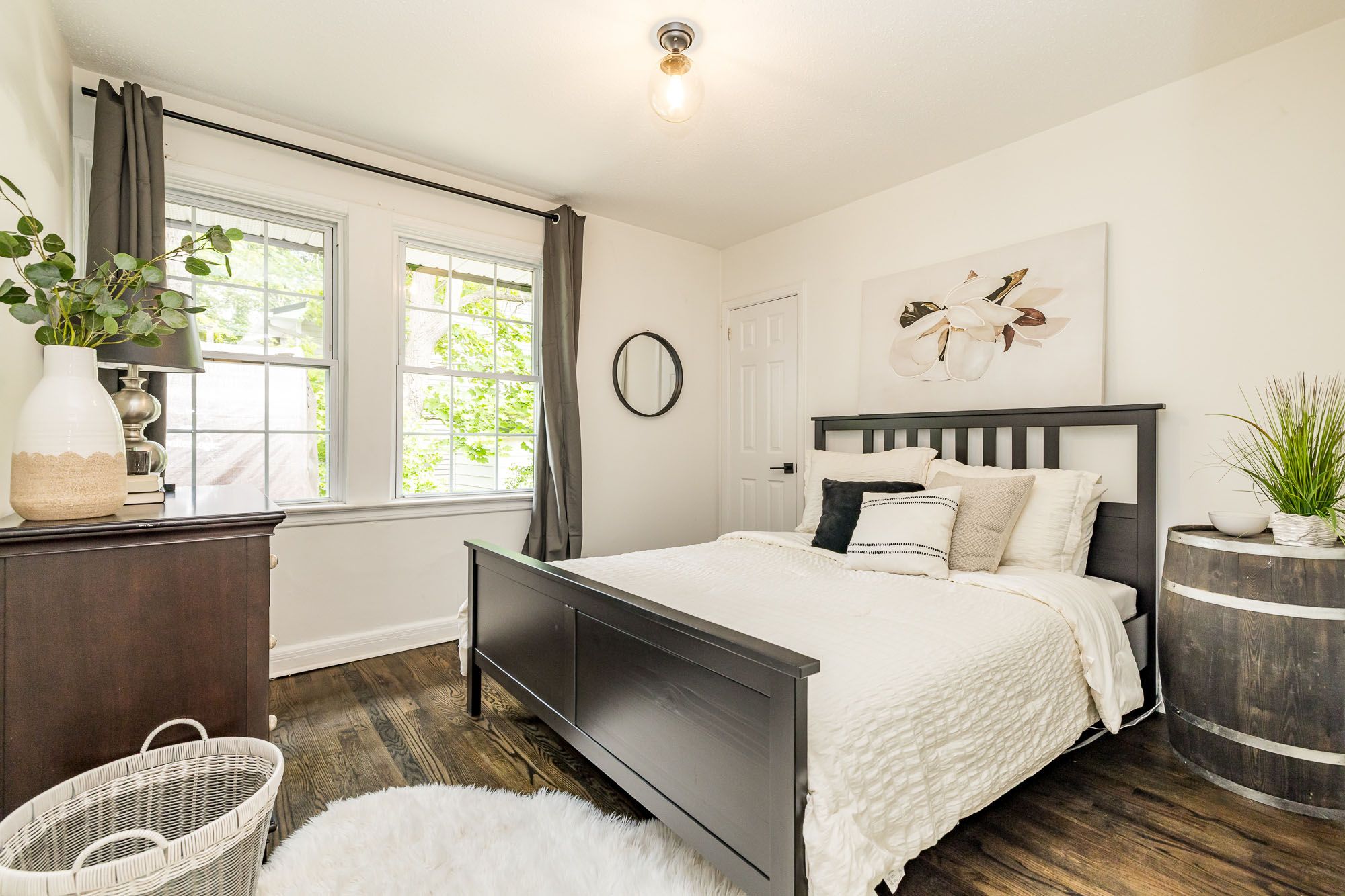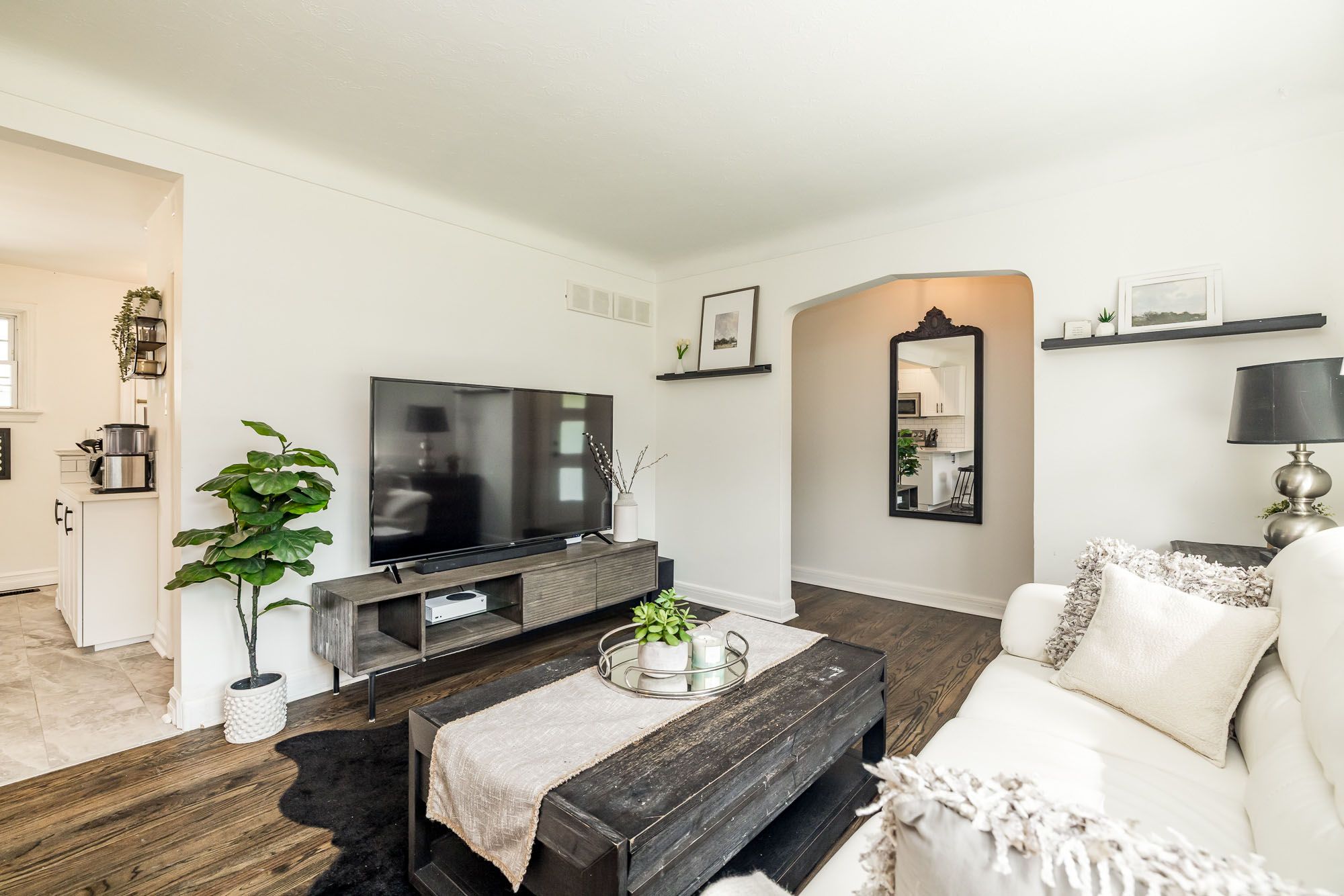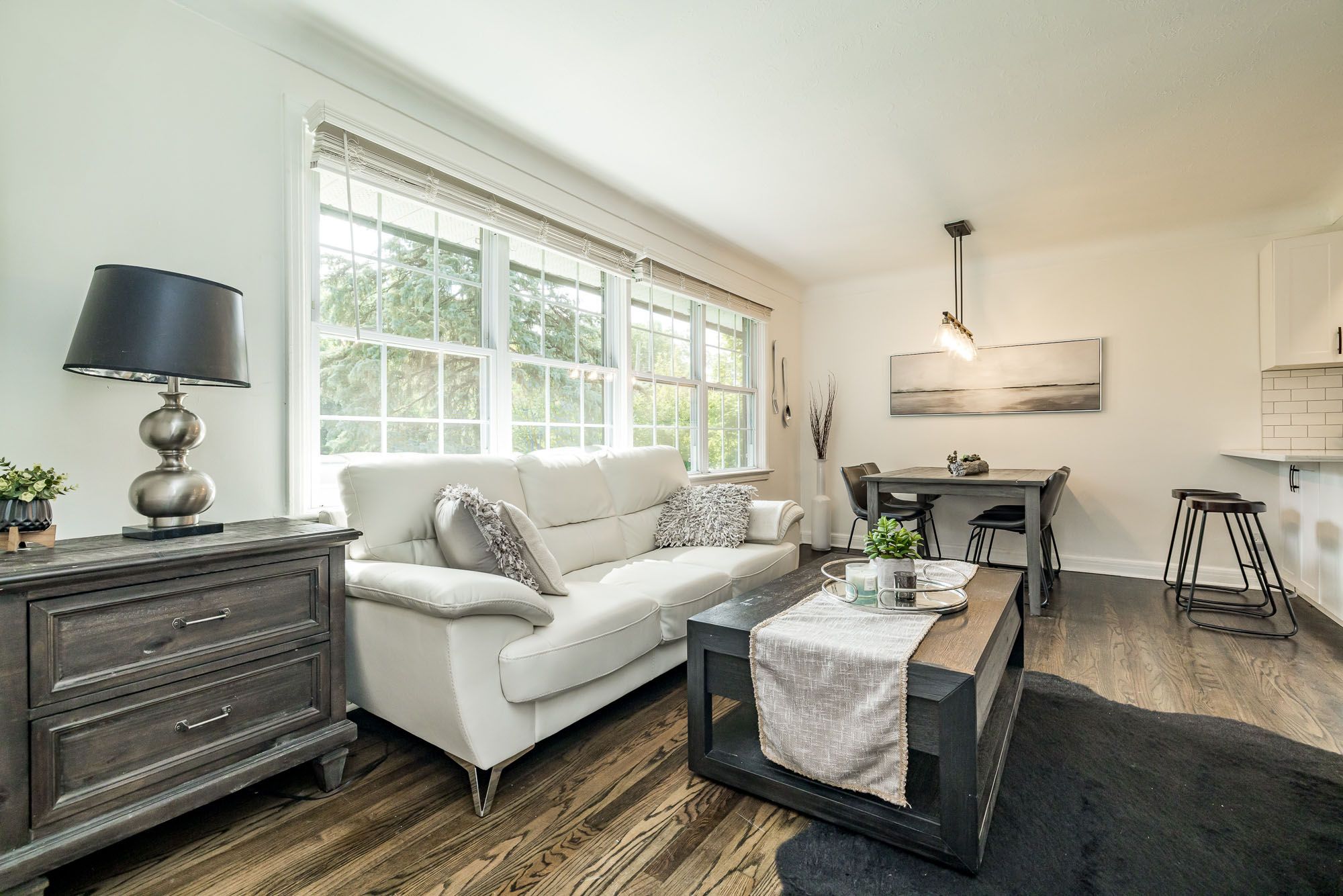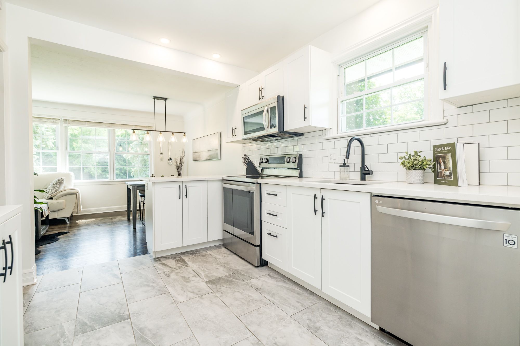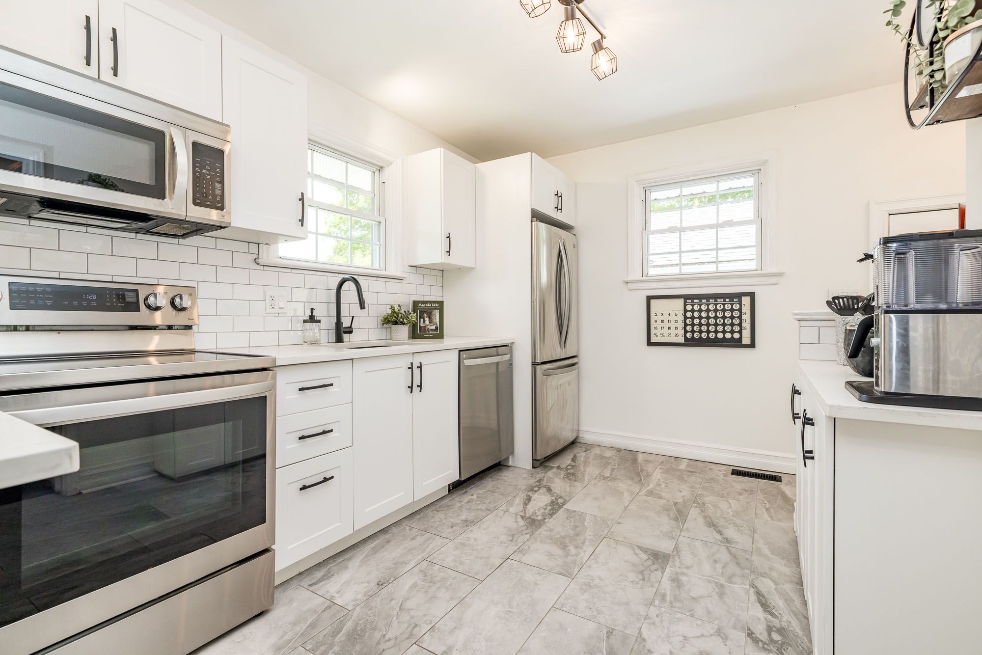 Pre-inspected and move in ready! Welcome to this charming completely updated 2-bedroom, 2-bathroom bungalow, nestled on an expansive corner lot brimming with potential. Lower level recently finished with laminate flooring, lots of pot lights and a 3 piece bath. Separate area for laundry. This property offers endless opportunities. Main floor fully renovated in 2020, the home features a bright and inviting interior, modern finishes, and functional living spaces, a brand new finished basement with a 3-piece bathroom (2025), perfect for guests or additional living space complete this home. The detached garage has new siding, a new garage door, and a finished interior ideal for a workshop or storage, ample parking with large circular driveway. Located just minutes from shopping, schools, parks, and transit, this home combines convenience with incredible future value. 24 hour irrevocable. Basement pics are virtually staged.