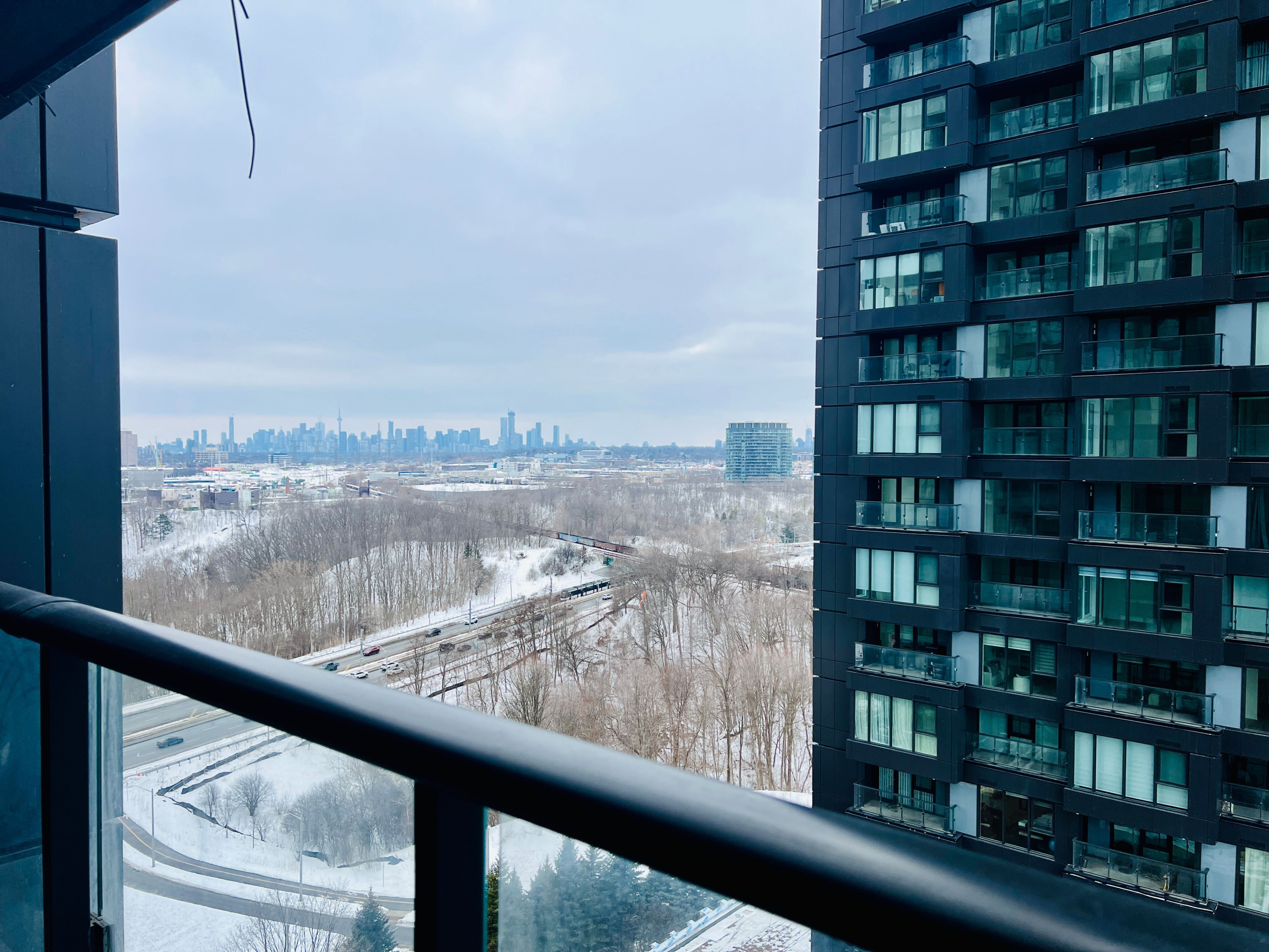 Welcome to this stunning brand new corner 1bd + den unit. Thoughtfully designed with modern finishes and an efficient layout, this bright and airy unit offers desirable north and west exposures, flooding the space with natural light throughout the day. Enjoy a rare and unobstructed clear line of sight to the cn tower, creating a breathtaking skyline view that transforms beautifully from day to night. The den provides the perfect space for a home office, guest area, or additional living flexibility. This unit also includes premium upgrades and features rarely found in comparable listings: ev charger installed directly in the parking stall, builder-installed blinds throughout, corner unit privacy with panoramic outlook. Located in a highly sought-after north york community, you'll enjoy modern amenities, convenience, and easy access to transit, shopping, dining, and major highways. Ev charging installed.