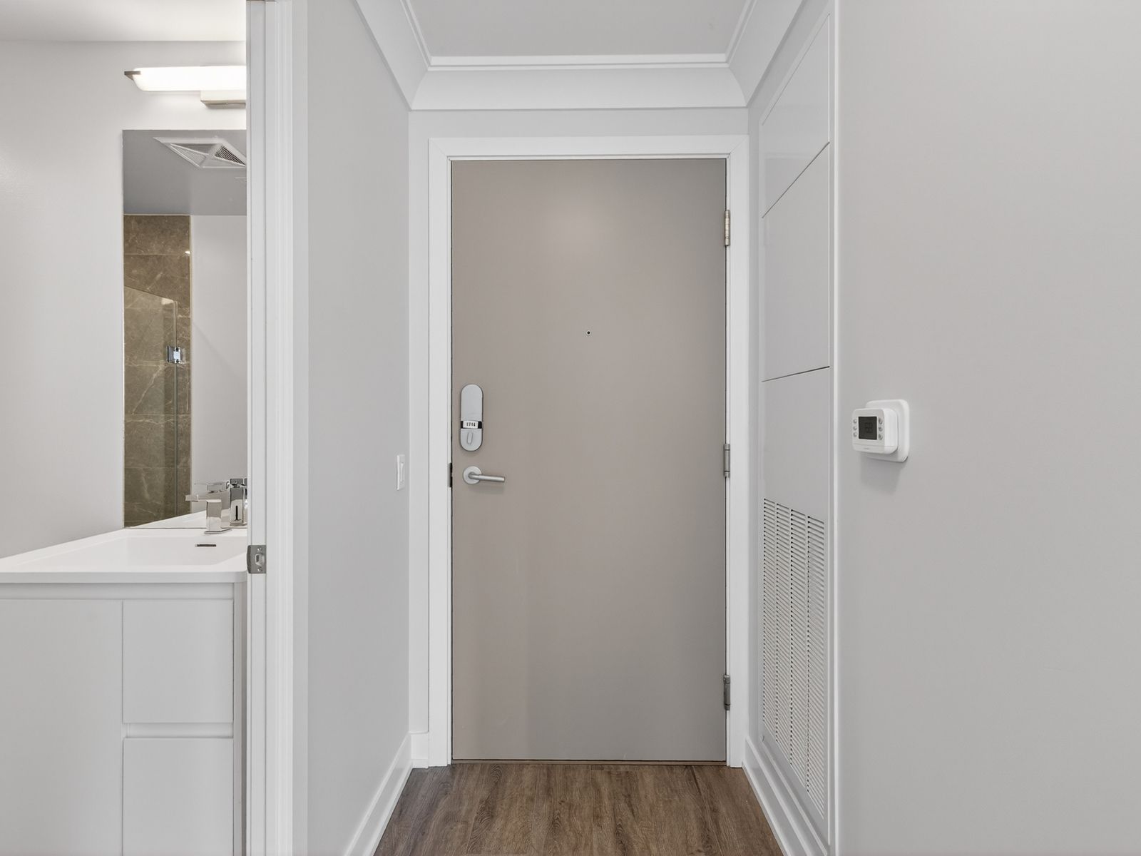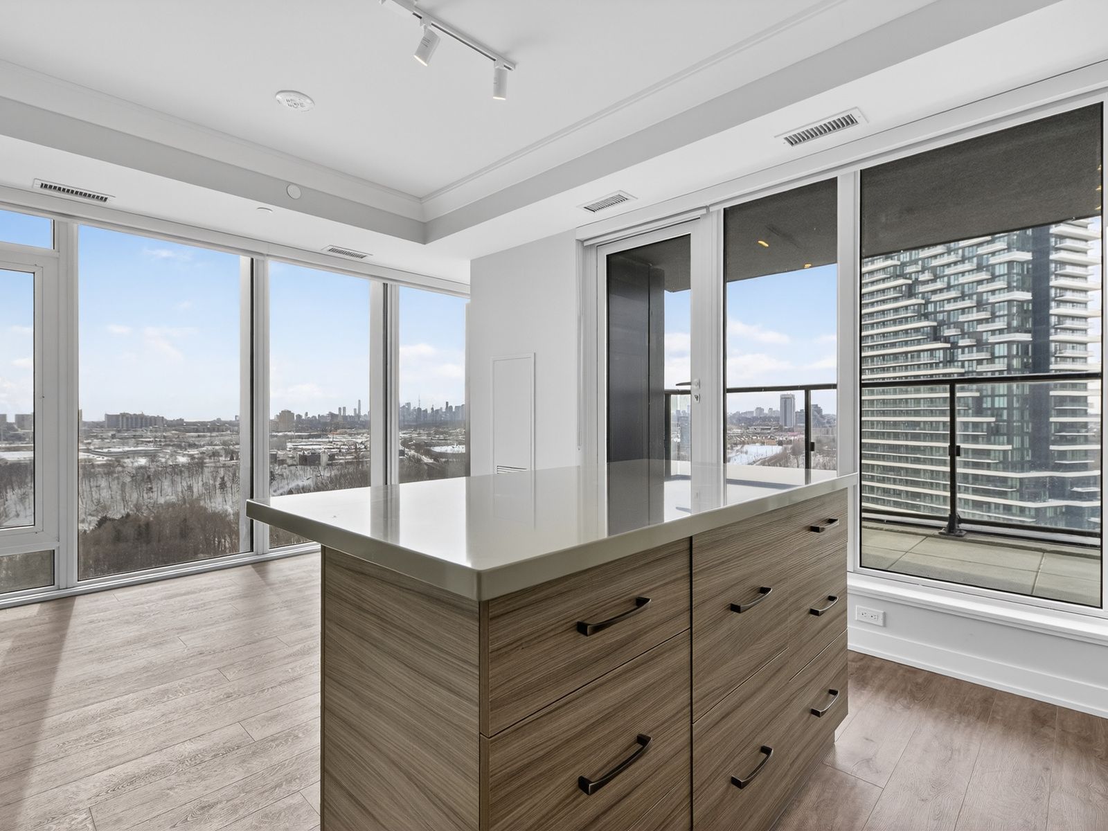 Bright, updated unit with thoughtful custom finishes throughout. The heart of the home is a bespoke kitchen featuring a custom island with ample prep space, built-in storage and seating- ideal for entertaining or casual meals. Custom closets maximize organization and storage in every bedroom, with tailored shelving and hanging solutions that elevate daily convenience. Elegant crown moulding runs through the living areas, adding refined architectural detail anda polished, finished look. Additional updates include modern fixtures, durable flooring, andabundant natural light. A move-in ready residence that combines practical storage solutionsand distinctive, high-quality custom touches.
