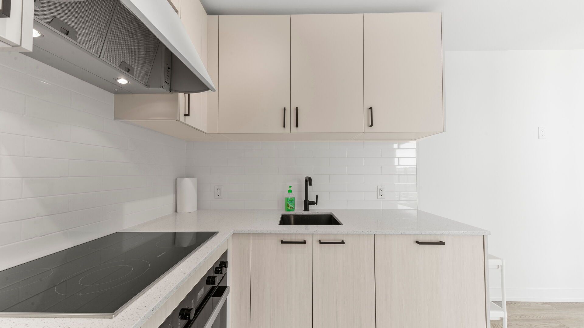 • Spacious 525-sf living space with modern finishes and 9-ft ceilings.