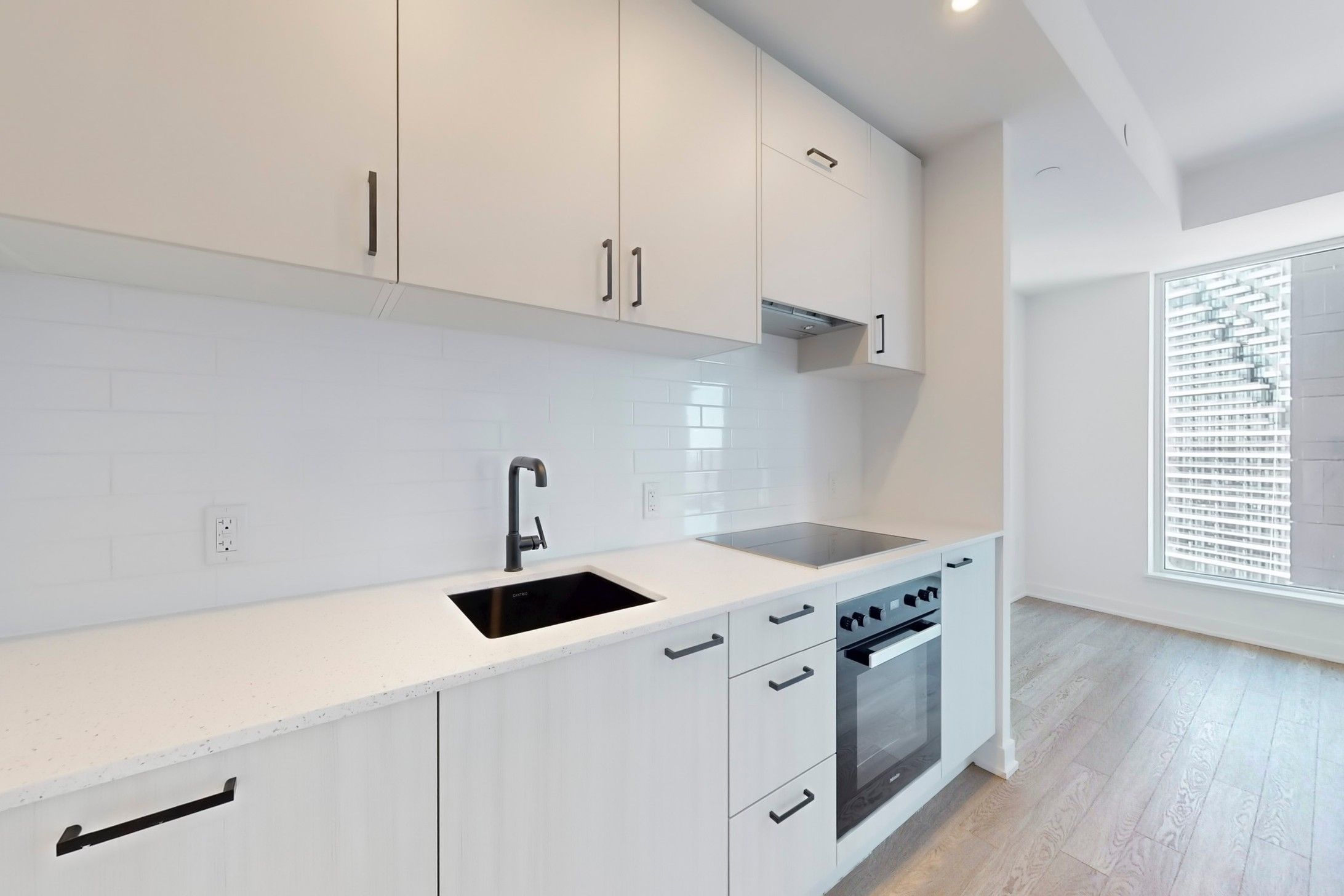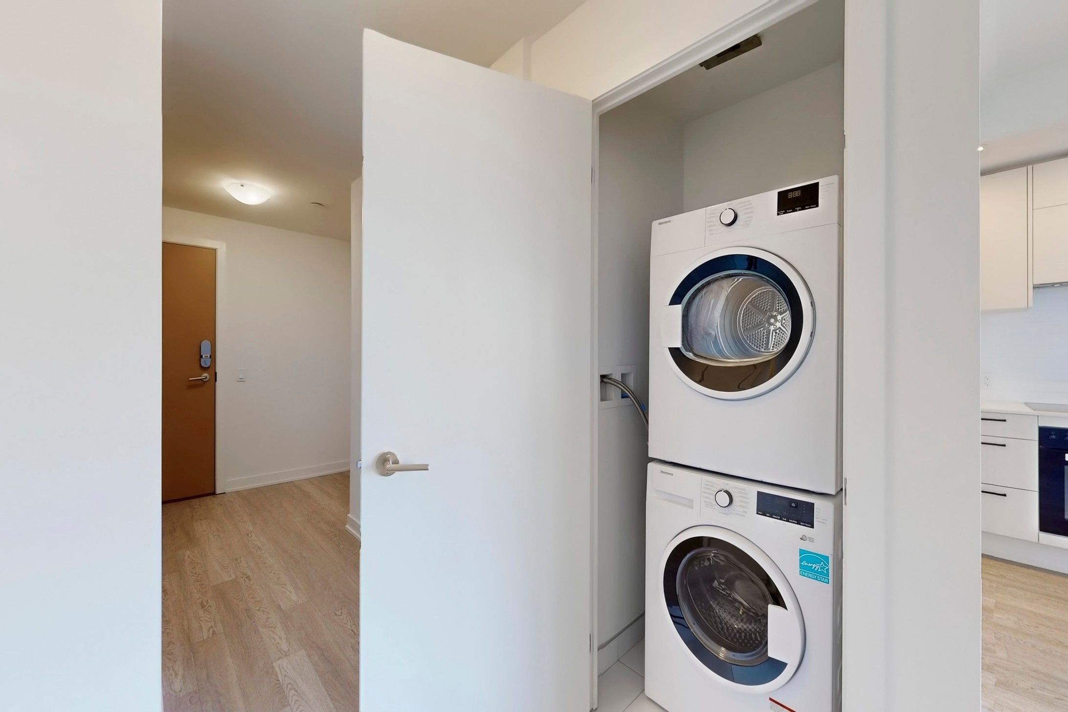Brand-new, bright and contemporary condominium ideally located in a sought-after north york neighbourhood. This stylish 1-bedroom, 1-bathroom suite features an east-facing exposure with beautiful views from the private balcony. Thoughtfully designed with a spacious foyer (large enough for a bench), the unit offers an open-concept living and dining area with high ceilings and large windows that flood the space with natural light. Walk out to your private terrace - perfect for relaxing or enjoying fresh air. The modern kitchen is equipped with integrated miele appliances, quality countertops, sleek backsplash, and in-suite laundry, combining functionality with elegant design. The generously sized bedroom includes a large closet for ample storage. Residents enjoy premium amenities including a fully equipped fitness centre, basketball court, yoga studio, bar/lounge, party rooms, guest suites, childcare centre, dog wash station, communal bbq area, and 24-hour concierge service. Unbeatable location with direct access to the eglinton crosstown lrt (line 5) and future ontario line, plus close proximity to top-rated schools and multiple ttc routes. Minutes to shops at don mills, sunnybrook hospital, aga khan museum, parks, golf courses, grocery stores, restaurants, and major retailers. Easy access to the dvp and hwy 404. One locker included.